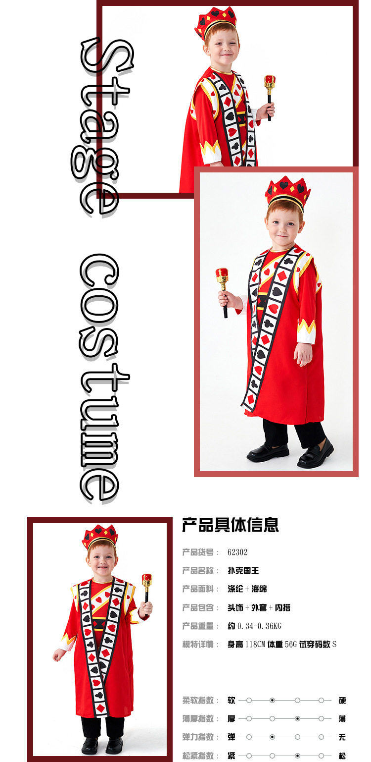 할로윈 의상 포커 왕국 레드 킹 의상 세트 어린이 동화 코스프레 공연스토어 가기