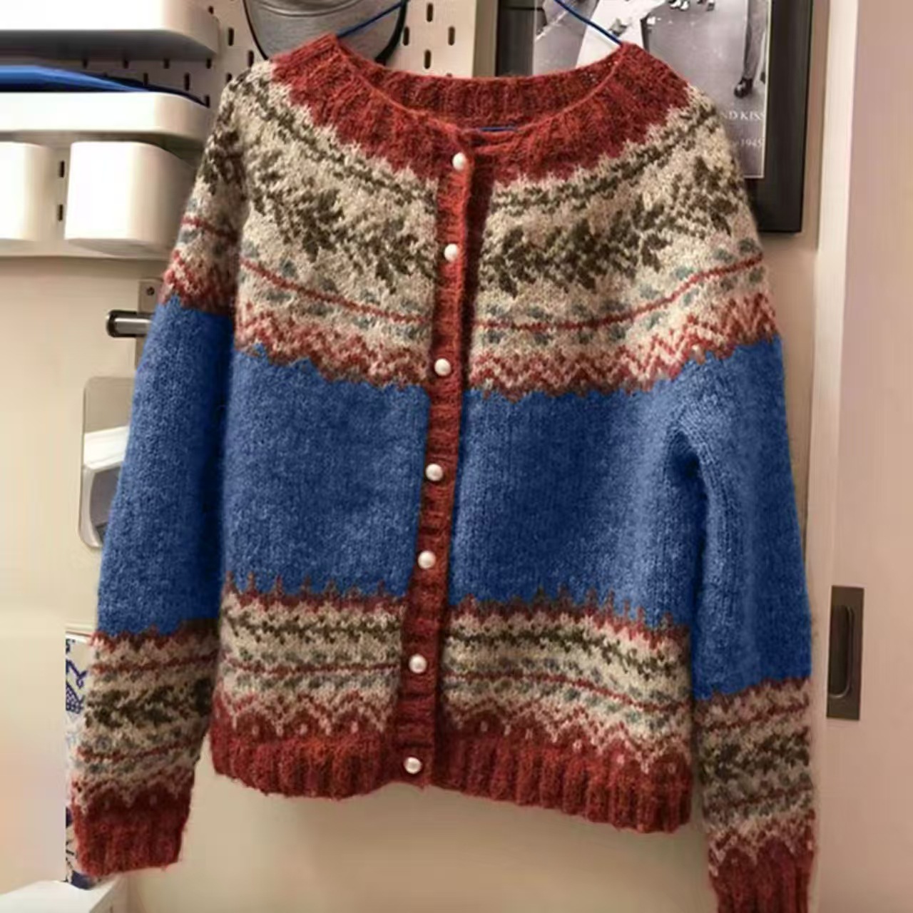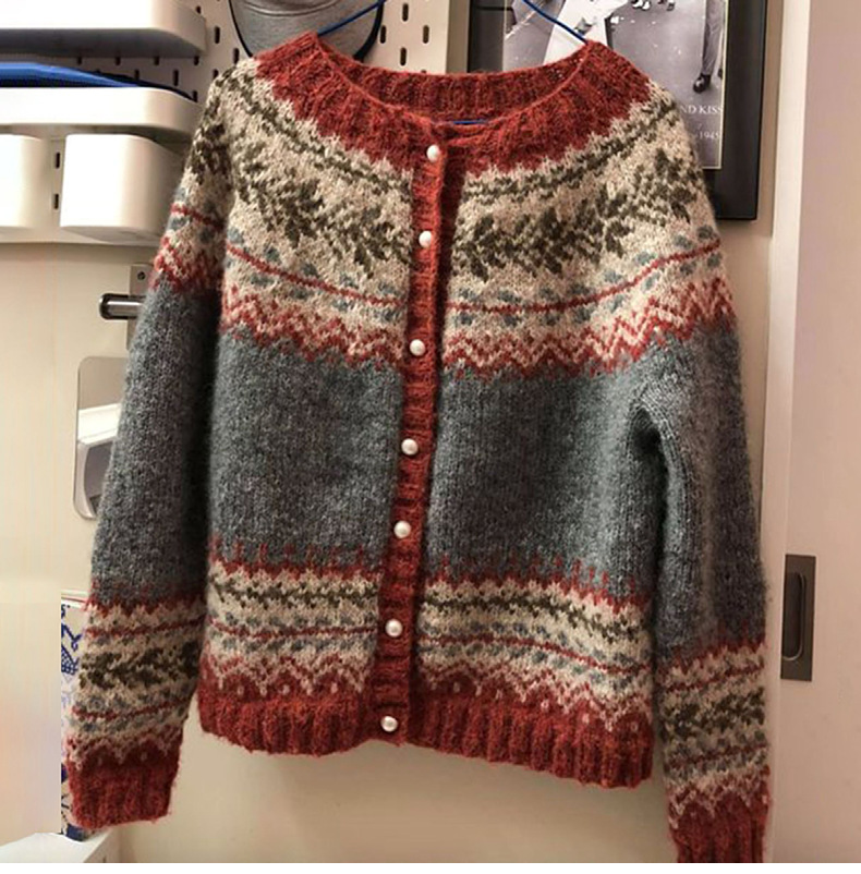 아마존 여성 유럽과 미국의 민족 스타일 자카드 스웨터 여성 가을, 겨울 카디건 싱글 브레스트 스웨터스토어 가기