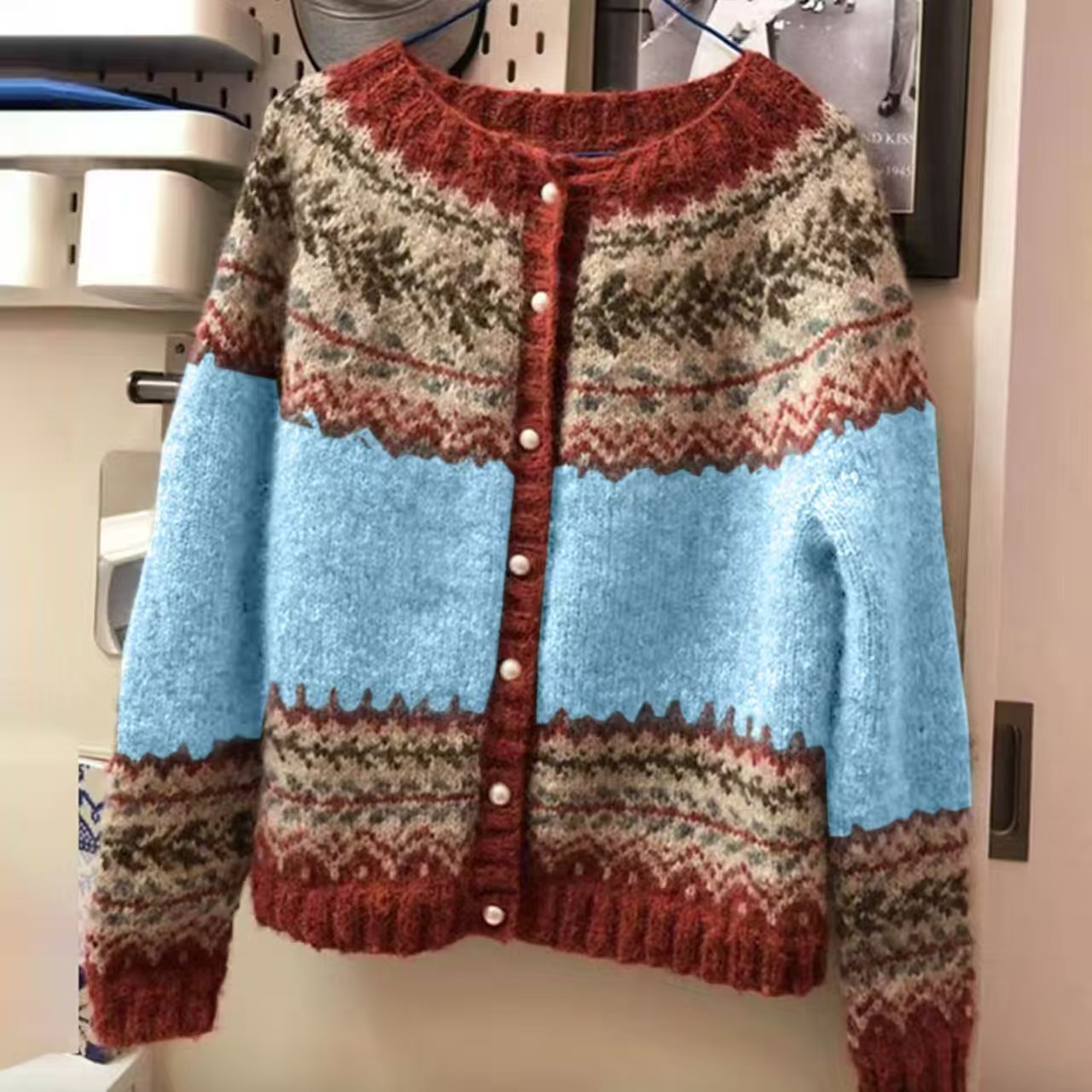 아마존 여성 유럽과 미국의 민족 스타일 자카드 스웨터 여성 가을, 겨울 카디건 싱글 브레스트 스웨터