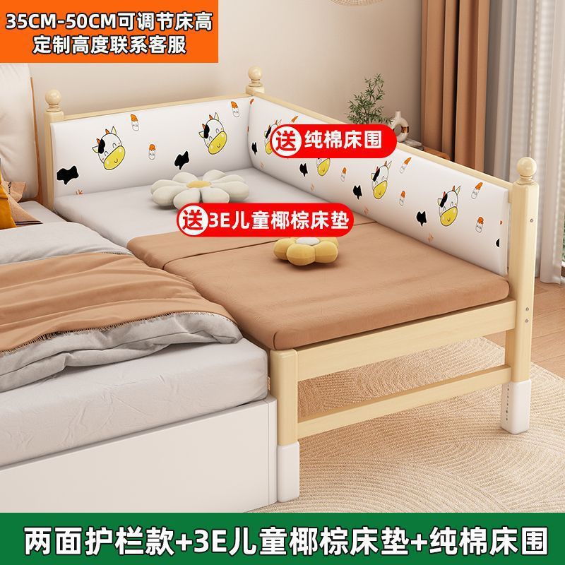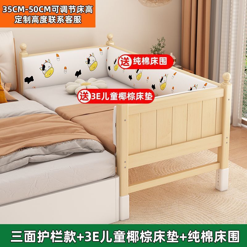 아기를 위한 단단한 나무 어린이 접합 침대, 조절 가능한 확대 침대, 침실 접합 대형 침대, 가드레일이 있는 유아용 침대