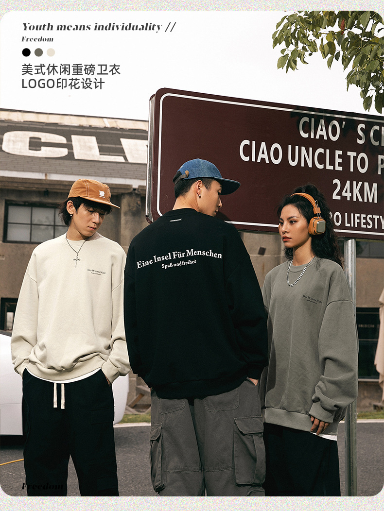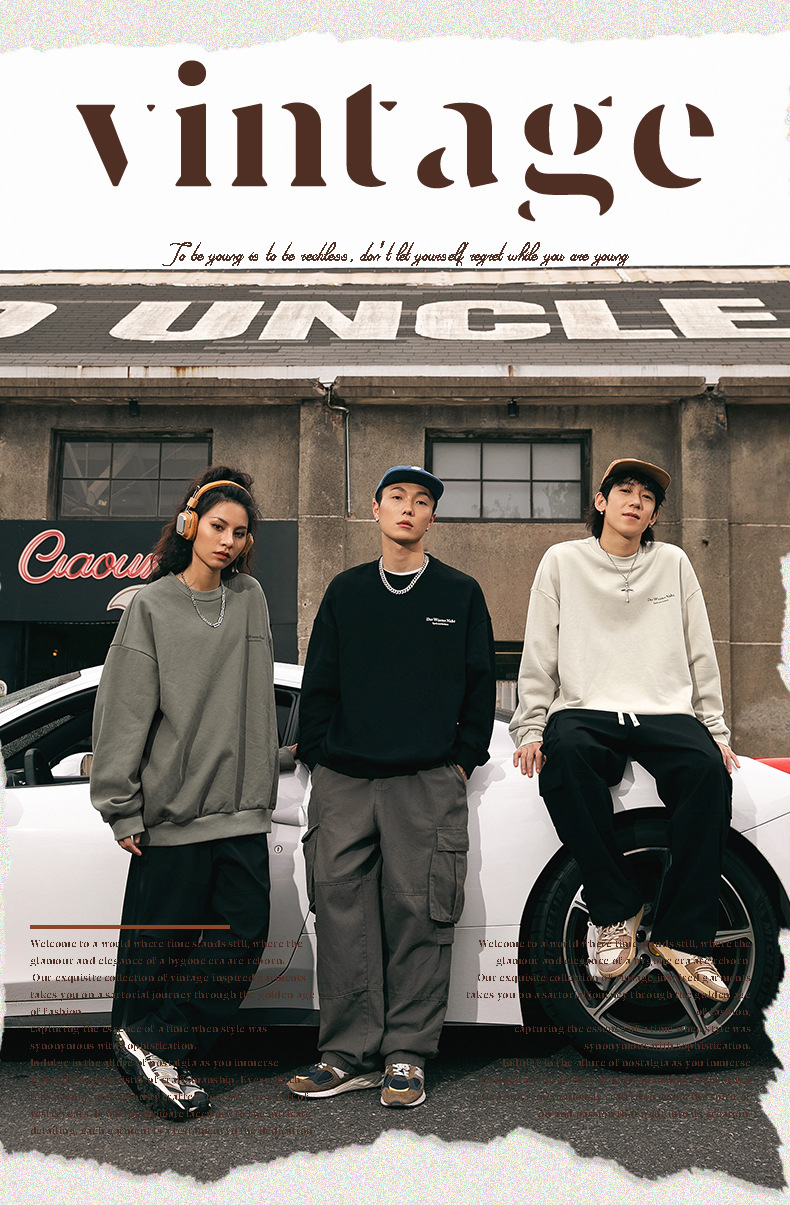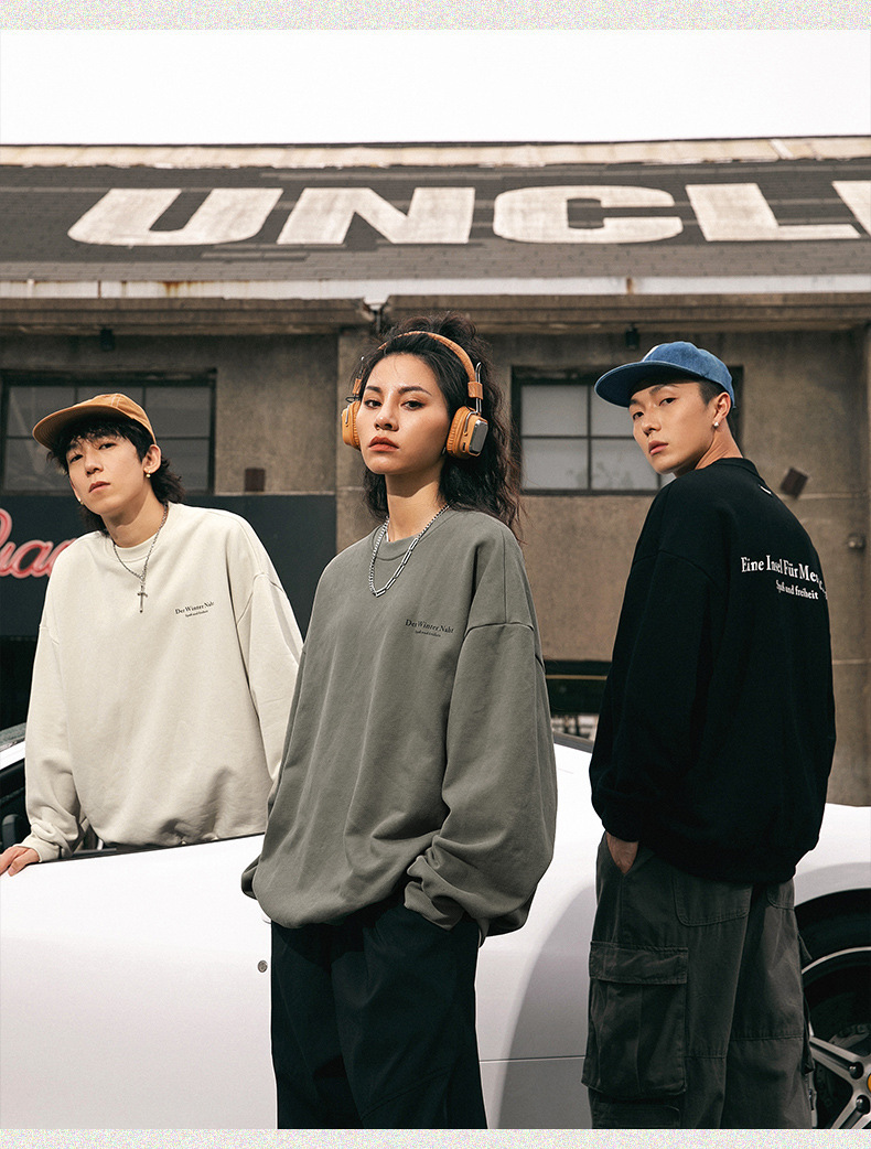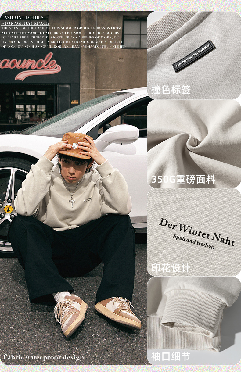 남성용 레트로 아메리칸 프린트 라운드 넥 스웨트 셔츠 봄 신작 하이 스트리트 트렌디 브랜드 헤비급 루즈 커플 착용 재킷스토어 가기