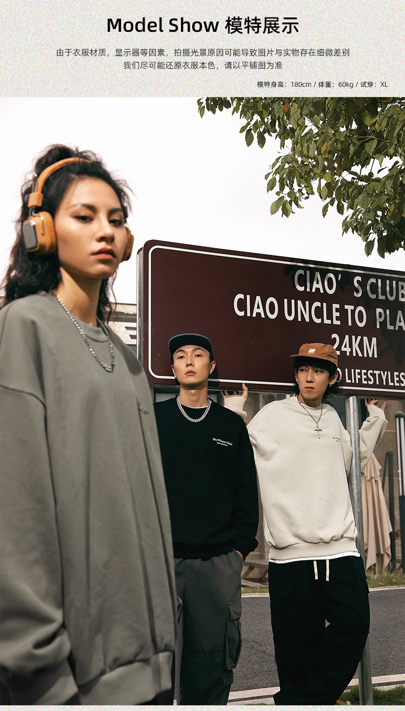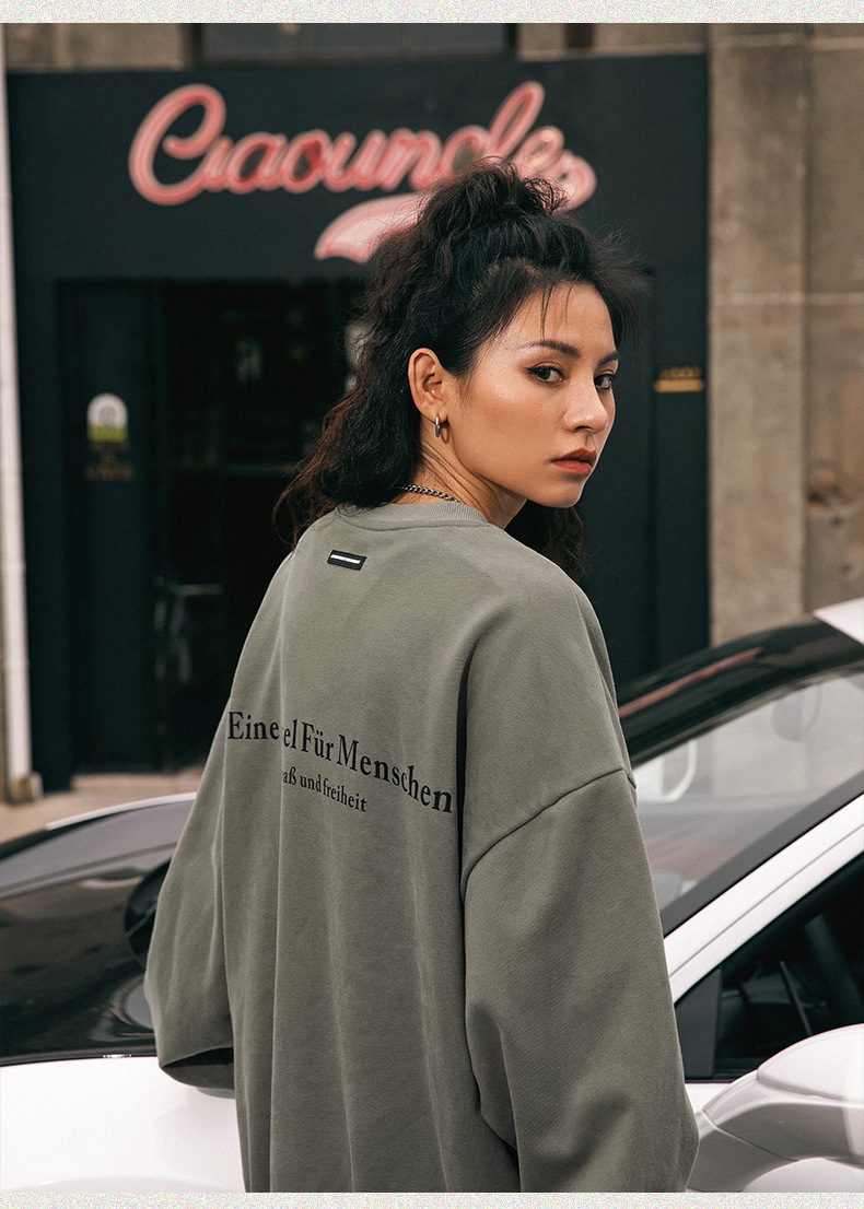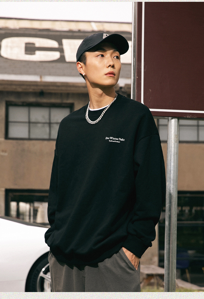 남성용 레트로 아메리칸 프린트 라운드 넥 스웨트 셔츠 봄 신작 하이 스트리트 트렌디 브랜드 헤비급 루즈 커플 착용 재킷스토어 가기