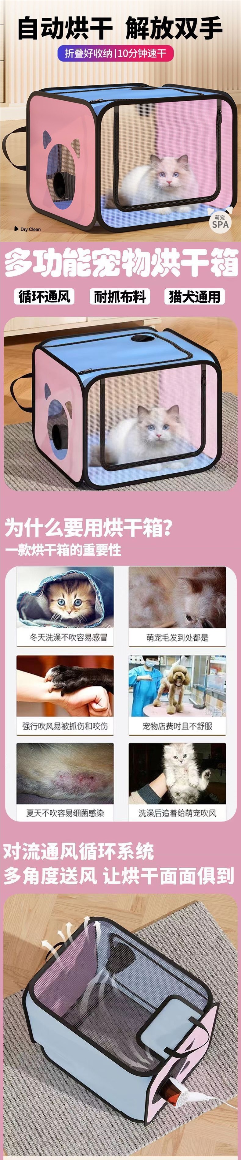 새로운 애완 동물 건조 상자, 헤어 드라이어, 고양이 헤어 드라이어, 개 목욕 용품, 접이식 스마트 백스토어 가기