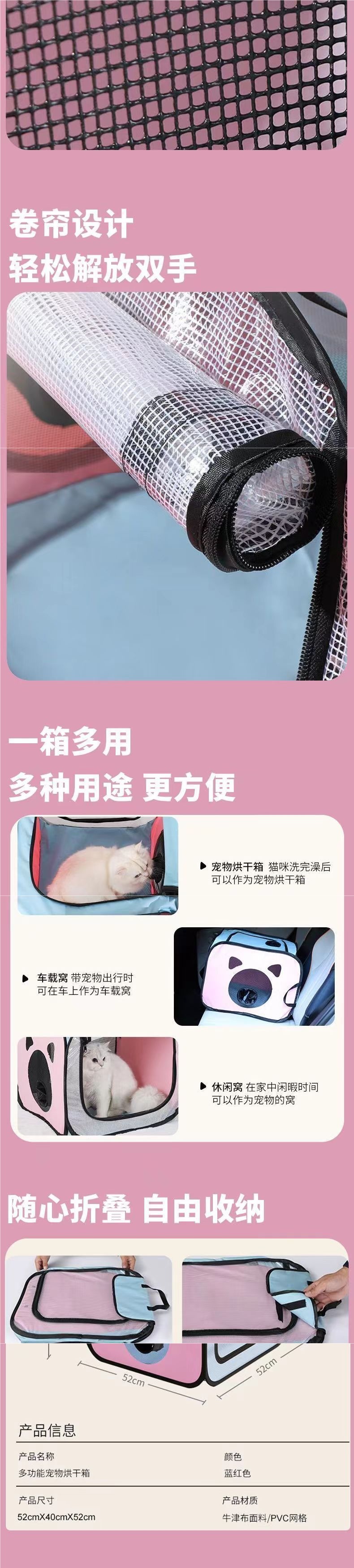 새로운 애완 동물 건조 상자, 헤어 드라이어, 고양이 헤어 드라이어, 개 목욕 용품, 접이식 스마트 백