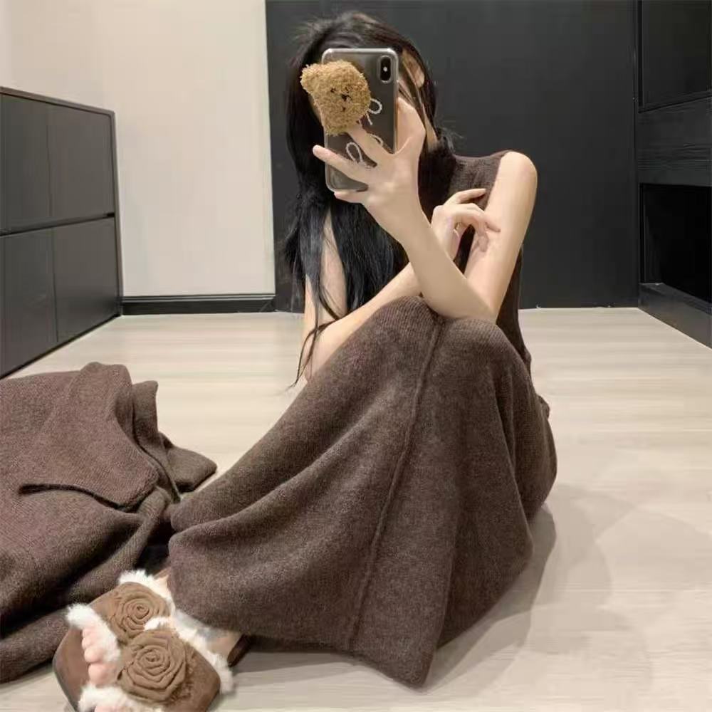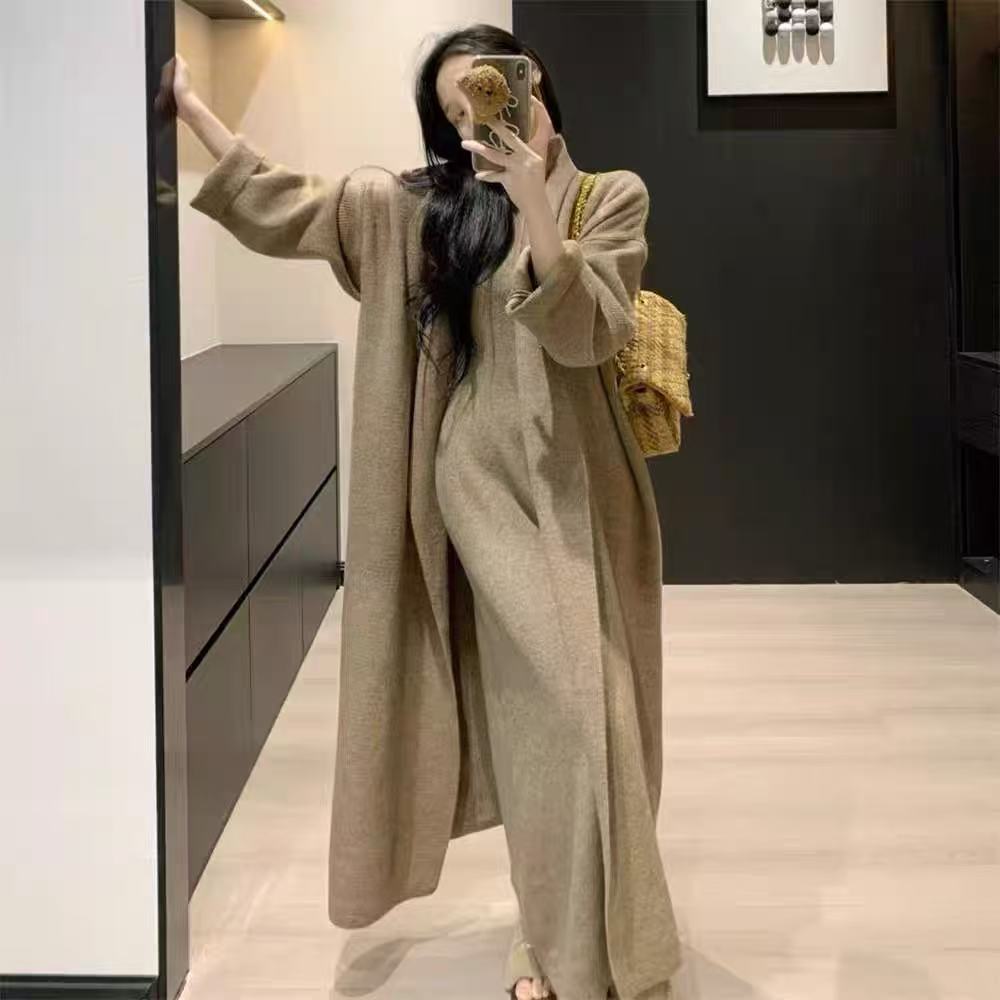 국경 간 대외 무역 게으른 스타일 긴 니트 카디건 스웨터 정장 여성 가을, 겨울 새로운 터틀넥 드레스 투피스 세트스토어 가기