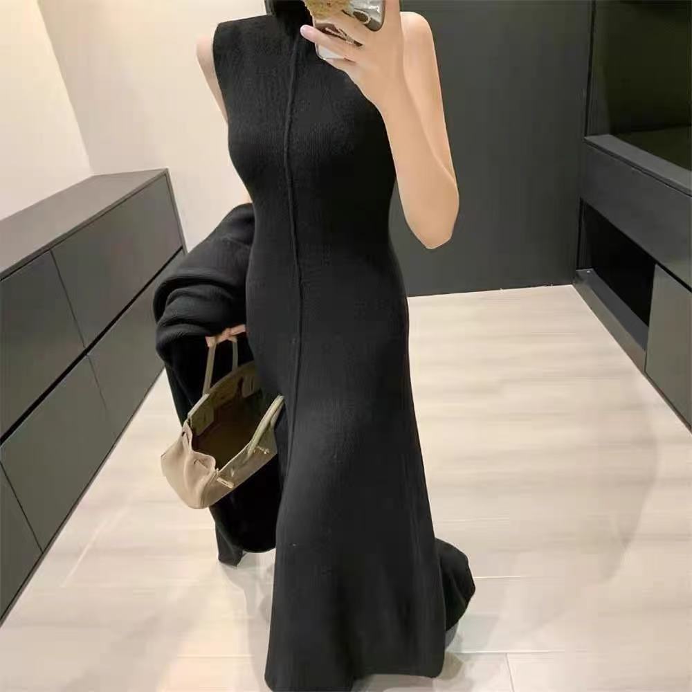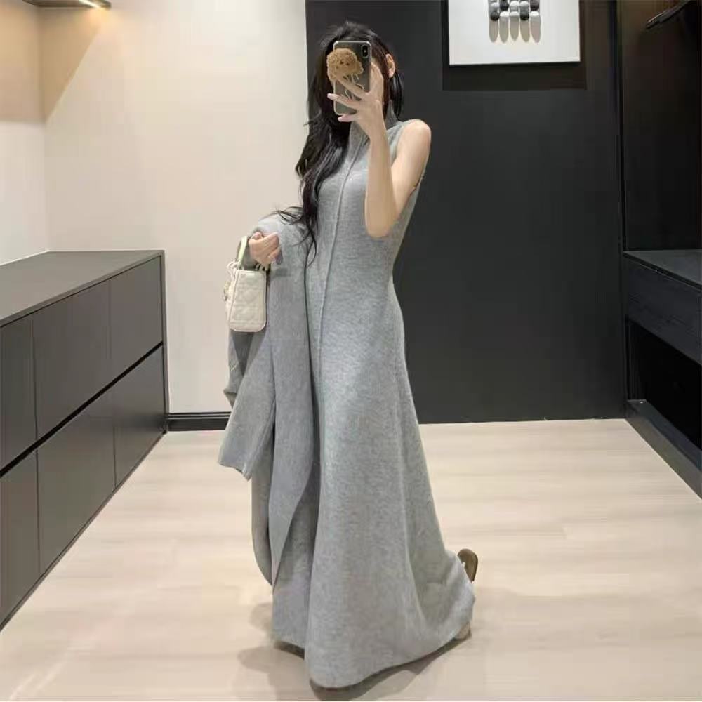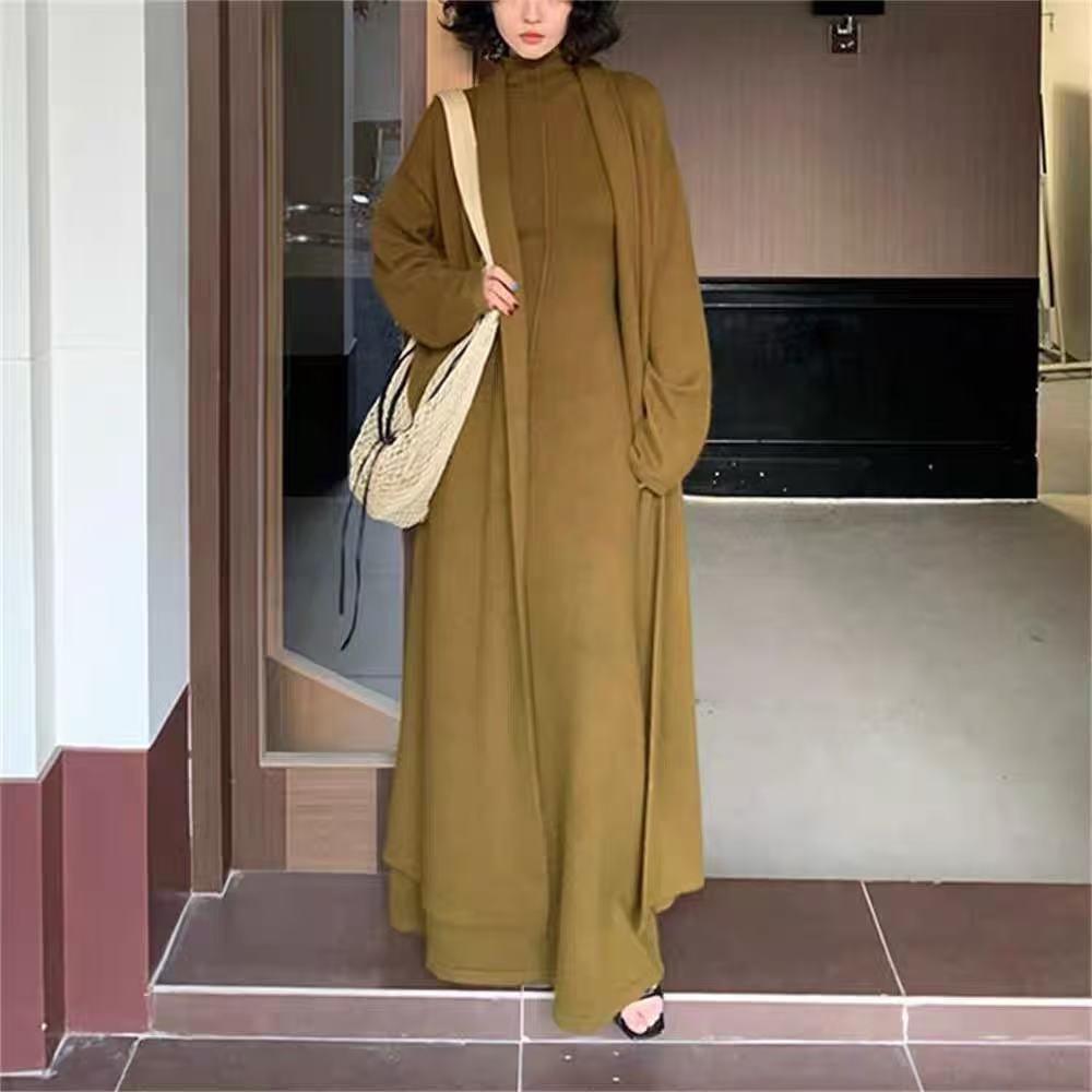 국경 간 대외 무역 게으른 스타일 긴 니트 카디건 스웨터 정장 여성 가을, 겨울 새로운 터틀넥 드레스 투피스 세트
