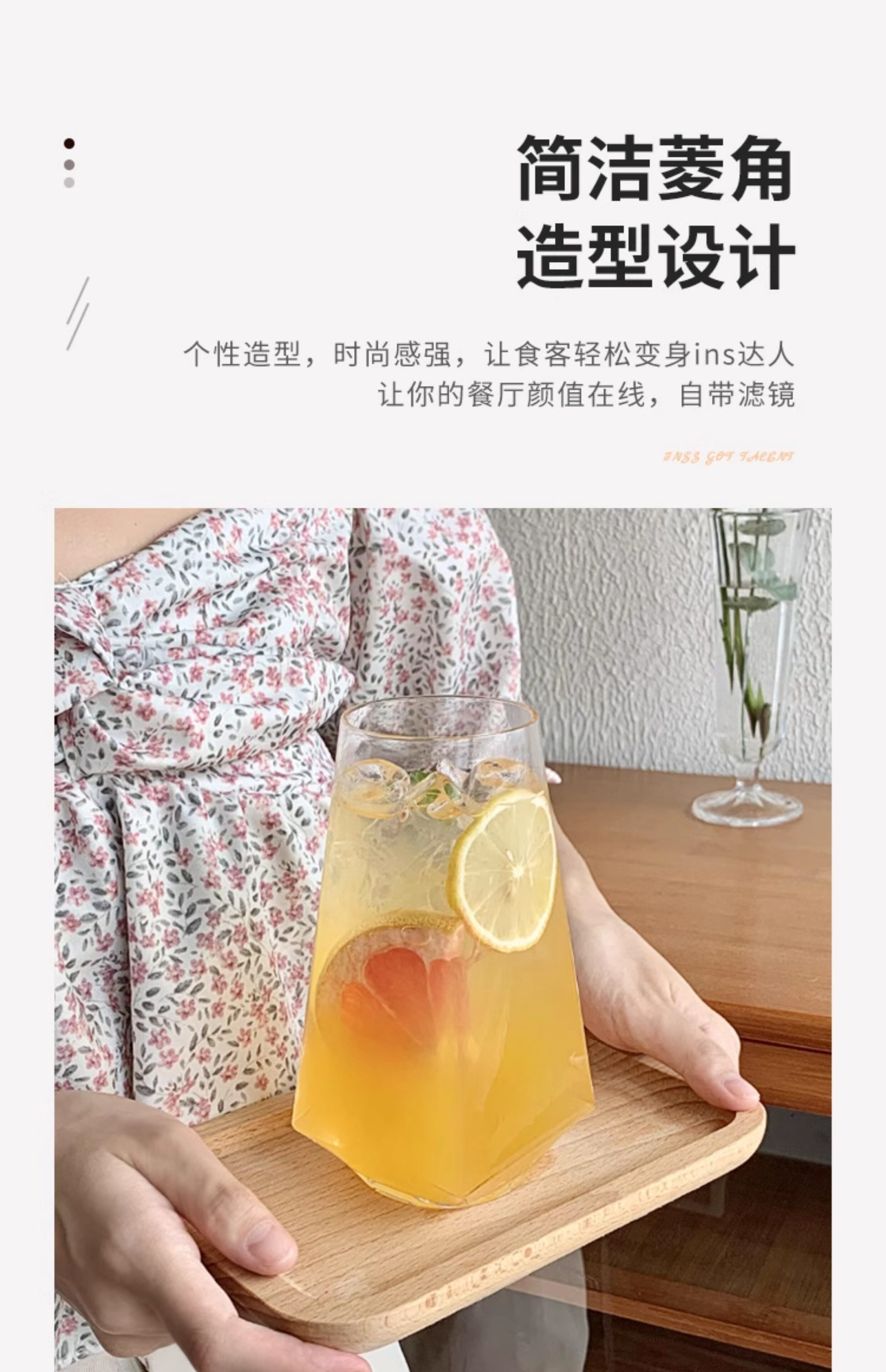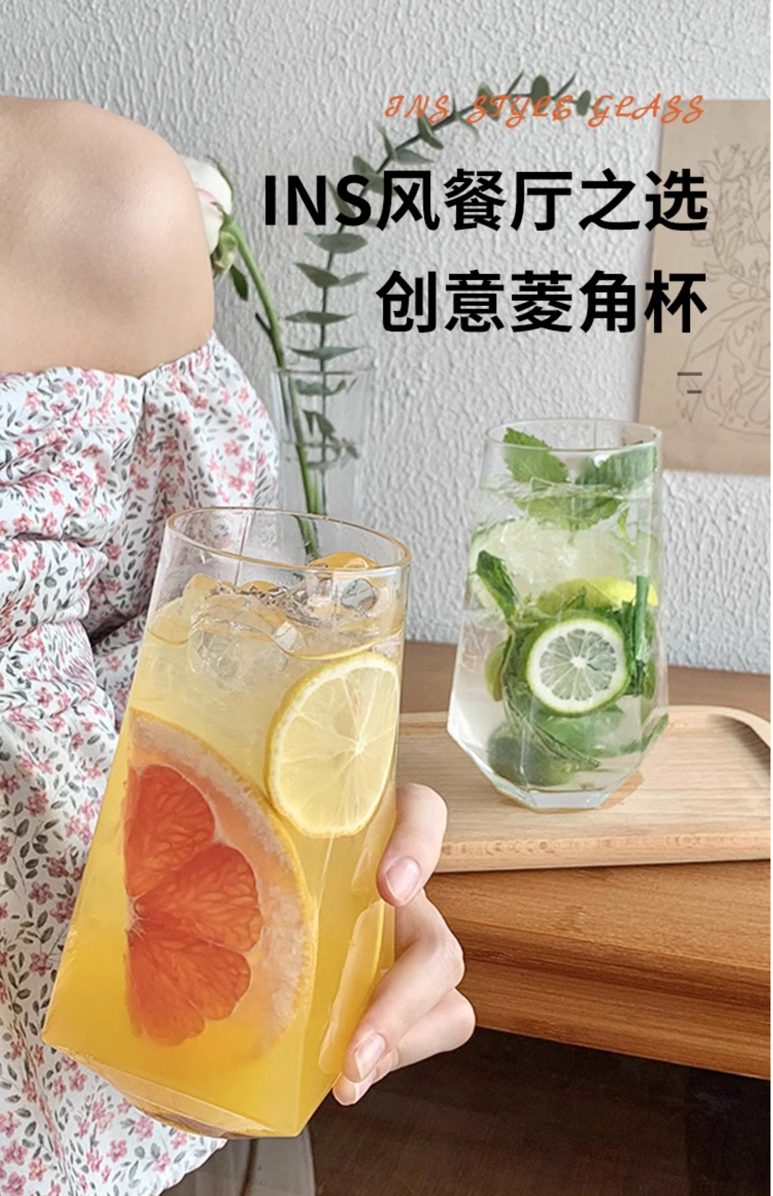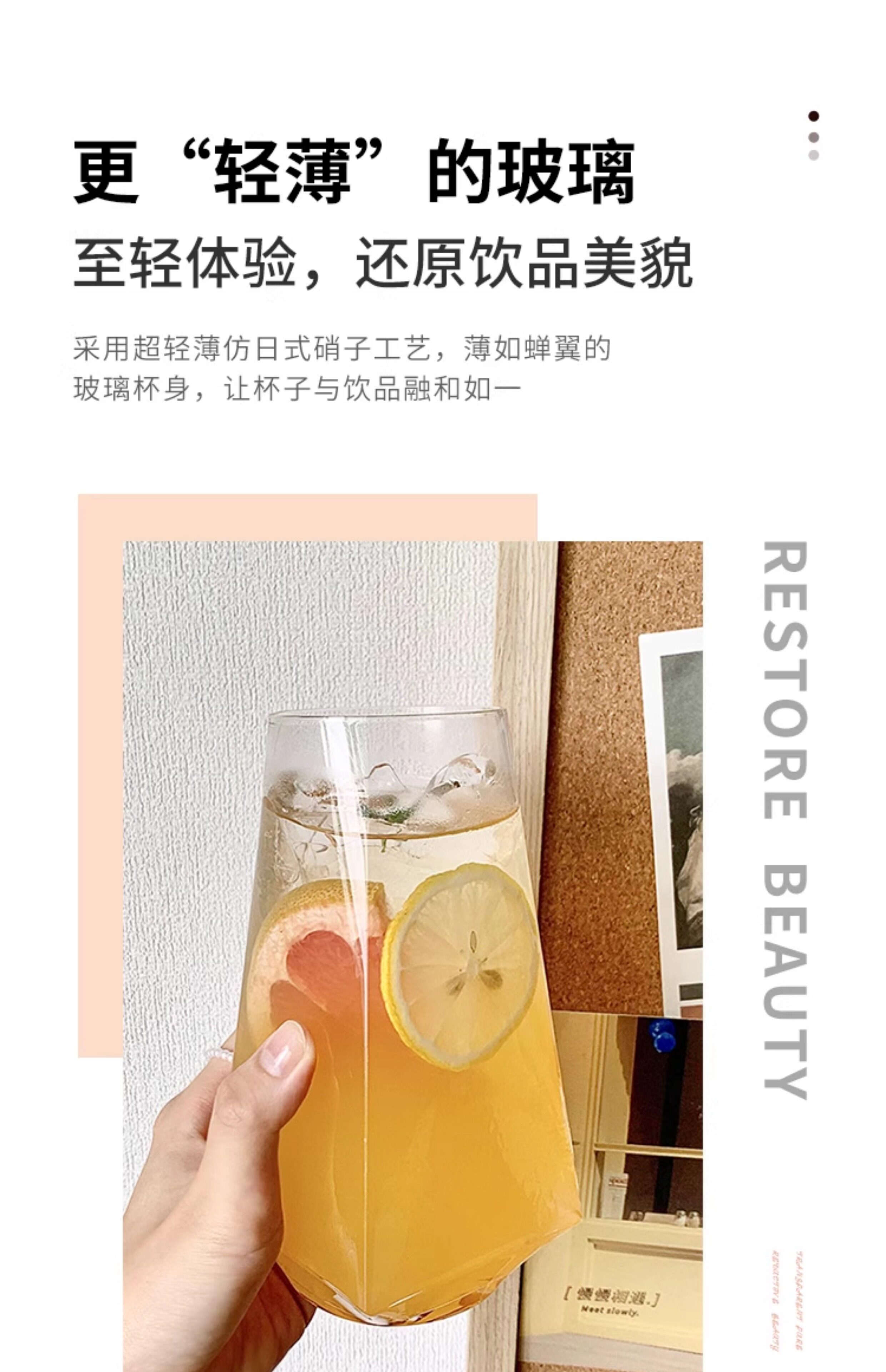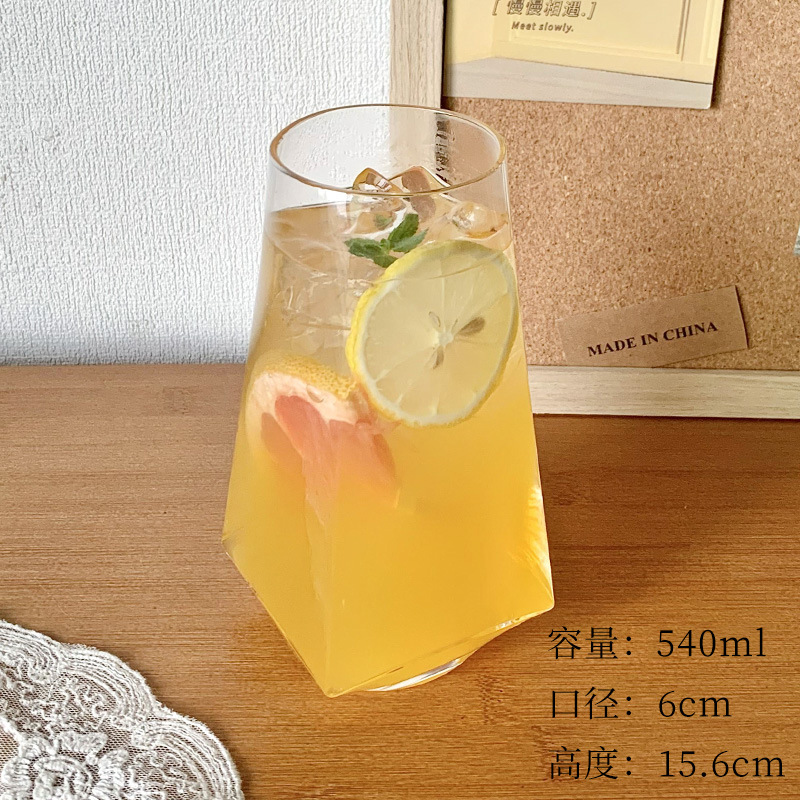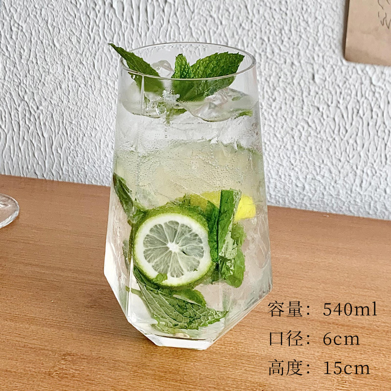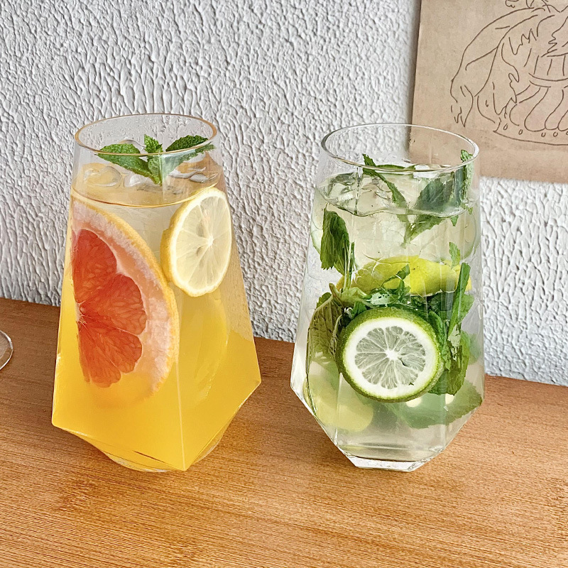 ins风菱角玻璃杯 网红餐厅水果茶杯苏打气泡水杯冷饮料杯喝水杯子