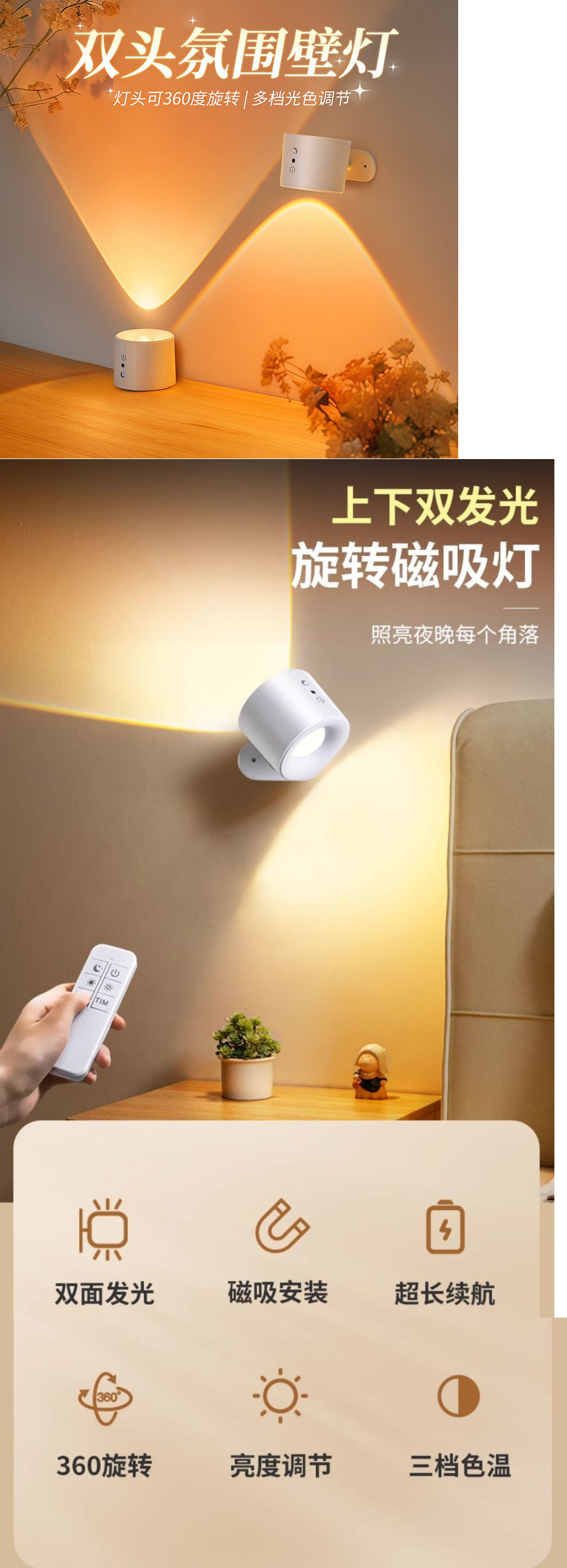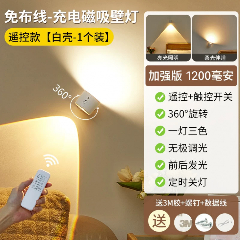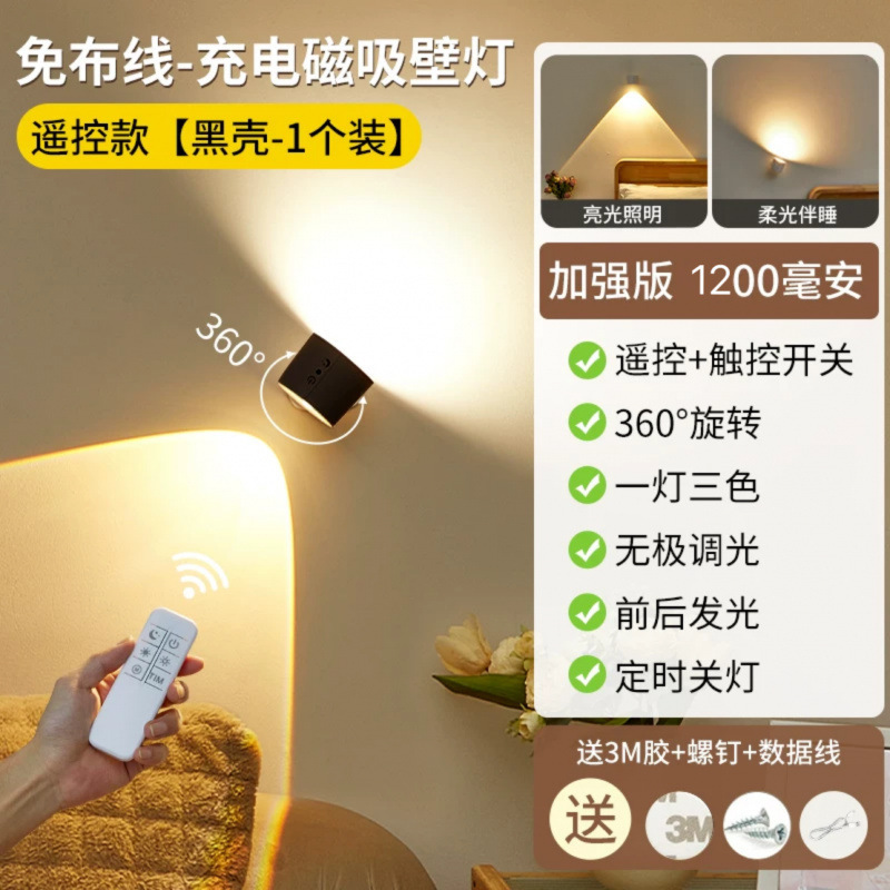벽 램프 충전식 침실 머리맡 독서 눈 보호 테이블 램프 자기 스포트라이트 벽 램프 펀치없는 2025 새로운 고급