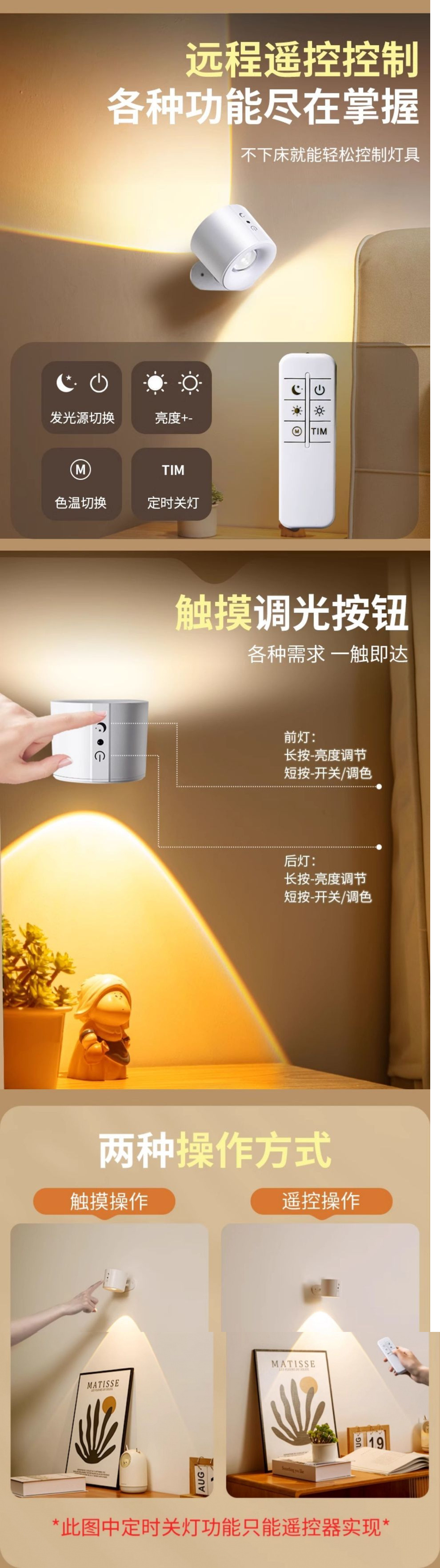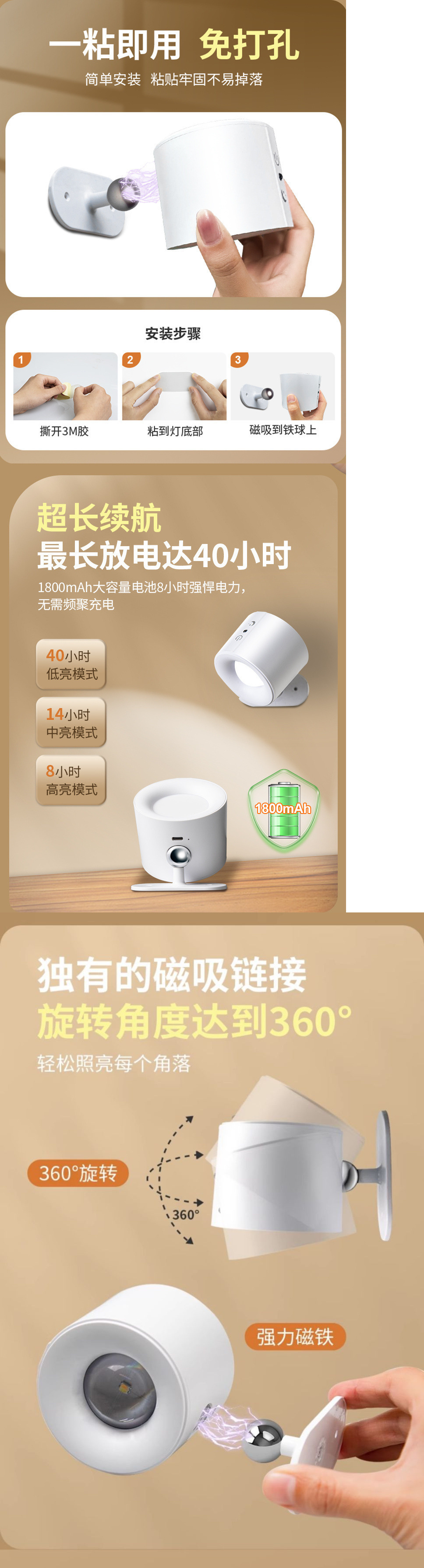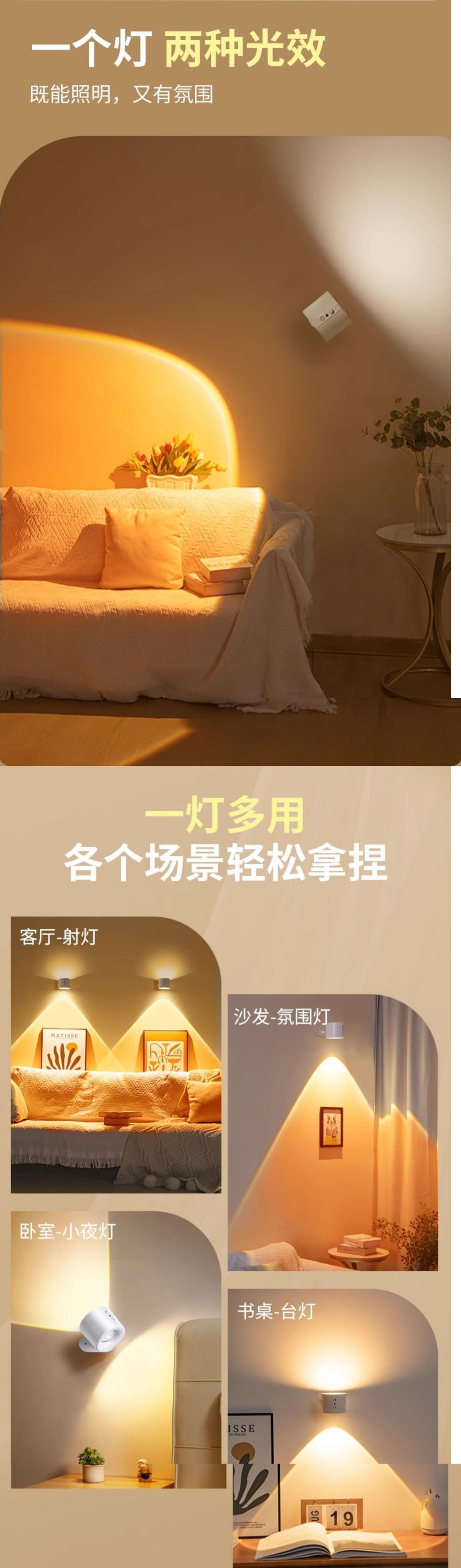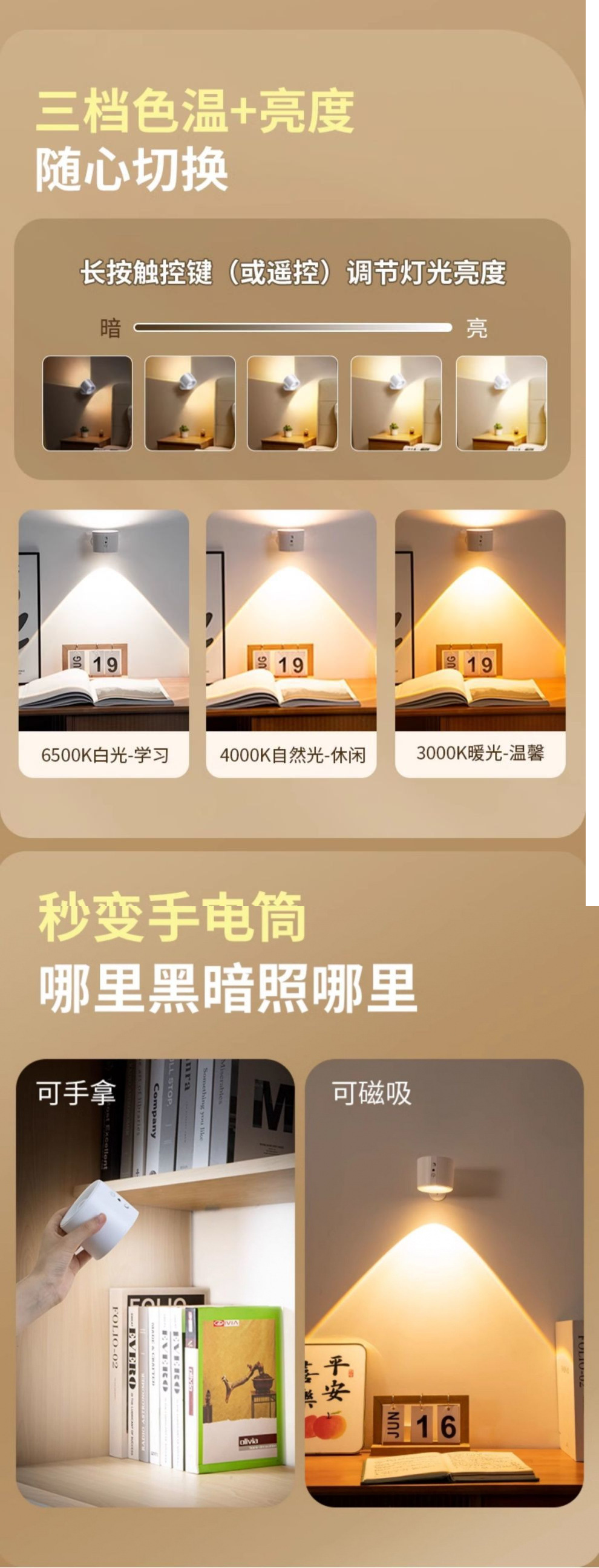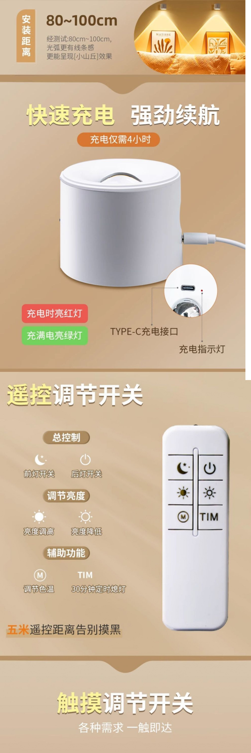 벽 램프 충전식 침실 머리맡 독서 눈 보호 테이블 램프 자기 스포트라이트 벽 램프 펀치없는 2025 새로운 고급스토어 가기