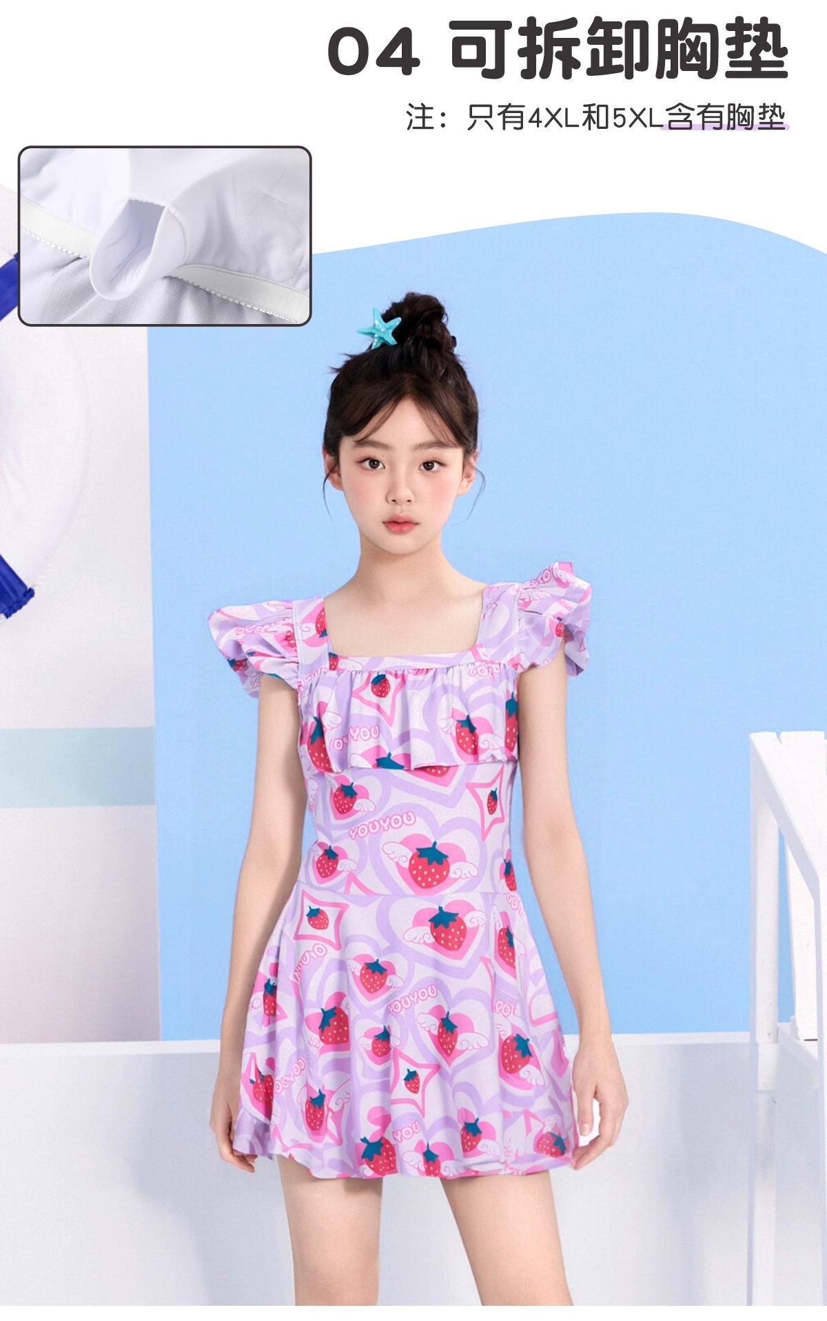 • 4XL [권장 키 140-150cm, 몸무게 32.5-42.5kg ] 탈착식 가슴 패드 포함