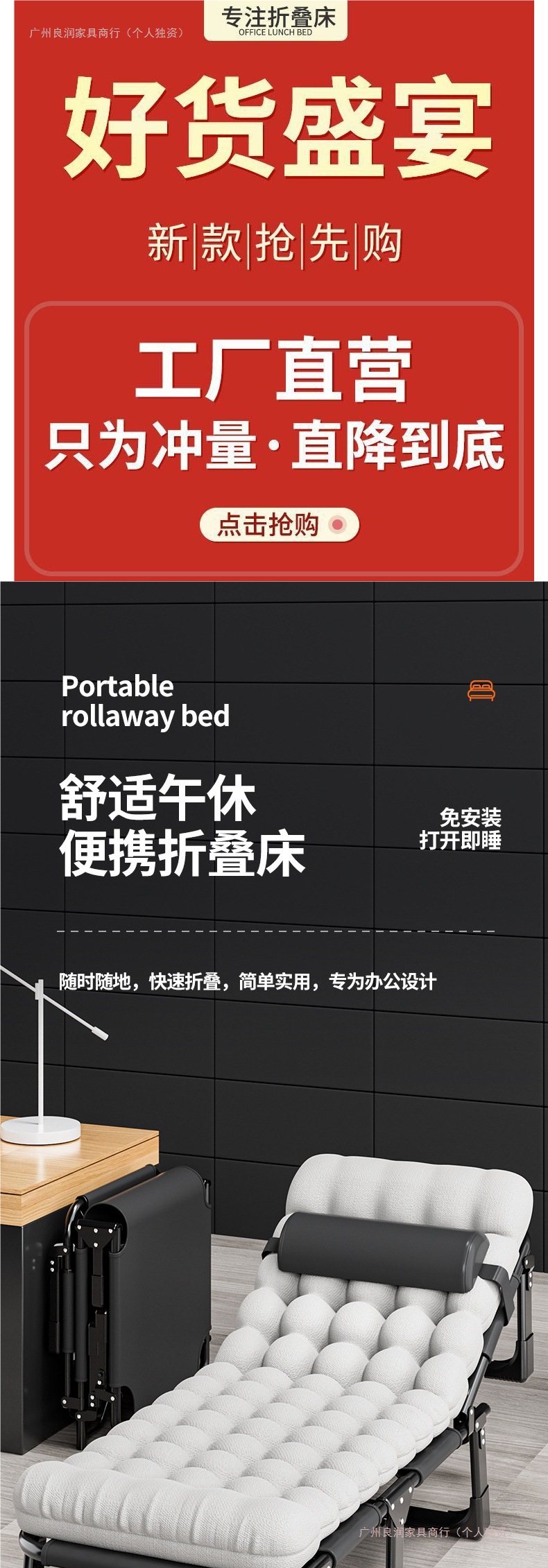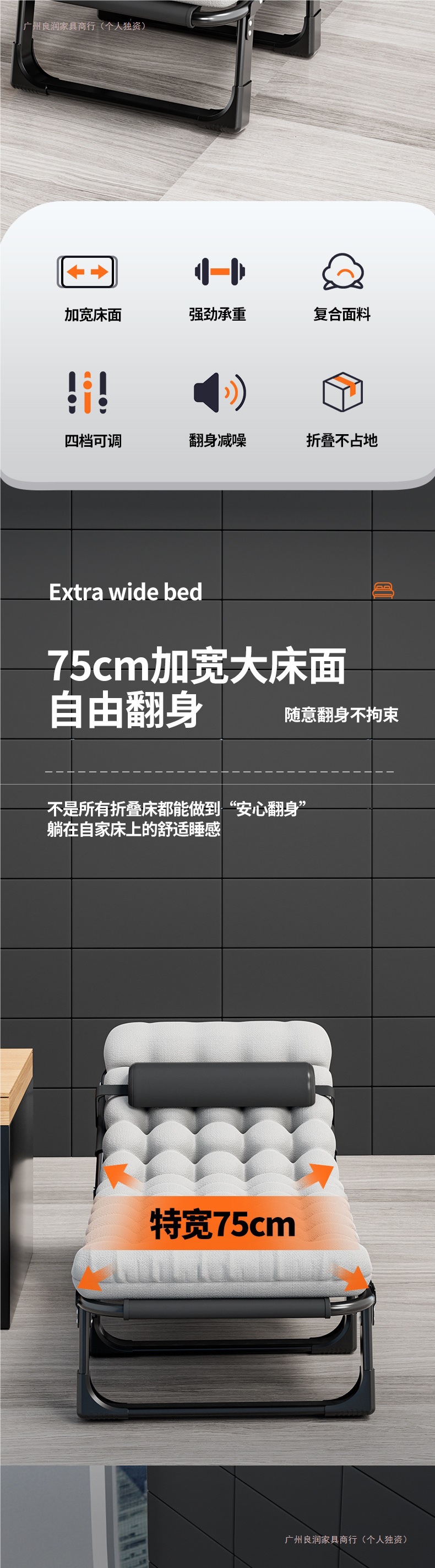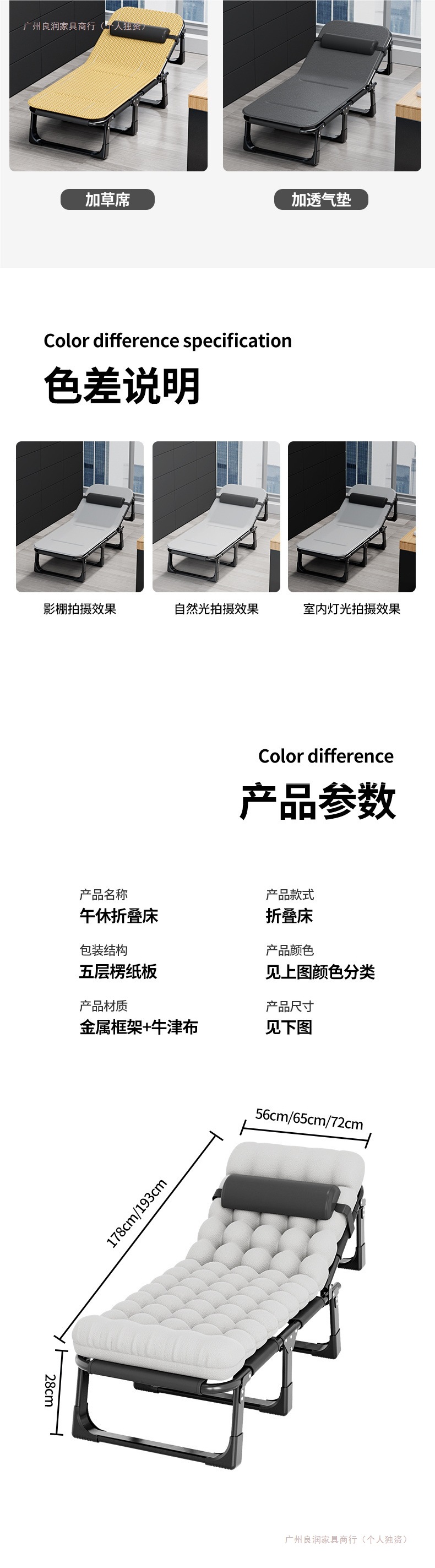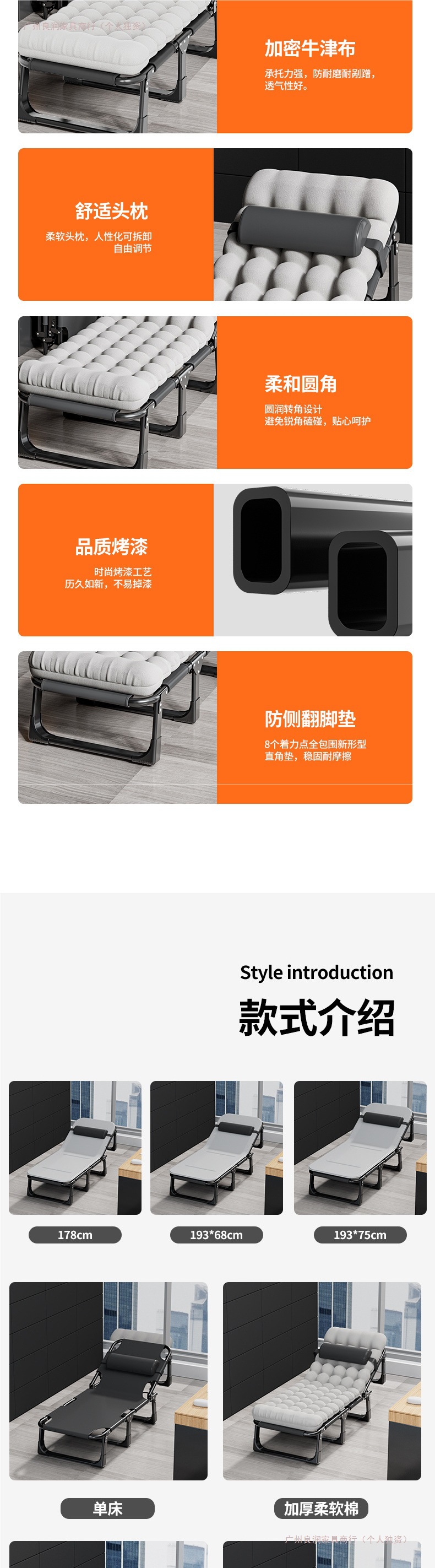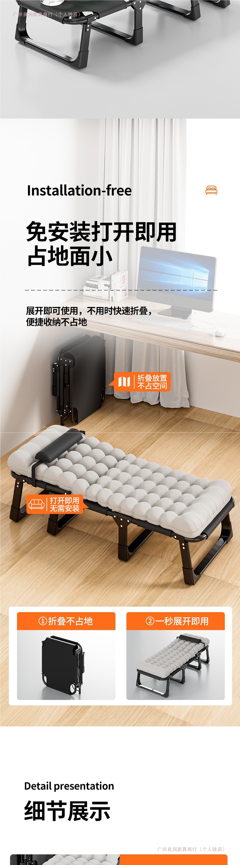 가벼운 접이식 침대, 싱글 침대, 가정용 성인 점심 시간 안락 의자, 사무실 침대, 캠프 침대, 휴대용 및 컴팩트