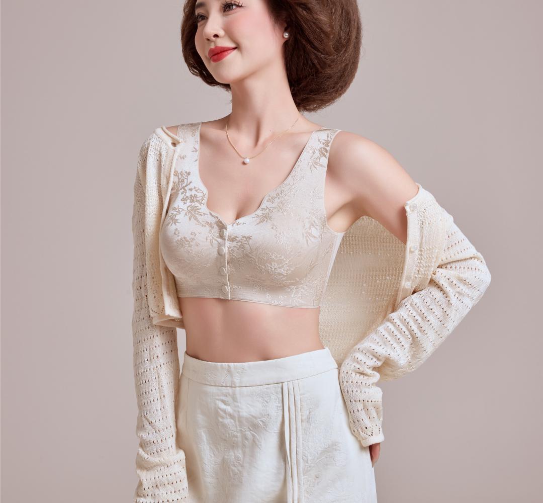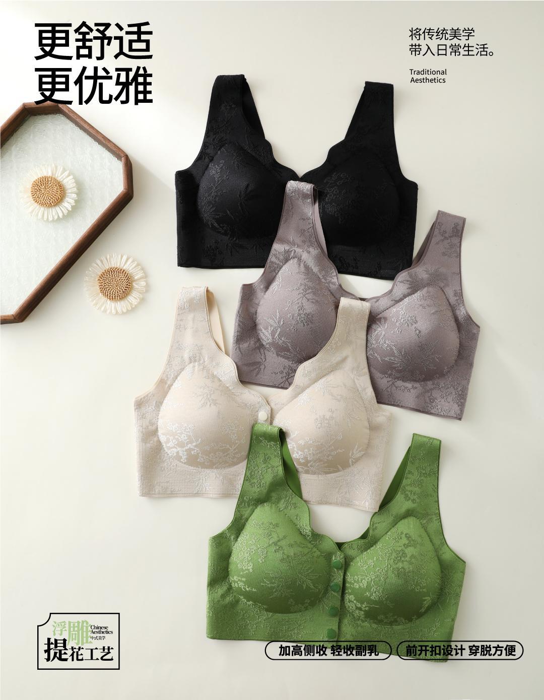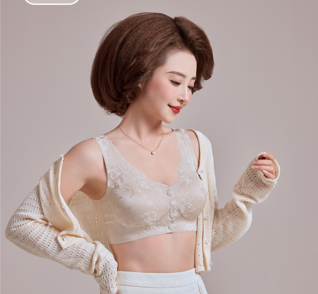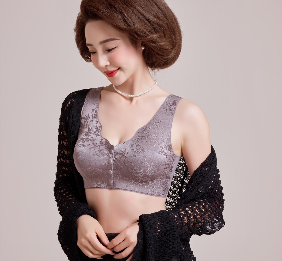 화란리퀸의 새로운 엠보싱 자카드 프론트 버튼 푸쉬업 처짐방지 브라 베스트 스타일 여성용 무봉제 속옷스토어 가기