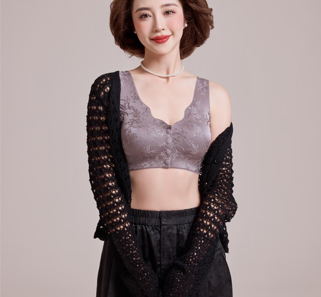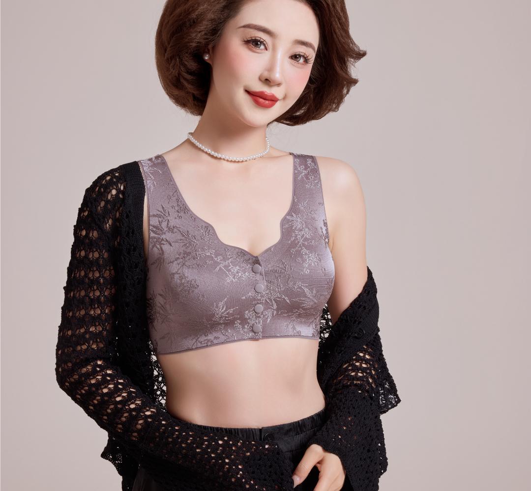 화란리퀸의 새로운 엠보싱 자카드 프론트 버튼 푸쉬업 처짐방지 브라 베스트 스타일 여성용 무봉제 속옷