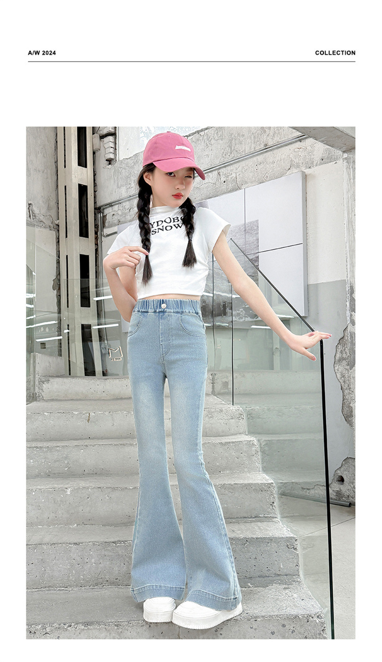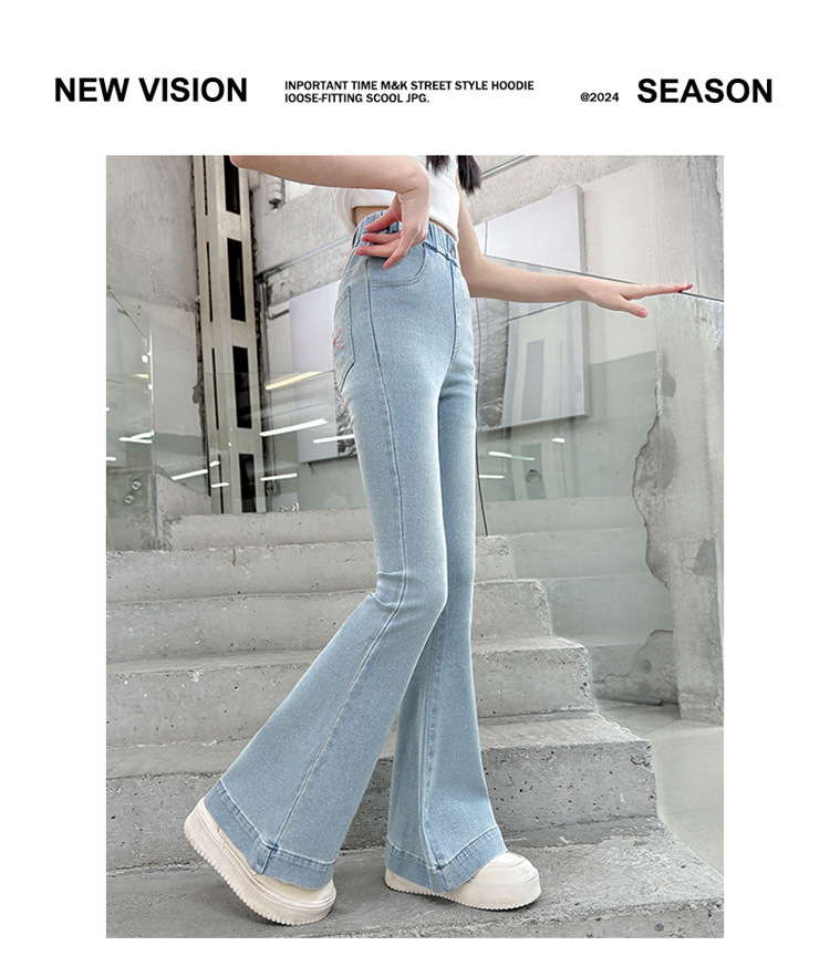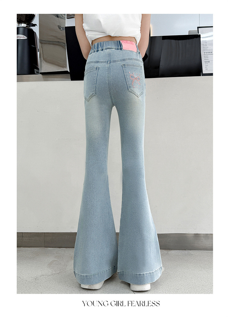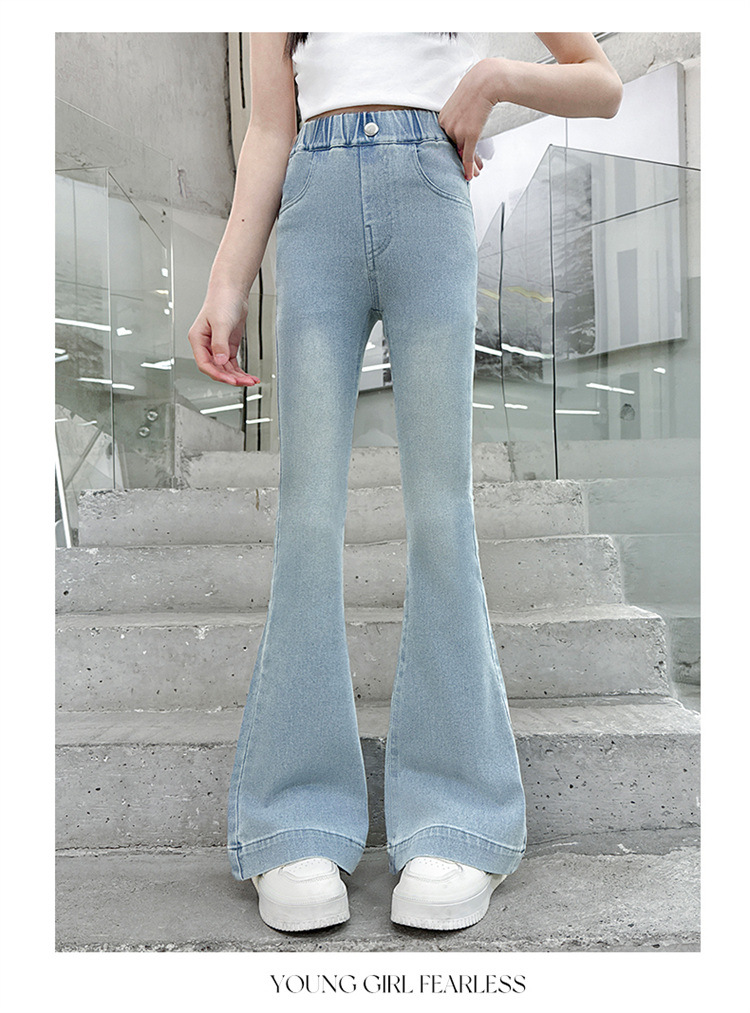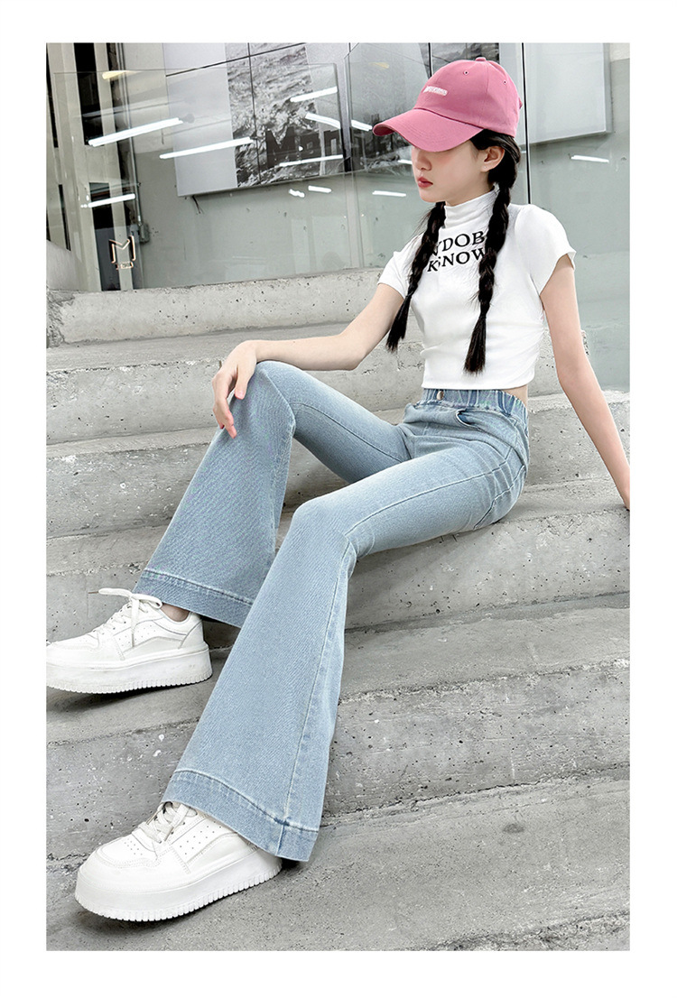 여아 데님 플레어 팬츠, 여아 봄, 가을 신축성 있는 타이트한 마이크로 플레어 청바지, 패셔너블하고 스타일리시한 아동용 바지스토어 가기