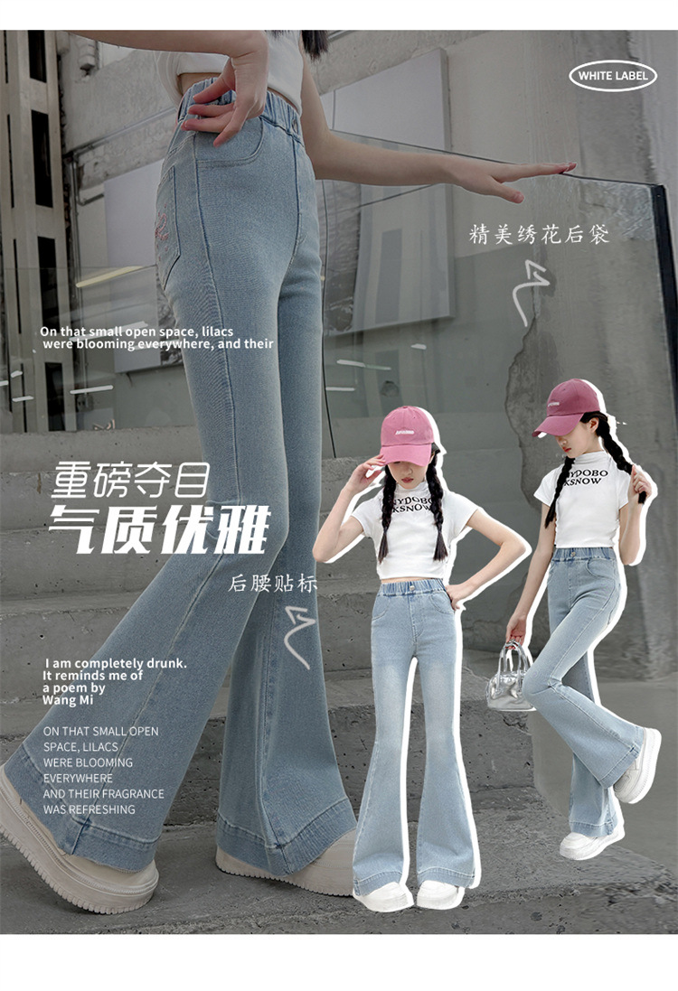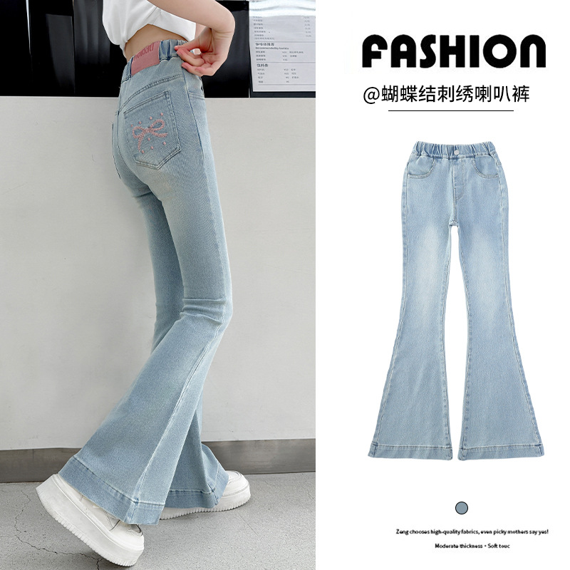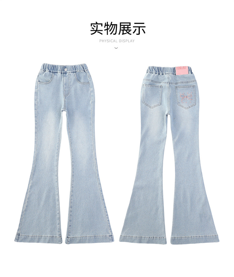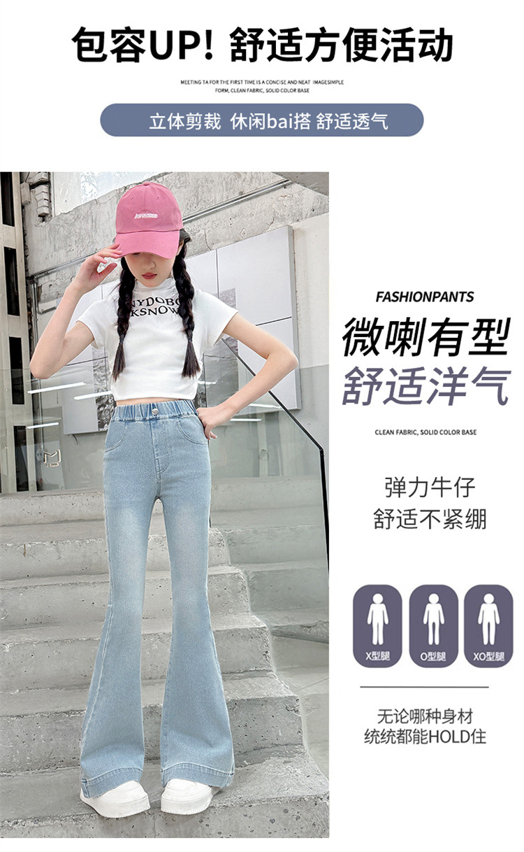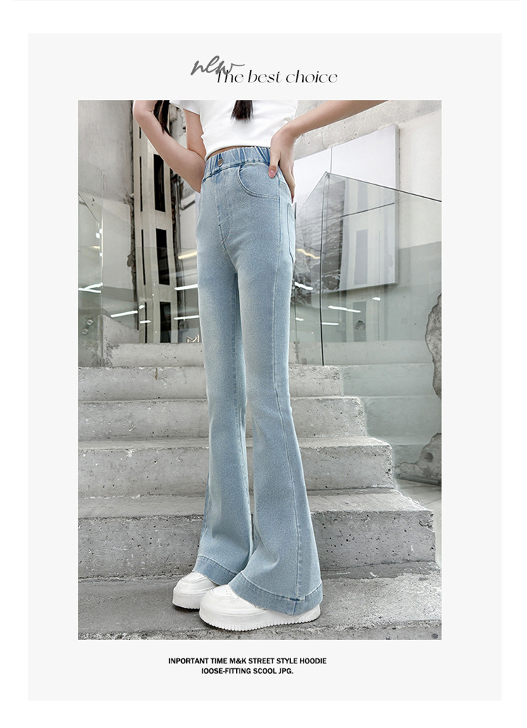 여아 데님 플레어 팬츠, 여아 봄, 가을 신축성 있는 타이트한 마이크로 플레어 청바지, 패셔너블하고 스타일리시한 아동용 바지스토어 가기