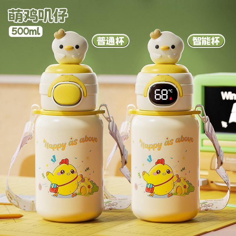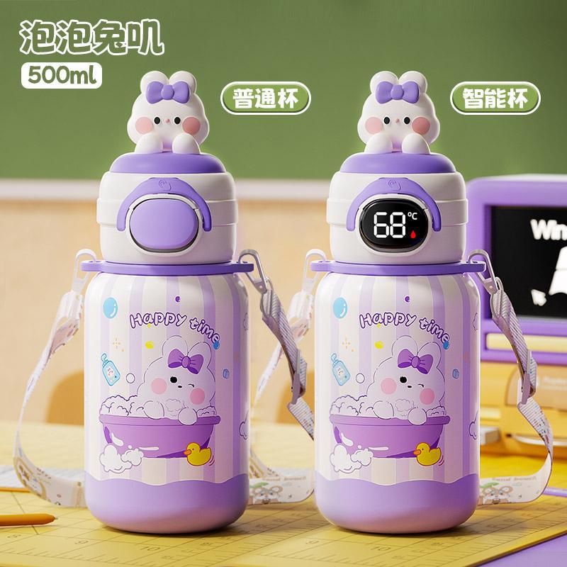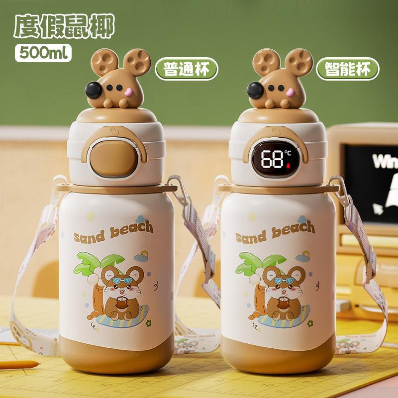 500ml 동물 파티 스마트 보온병 컵 더블 드링크 귀여운 학생 크로스 바디 안티 드롭 인기 귀여운 밀짚 워터 컵