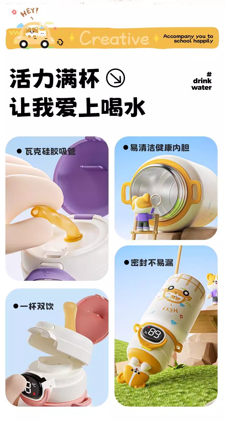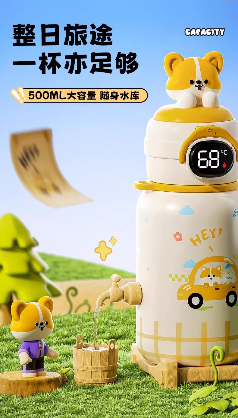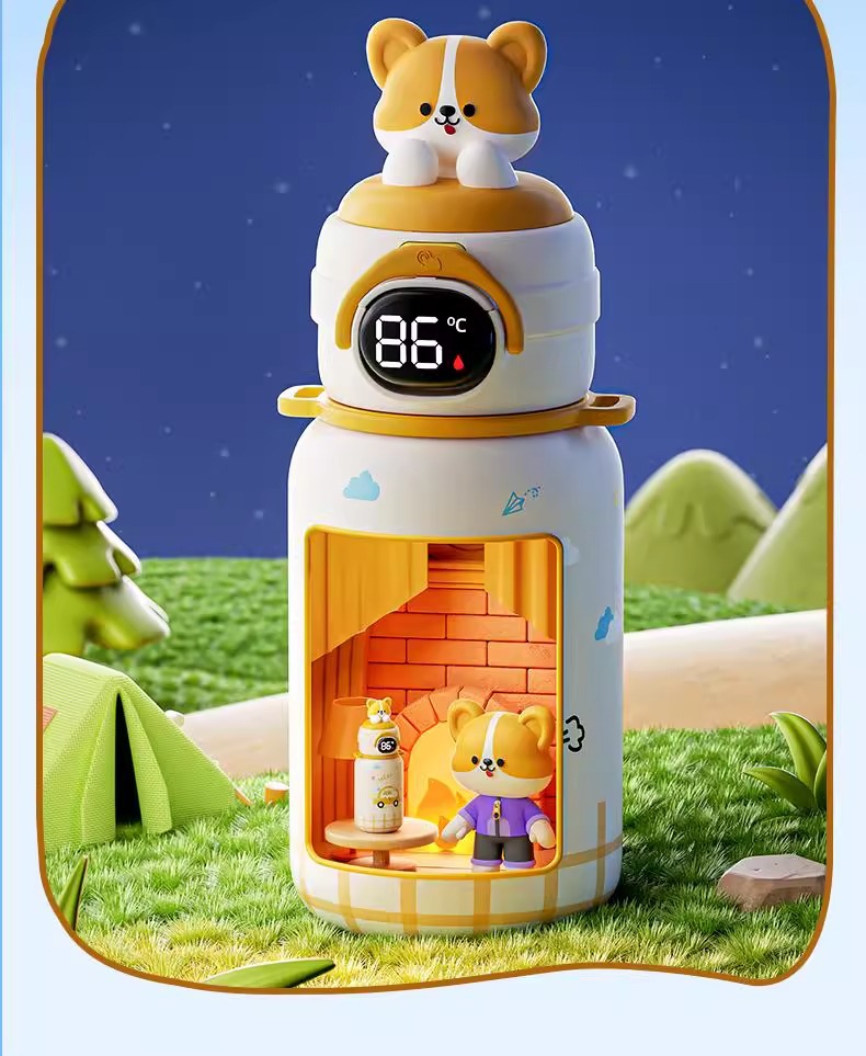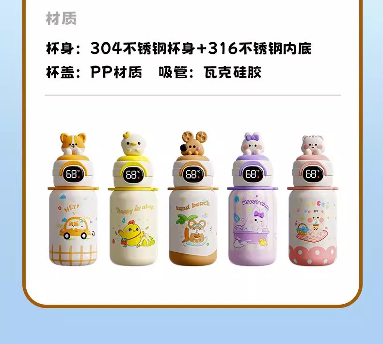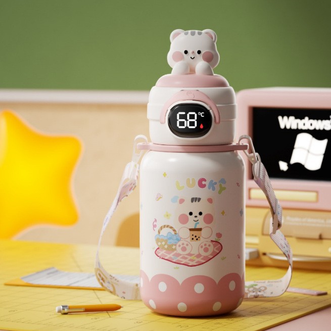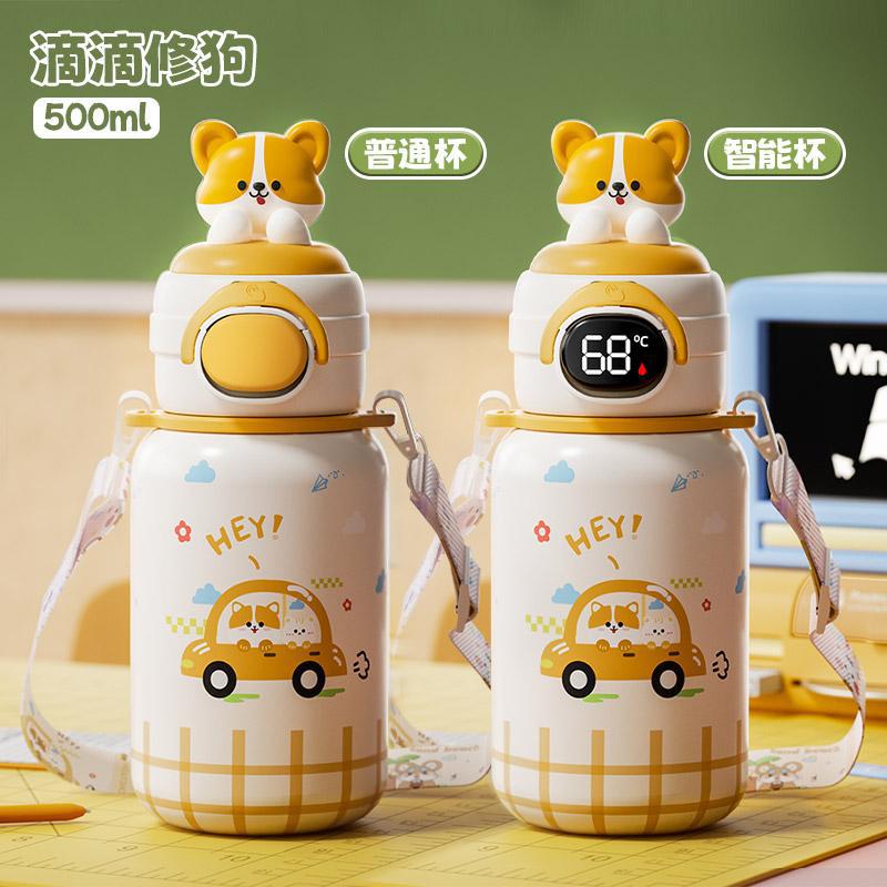 500ml 동물 파티 스마트 보온병 컵 더블 드링크 귀여운 학생 크로스 바디 안티 드롭 인기 귀여운 밀짚 워터 컵스토어 가기