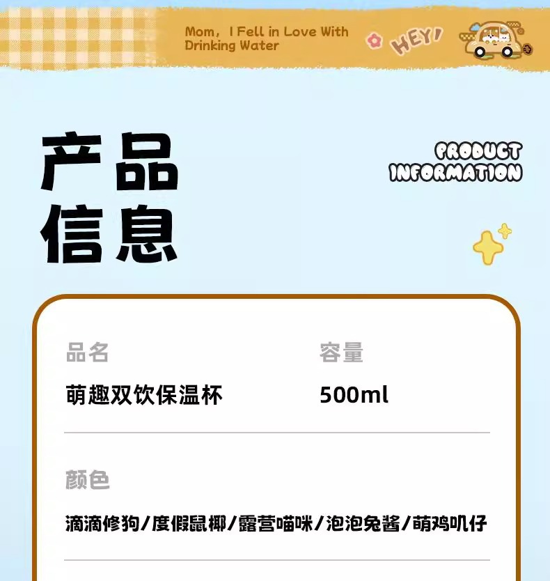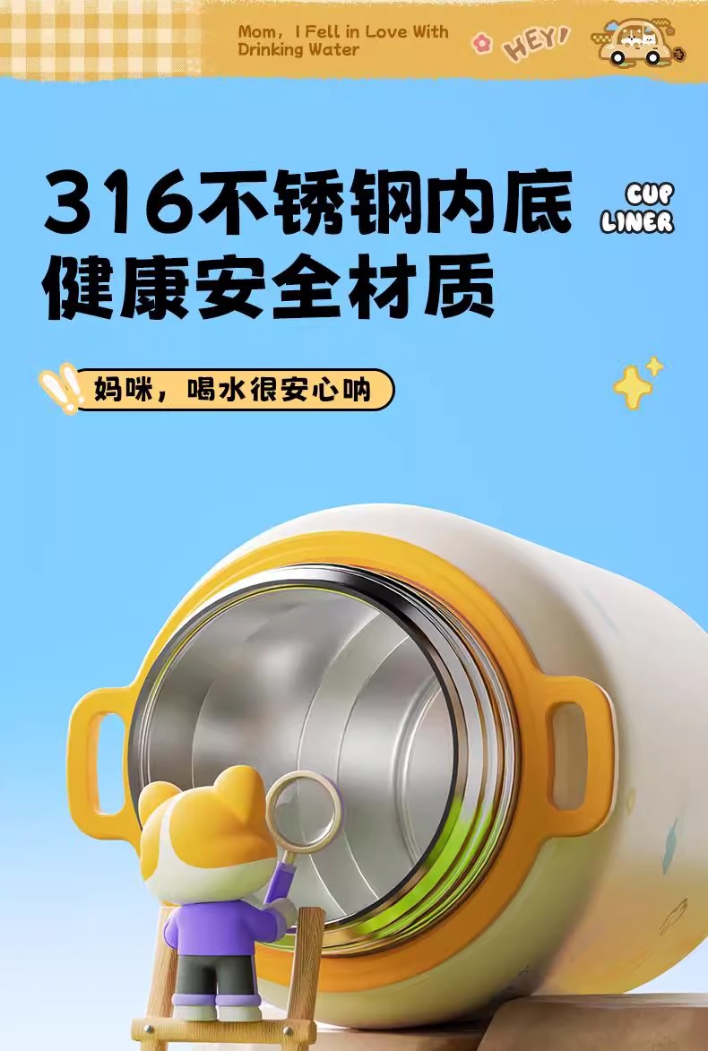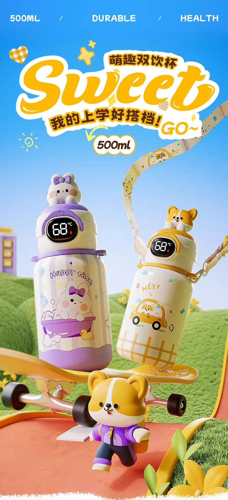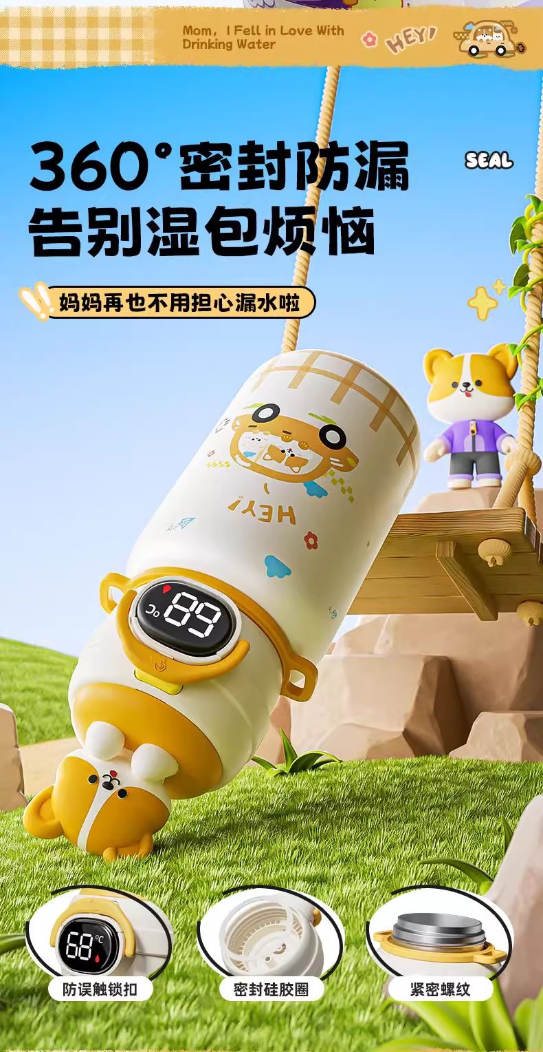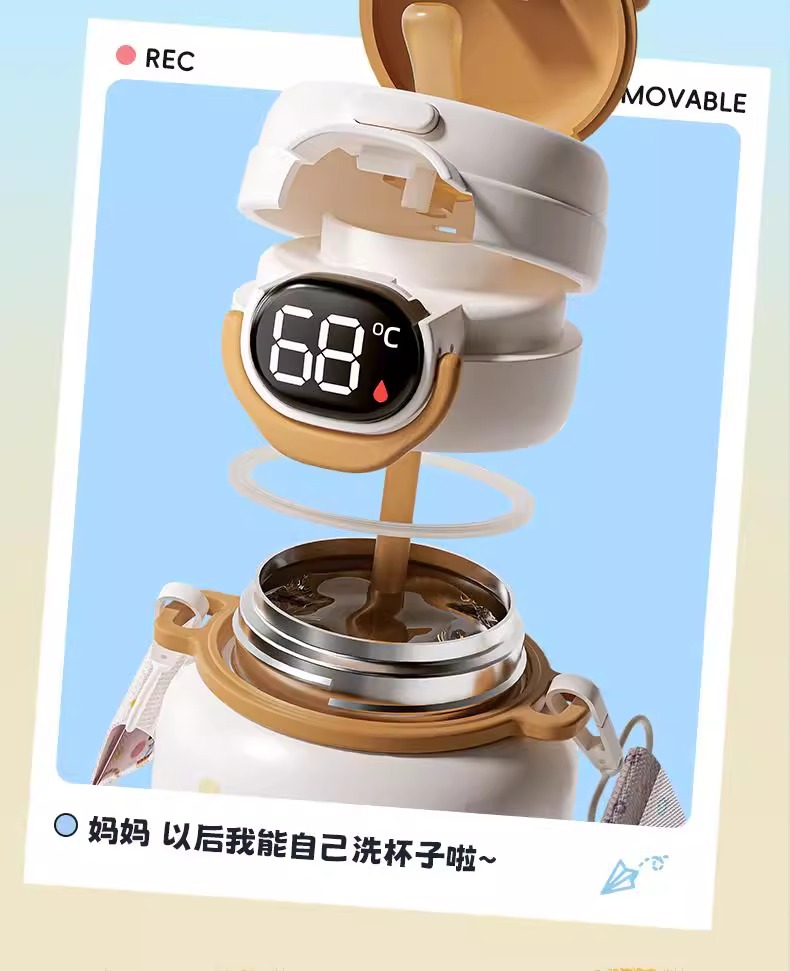 500ml 동물 파티 스마트 보온병 컵 더블 드링크 귀여운 학생 크로스 바디 안티 드롭 인기 귀여운 밀짚 워터 컵스토어 가기