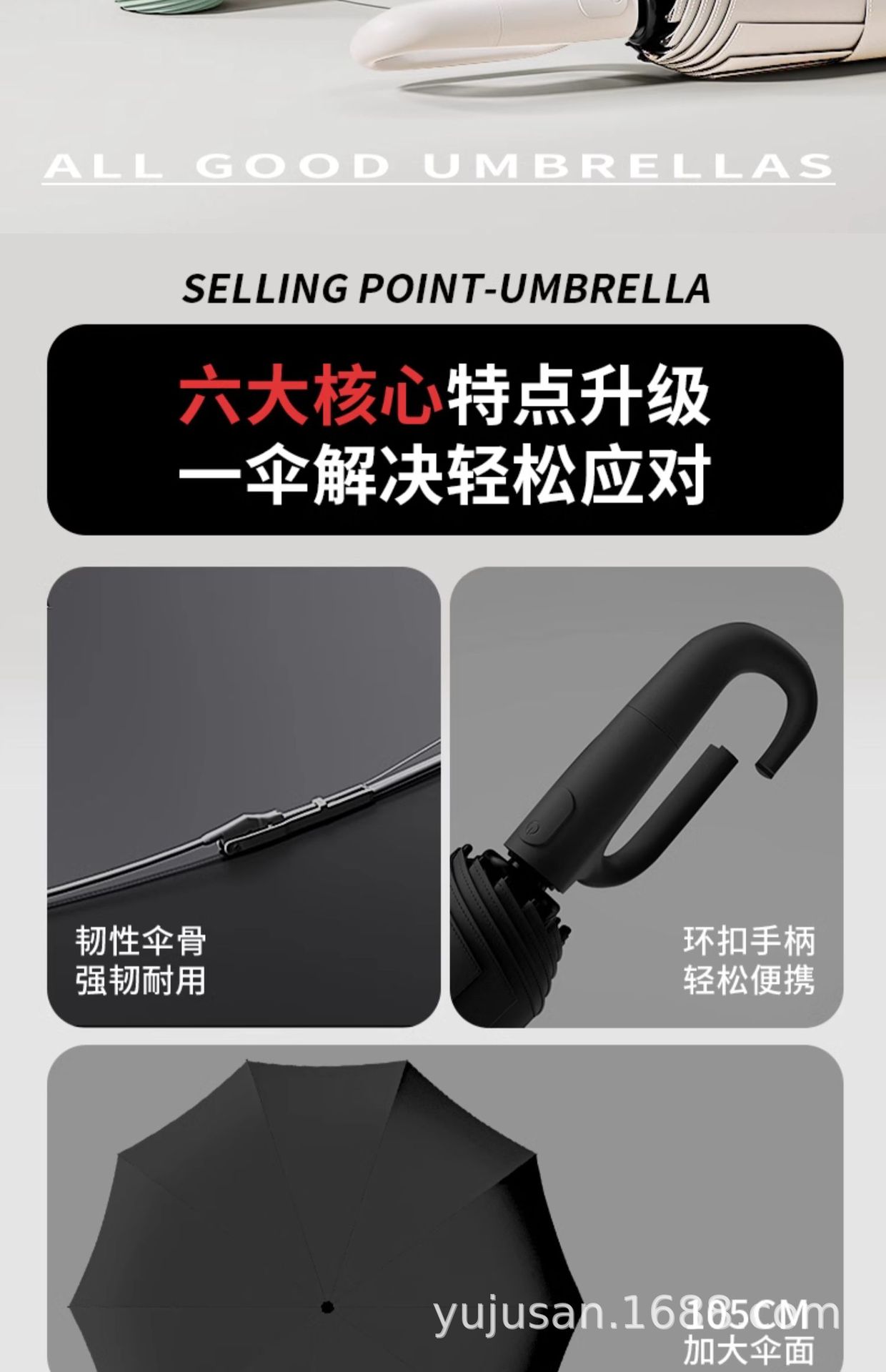• [휴대용 링 버클] 베이지 컬러 - 초폭풍 우산 꽂이 + 고출력 자외선 차단/강력한 방수