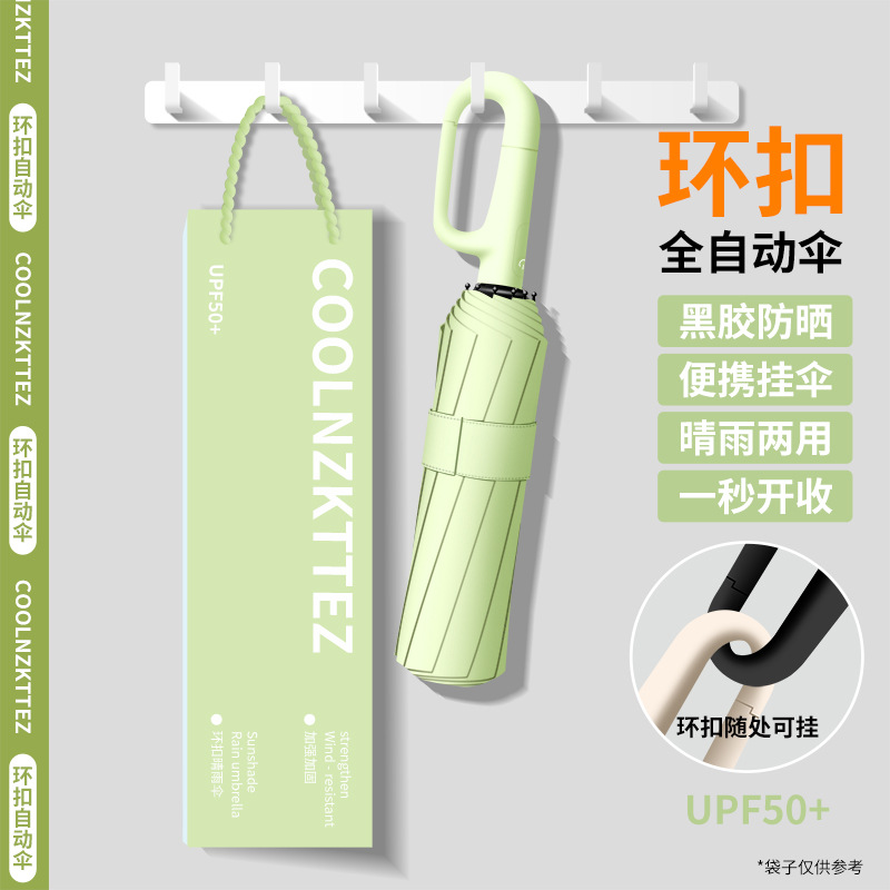 여성용 및 남성용 링 버클 완전 자동 우산, 자외선 차단 우산, 자외선 차단, 비 또는 빛, 맞춤형 로고 인쇄스토어 가기