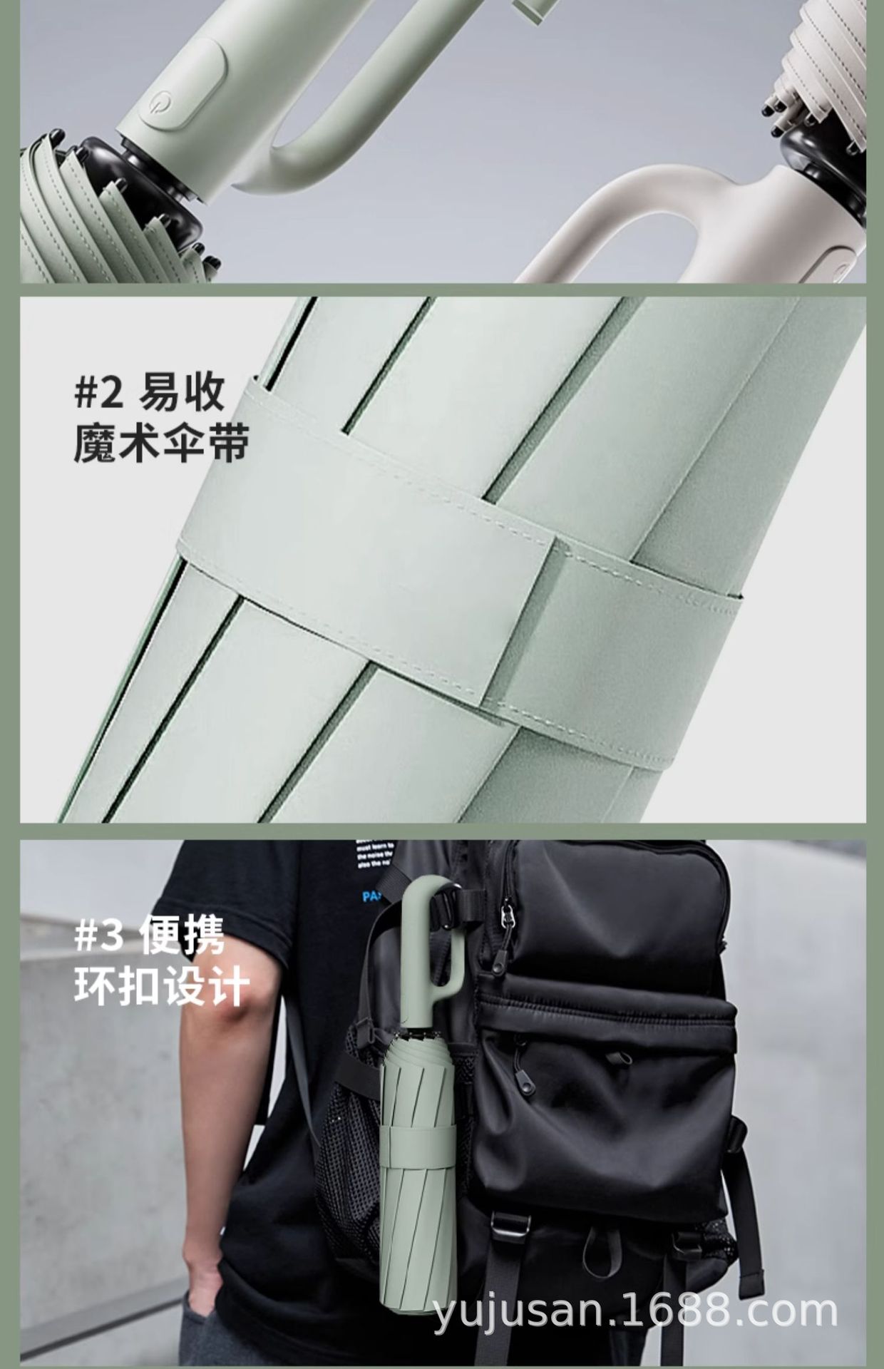 • 【휴대용 고리】 말차 그린 - 울트라 방풍 우산 + 강력 자외선 차단/강력 방수