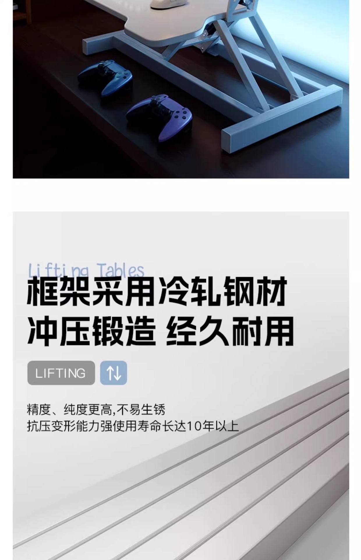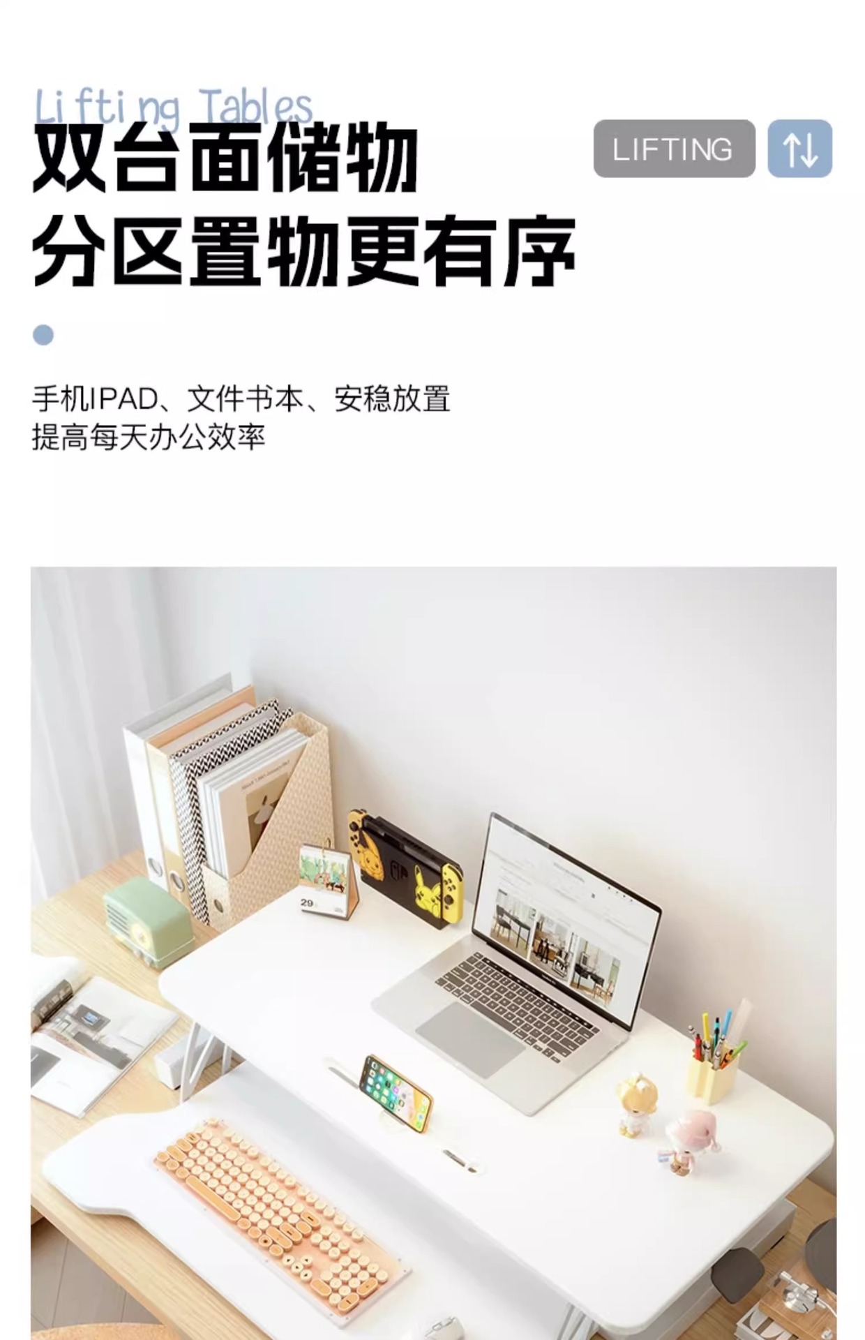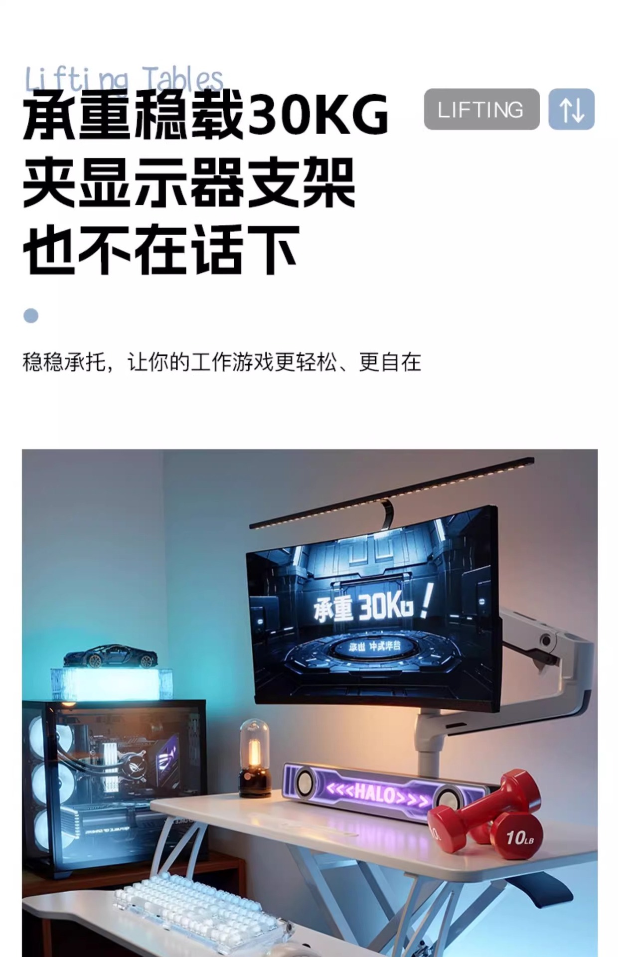 • 단층 공압 플래그십 모델 94cm 아이보리 화이트는 듀얼 모니터를 수용할 수 있습니다.