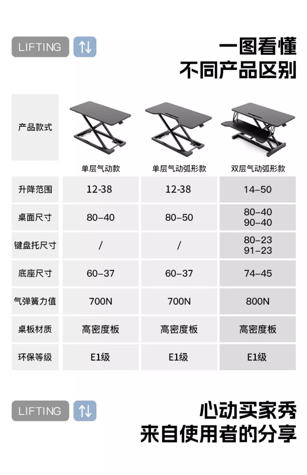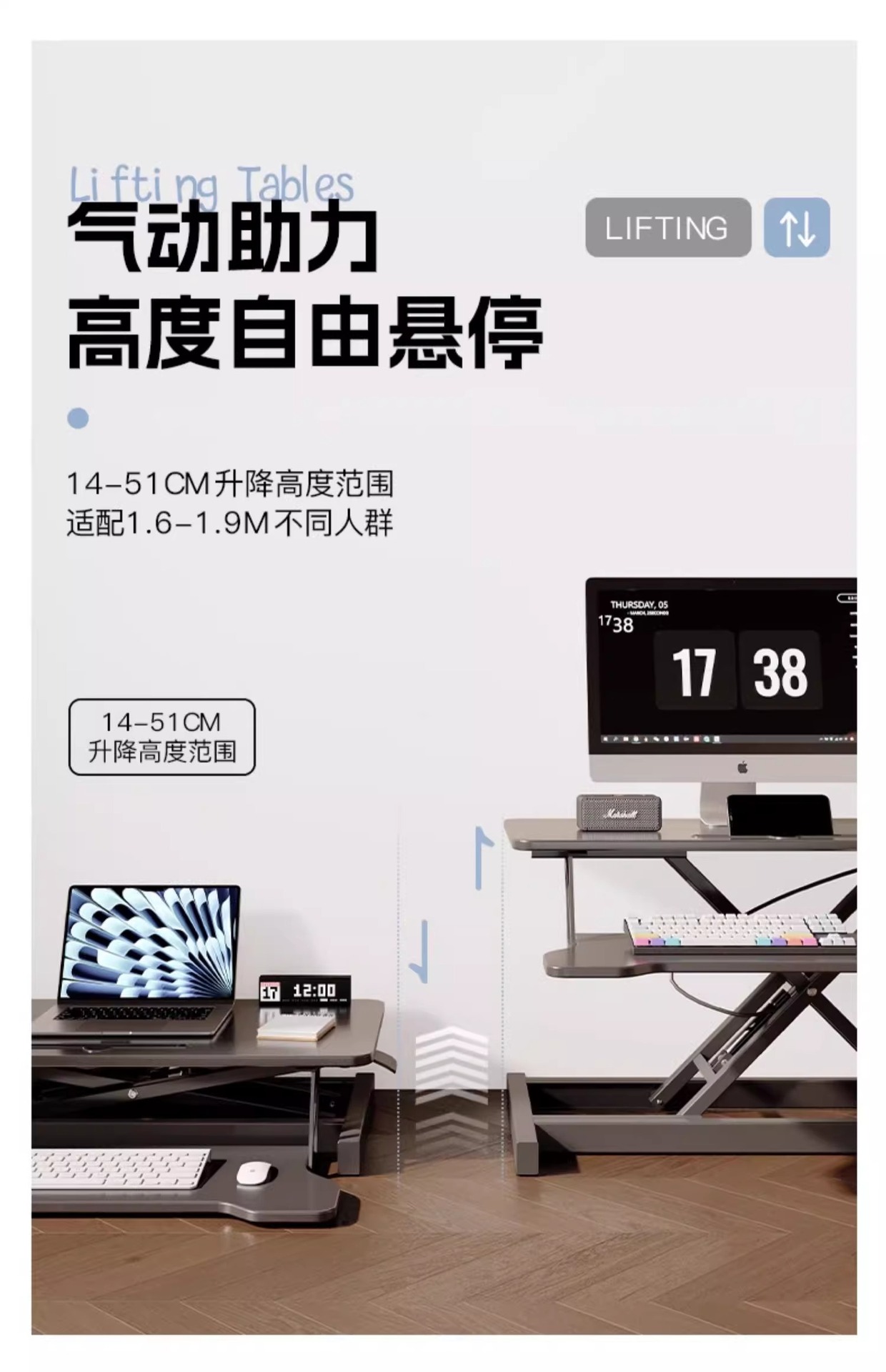 스탠딩 리프팅 컴퓨터 작업대 데스크탑 스탠드 높이 조절 사무실 노트북 모니터 공압 데스크탑