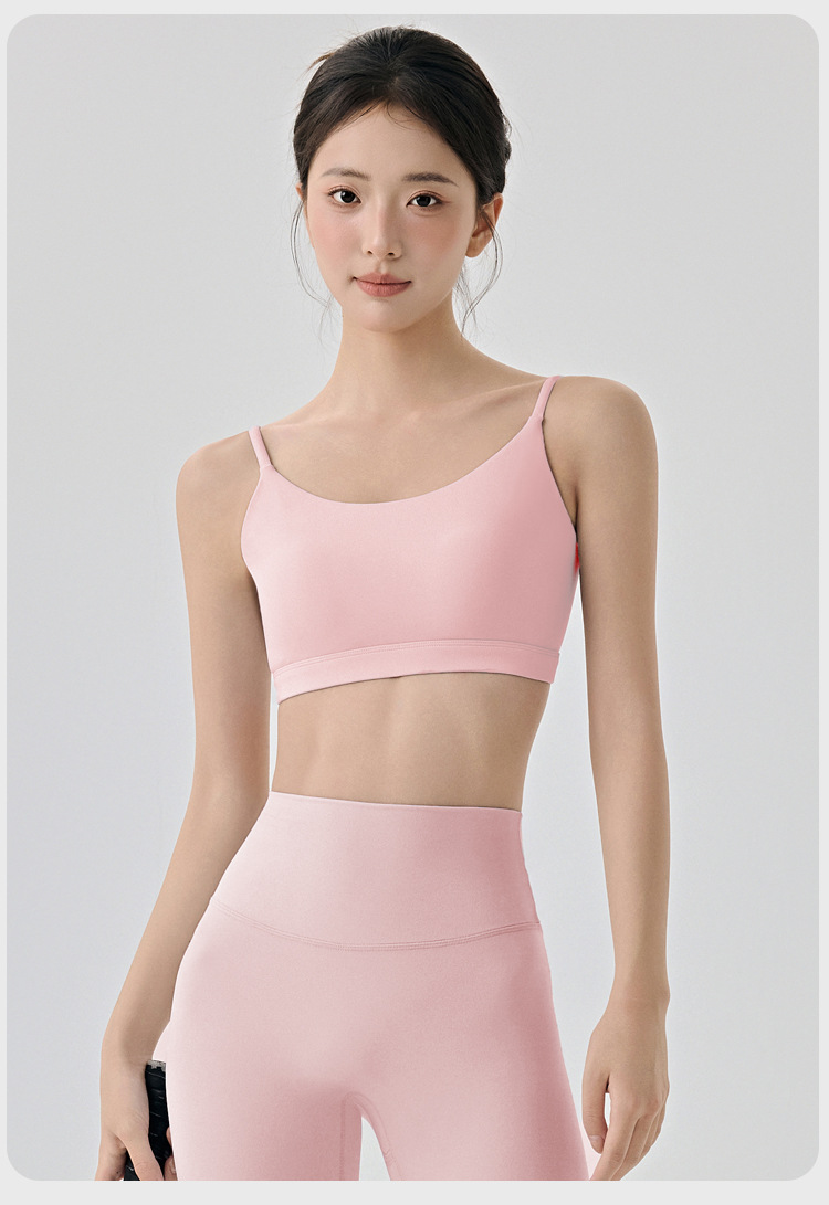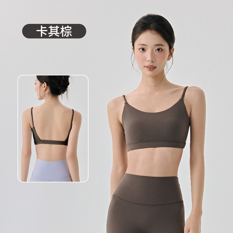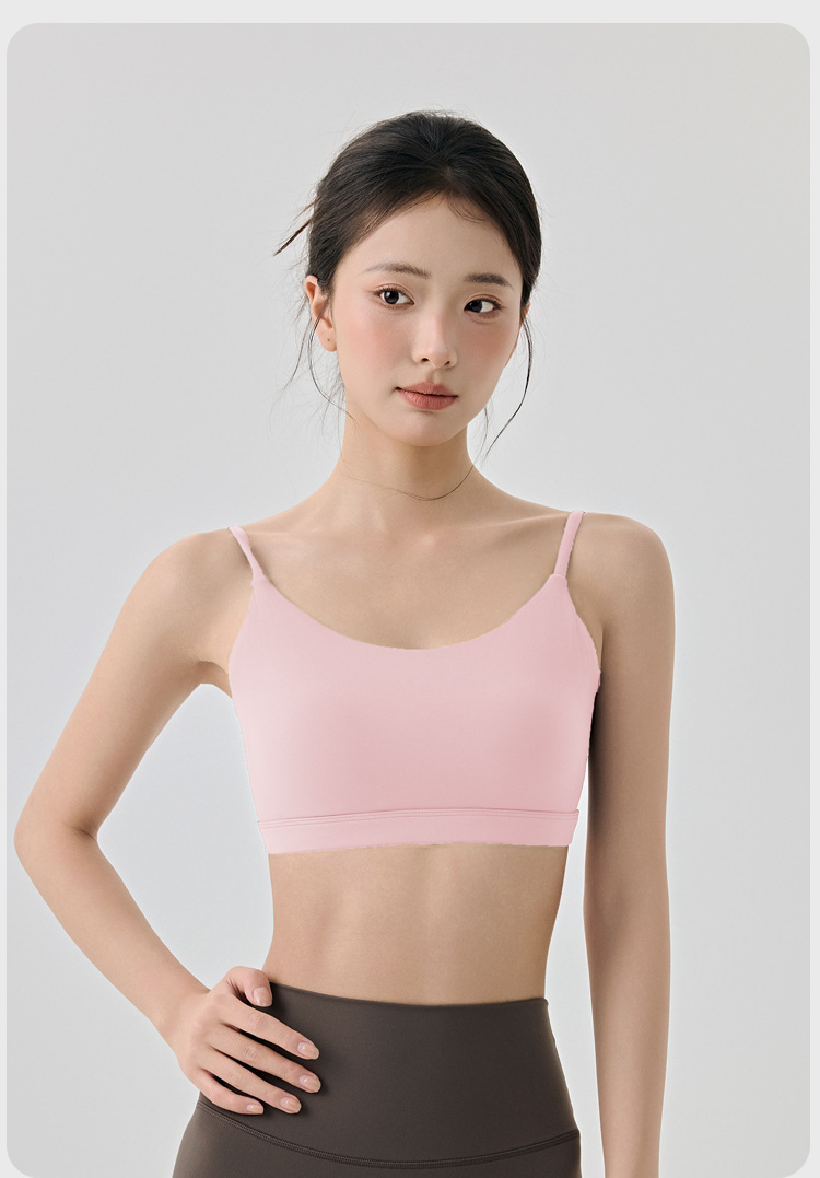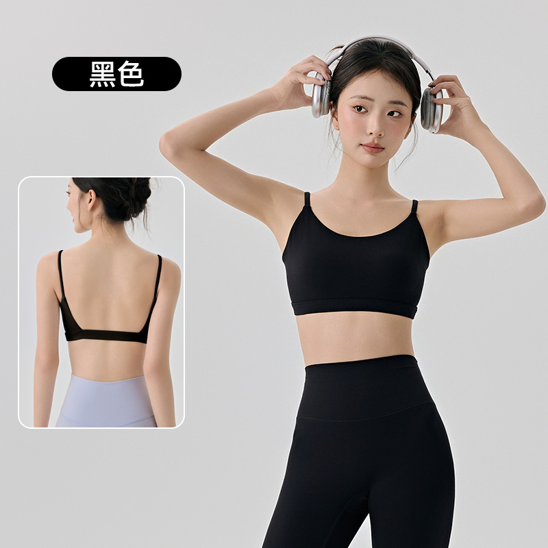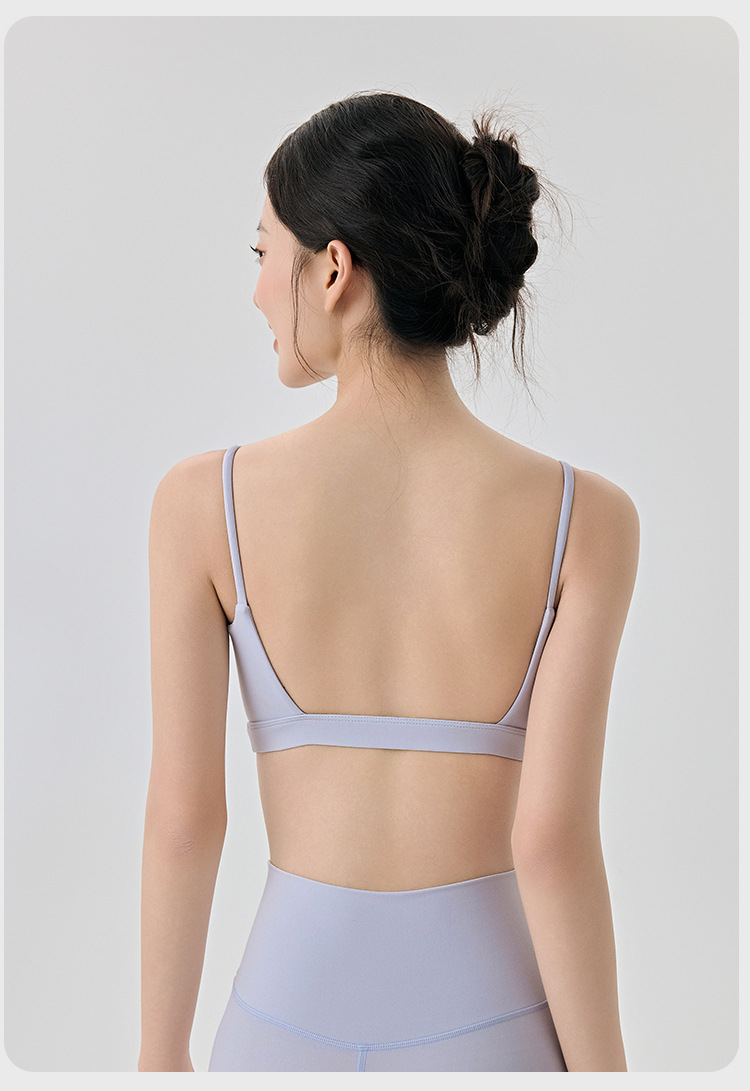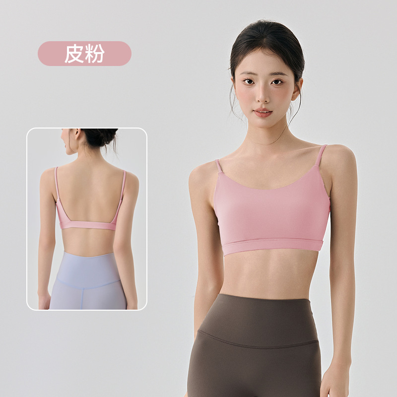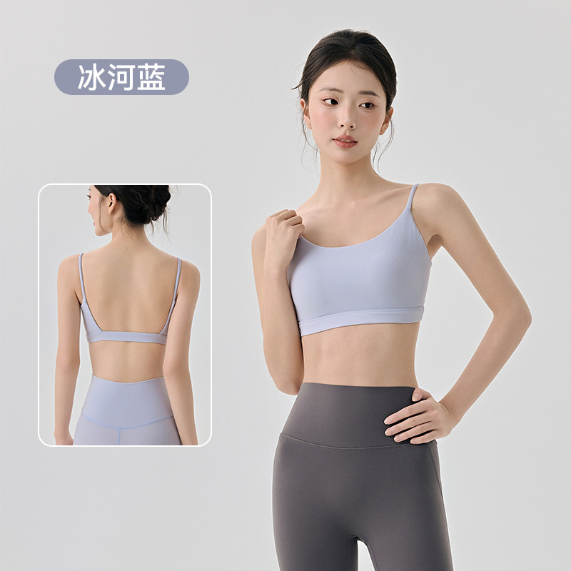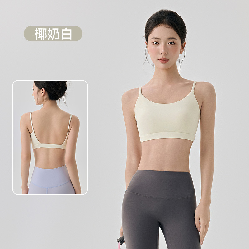 라이크라 아름다운 등 요가 속옷 반 고정 다이아몬드 컵 여성용 히알루 론산 보습 스파게티 스트랩 스포츠 피트니스웨어 브라스토어 가기