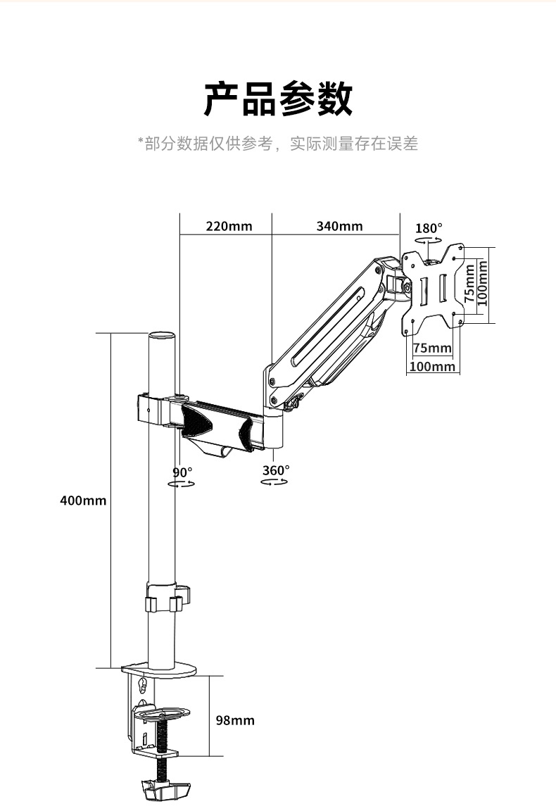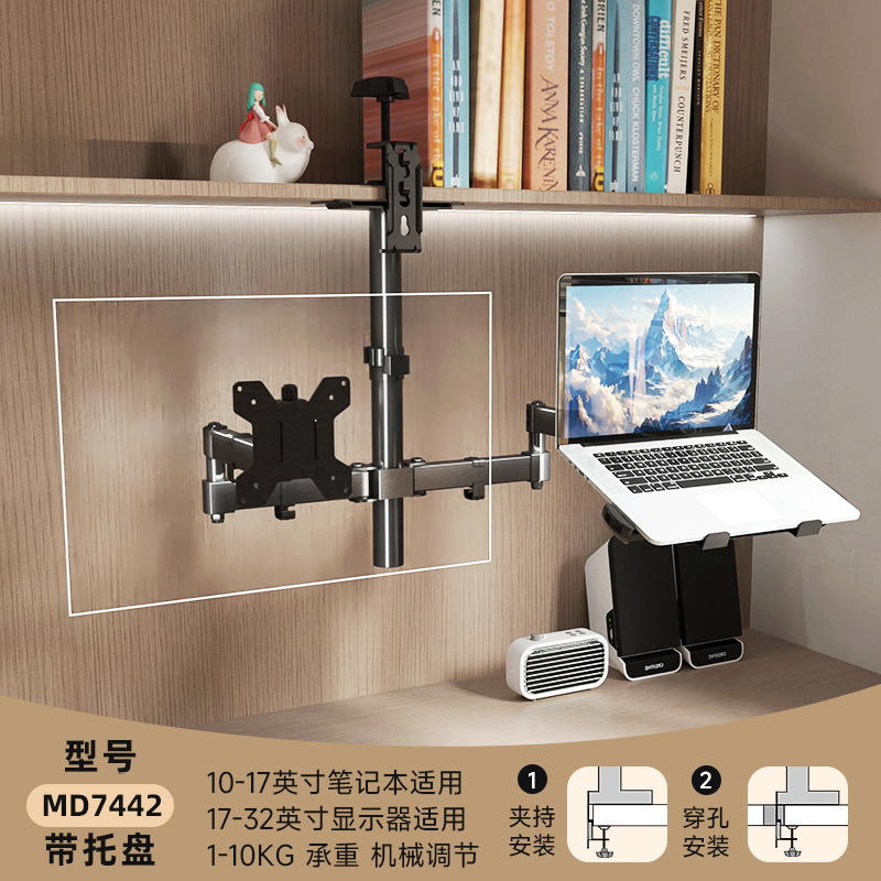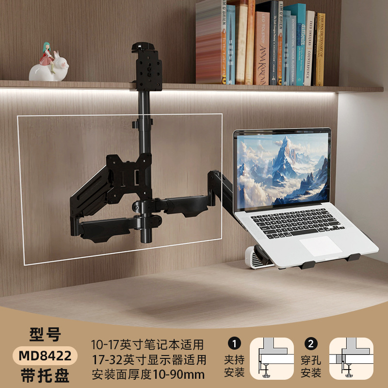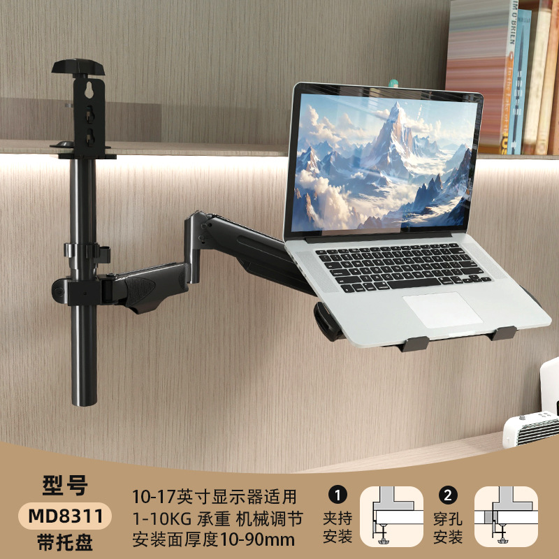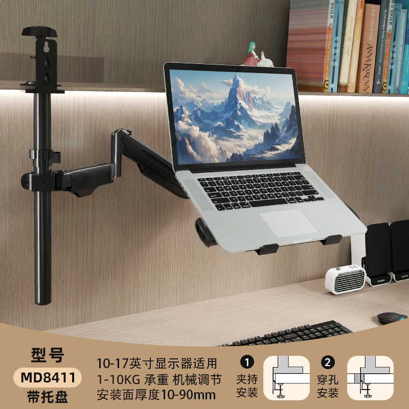 • 단일 스크린 로봇 팔 + 노트북 트레이, 플립/설치 가능, 10-17inch 노트북, 내하중 10KG