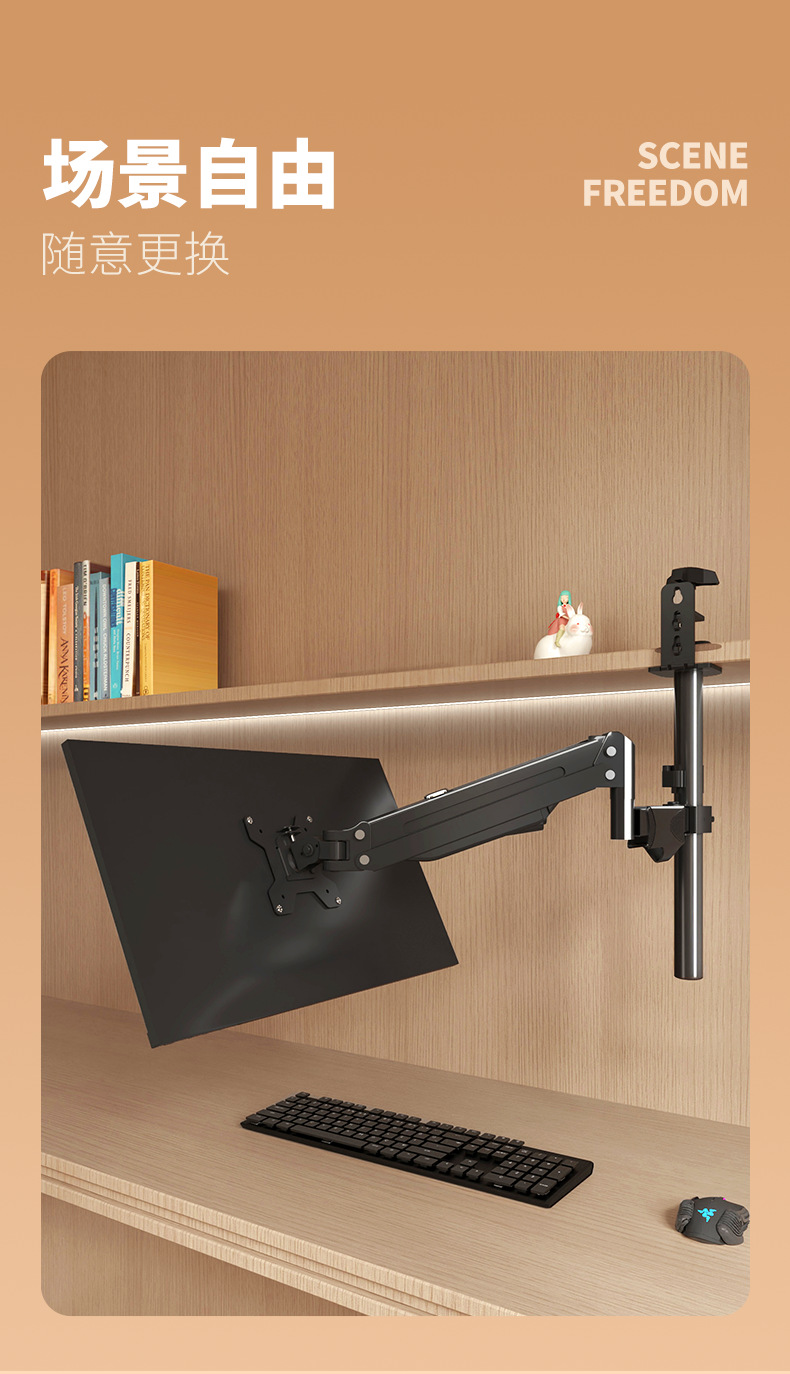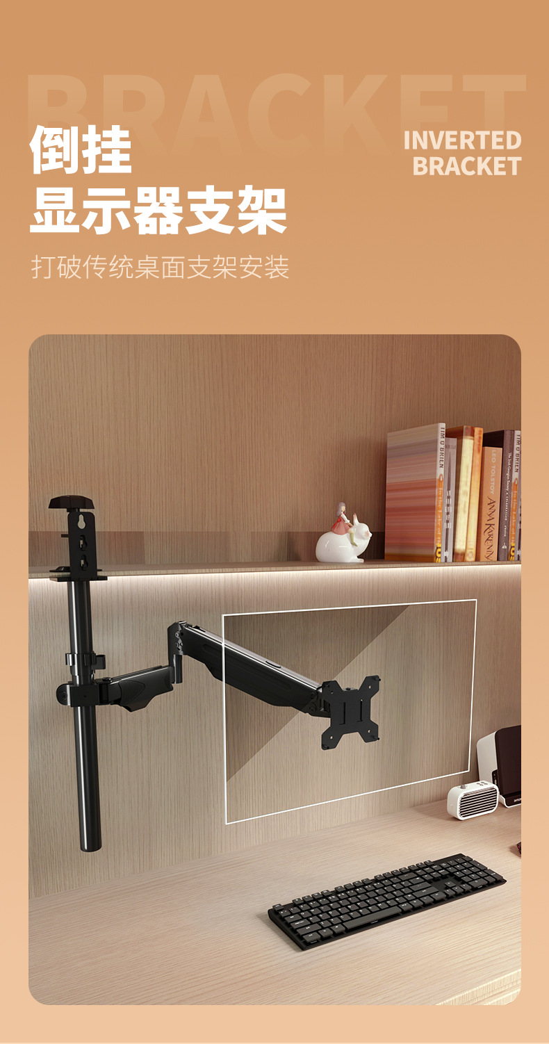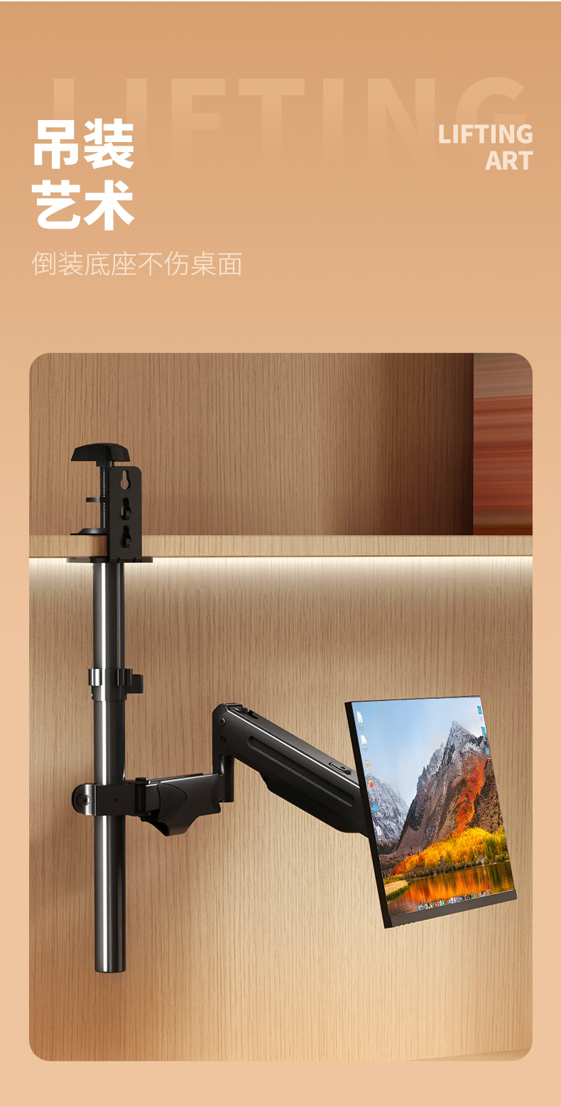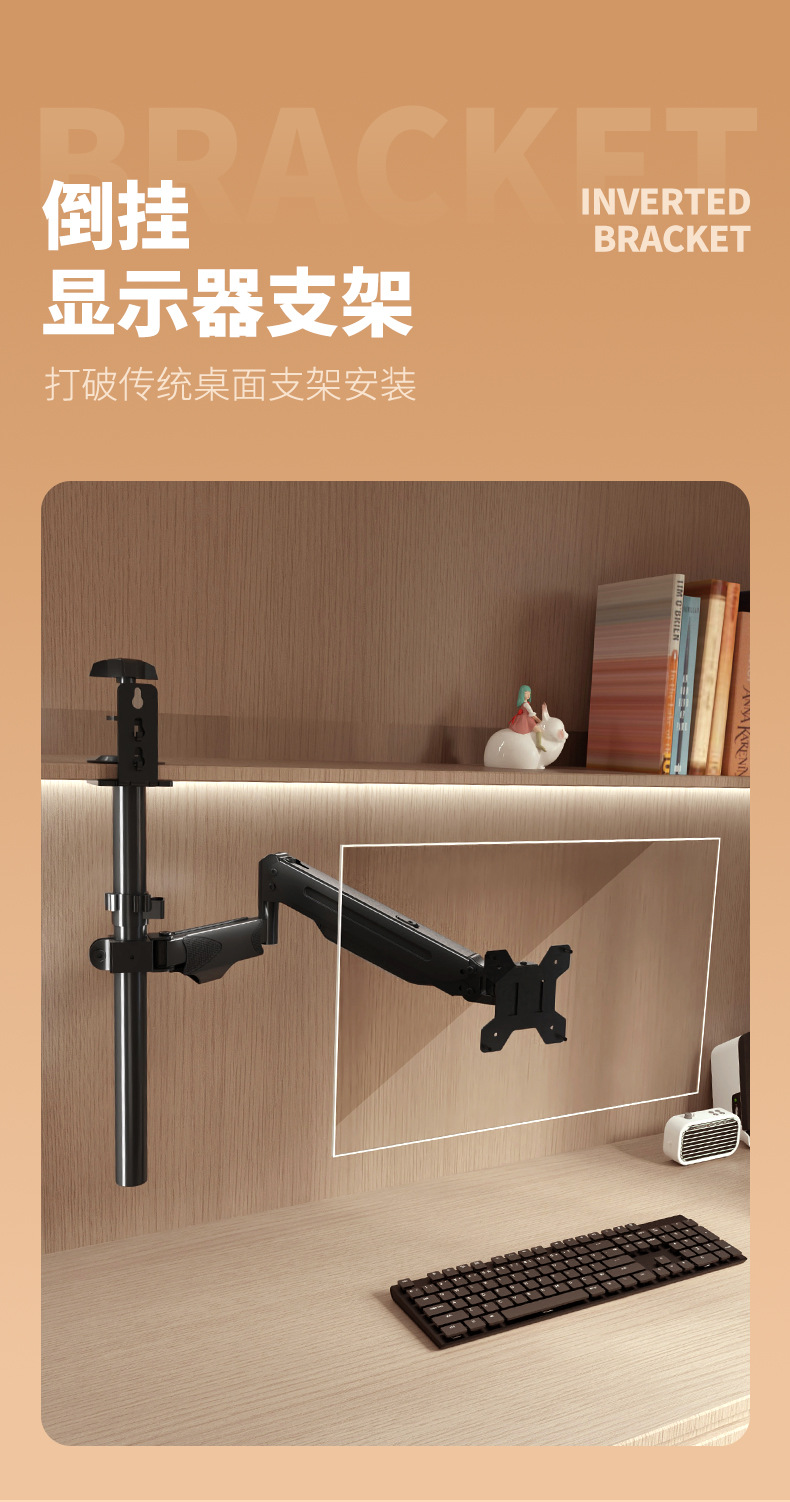 반전 모니터 스탠드 책장 클립온 반전 리프팅 및 회전 로봇 팔 천장 공기압 서스펜션 브래킷