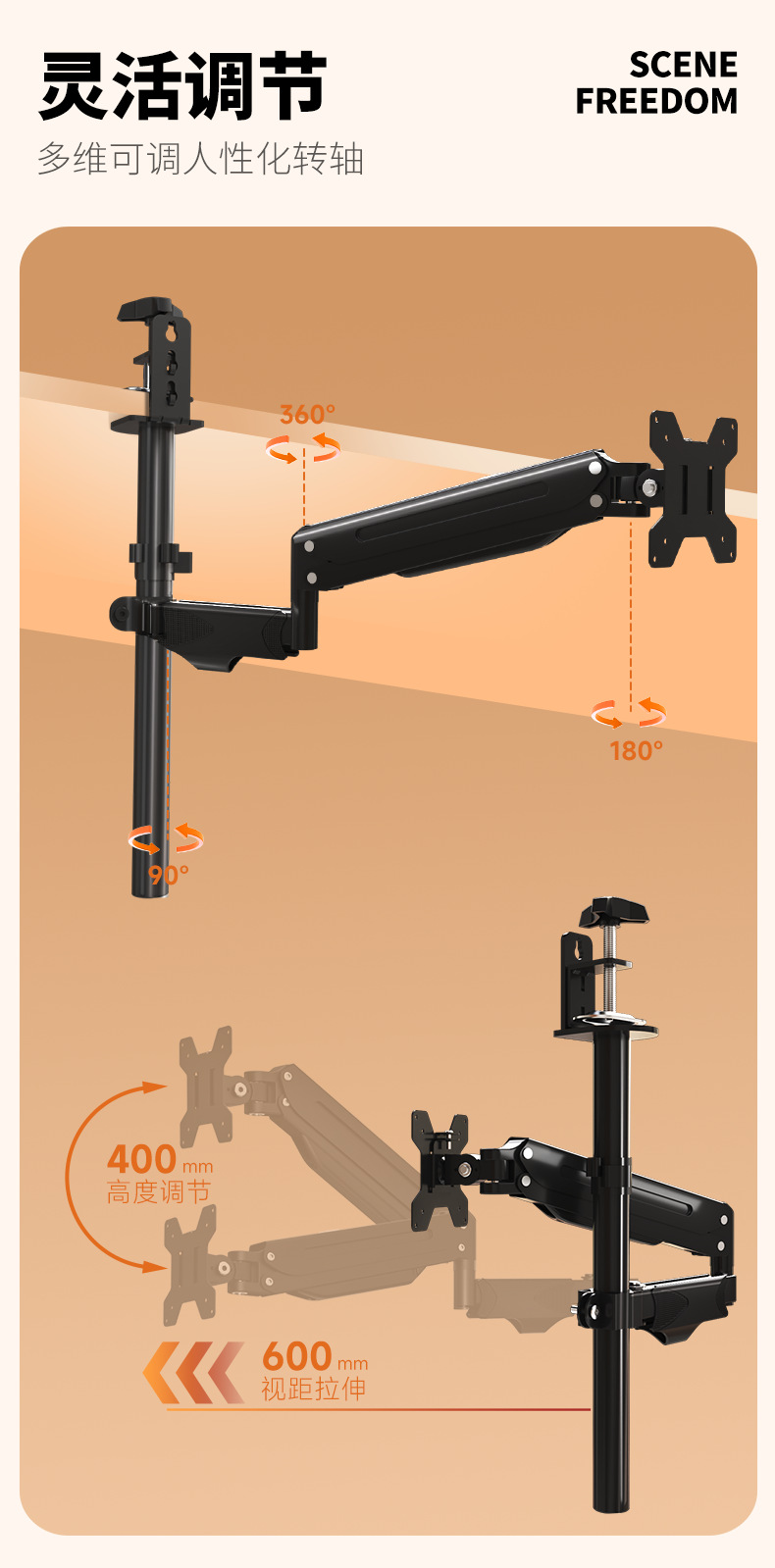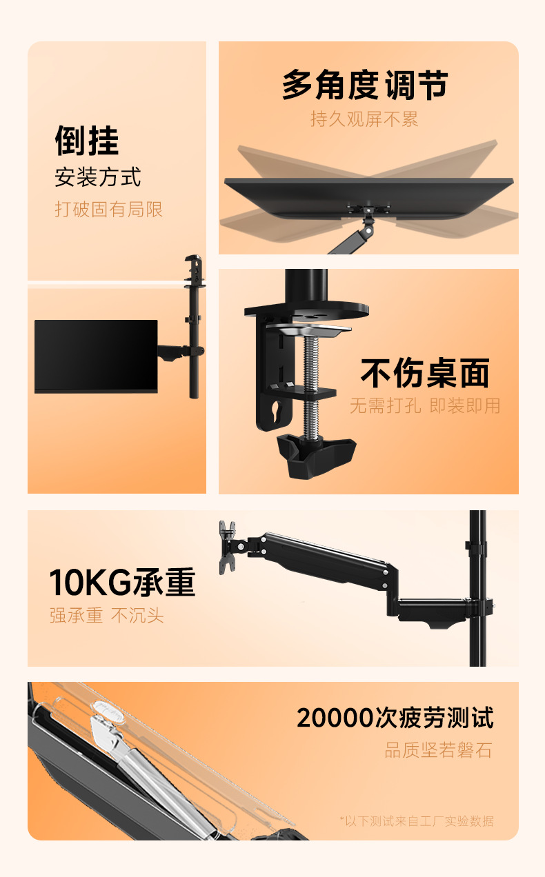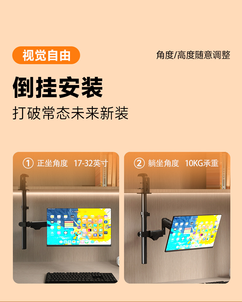 • 듀얼 스크린 로봇 팔은 뒤집거나 설치할 수 있습니다. 17-27inch 내하중 10KG