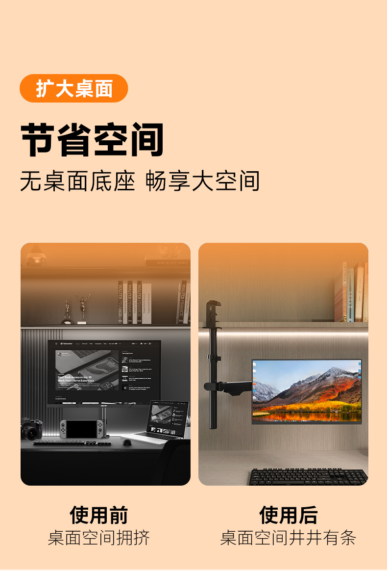 • 듀얼 스크린 공기압 암은 뒤집거나 설치할 수 있습니다. 17-32inch 내하중 10KG