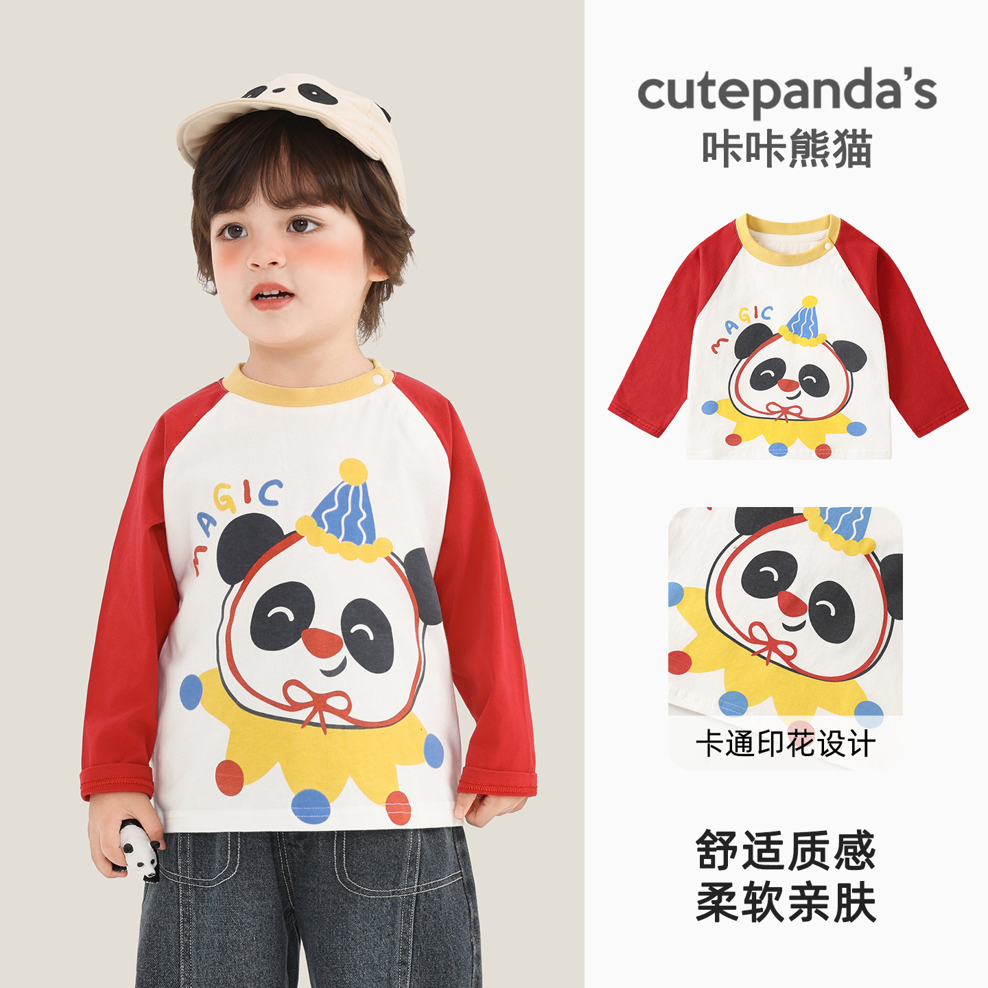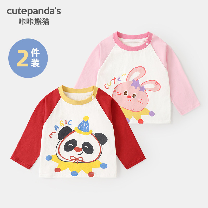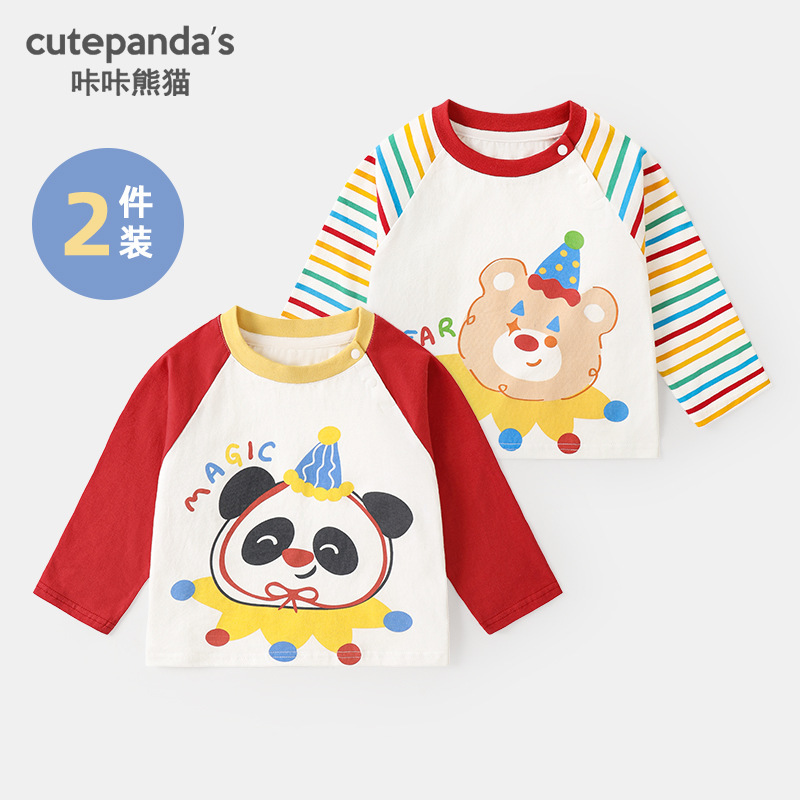 카카 팬더 남아용 긴팔 티셔츠 여아용 봄옷 어린이 봄 캐주얼 상의 유아복 아기옷