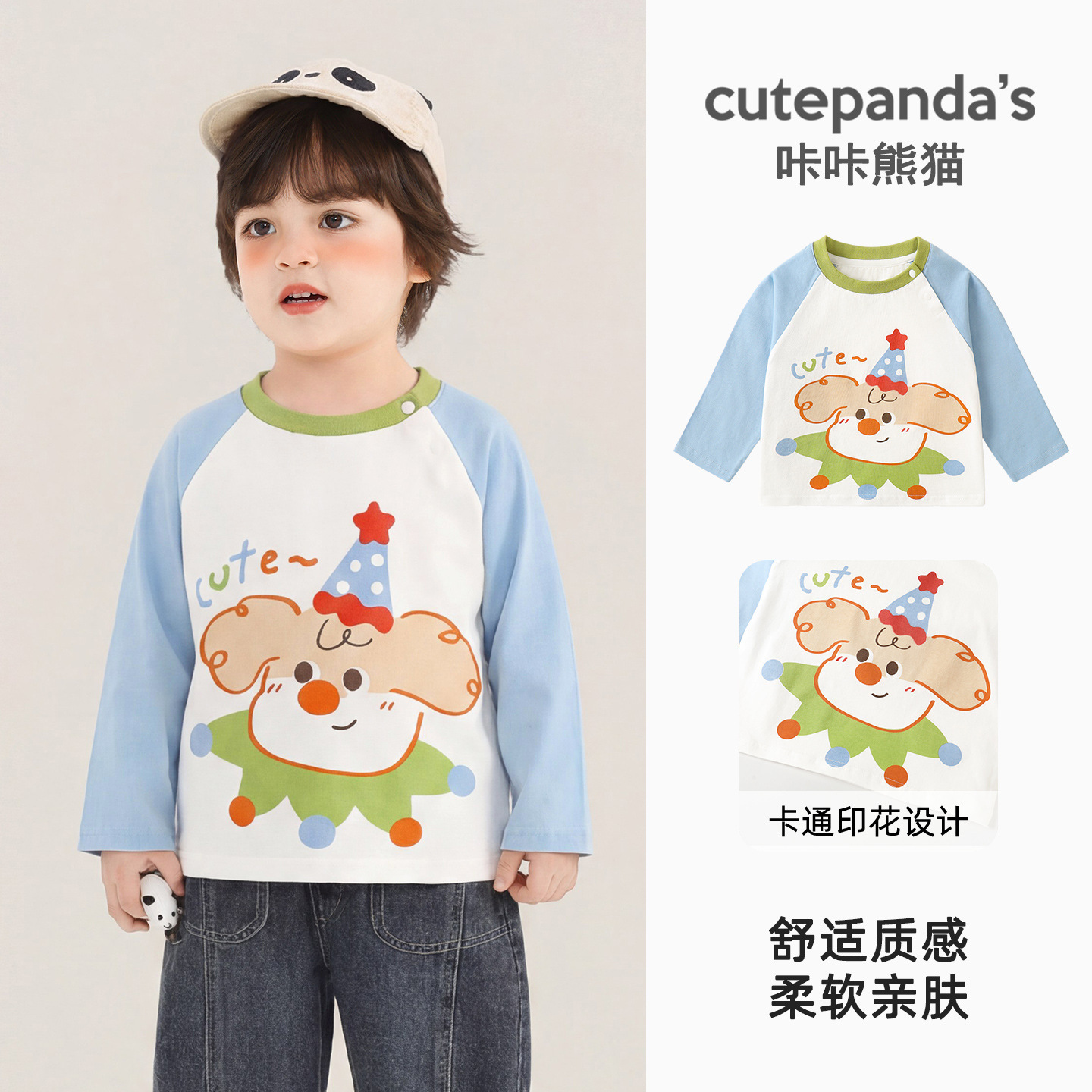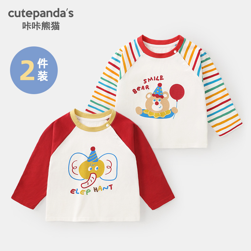 카카 팬더 남아용 긴팔 티셔츠 여아용 봄옷 어린이 봄 캐주얼 상의 유아복 아기옷스토어 가기