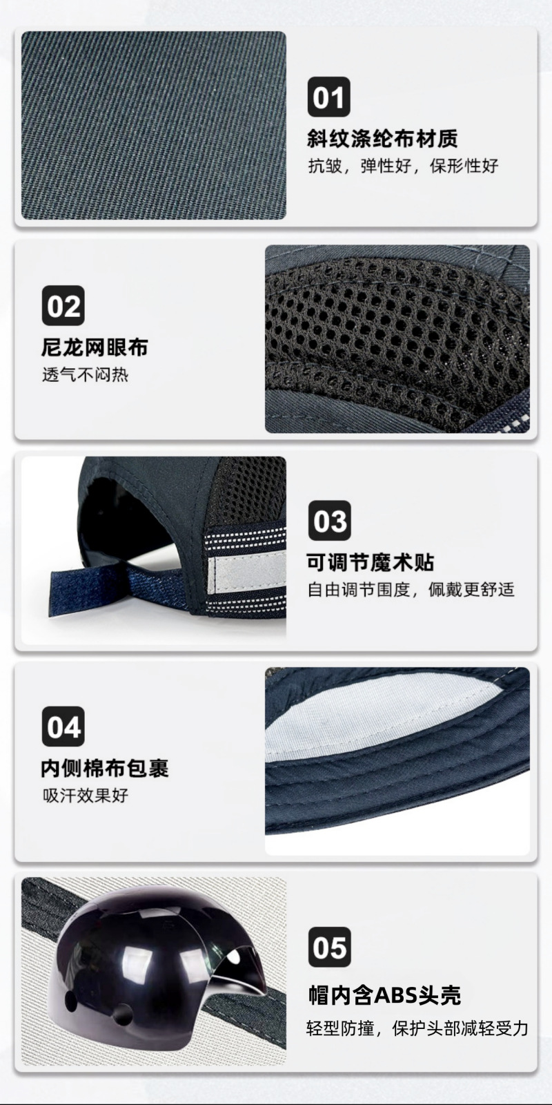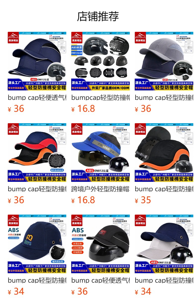 bump cap轻型防撞帽ABS内胆头壳户外头部防摔鸭舌帽透气棉安全帽