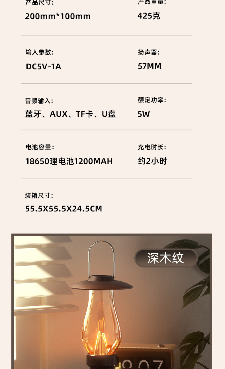• 등유 램프 스피커(어두운 나뭇결)