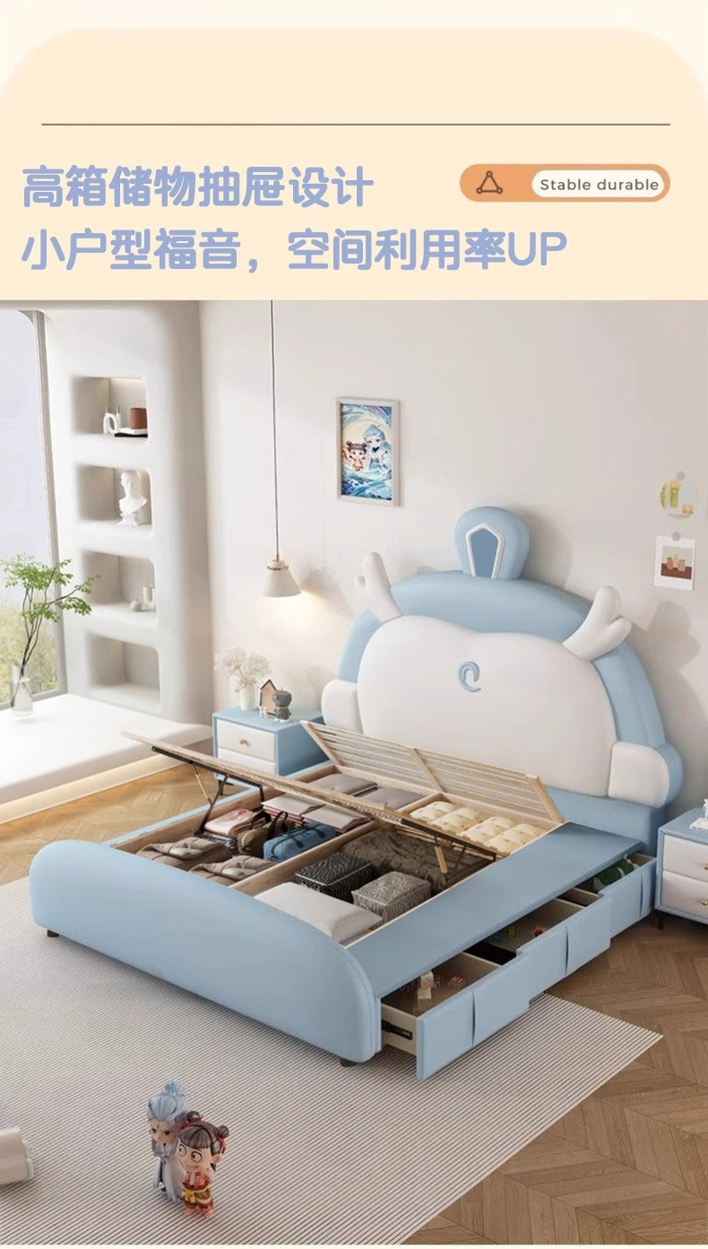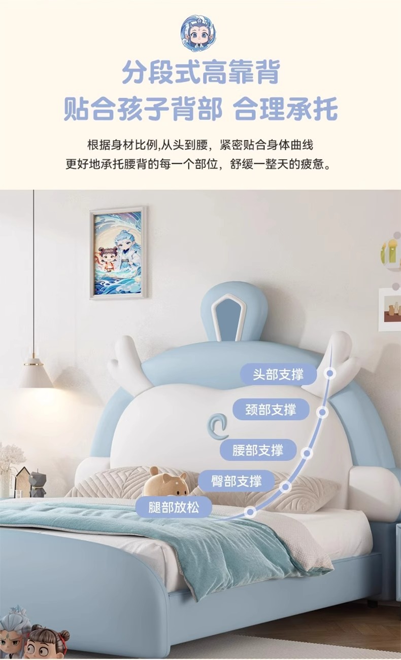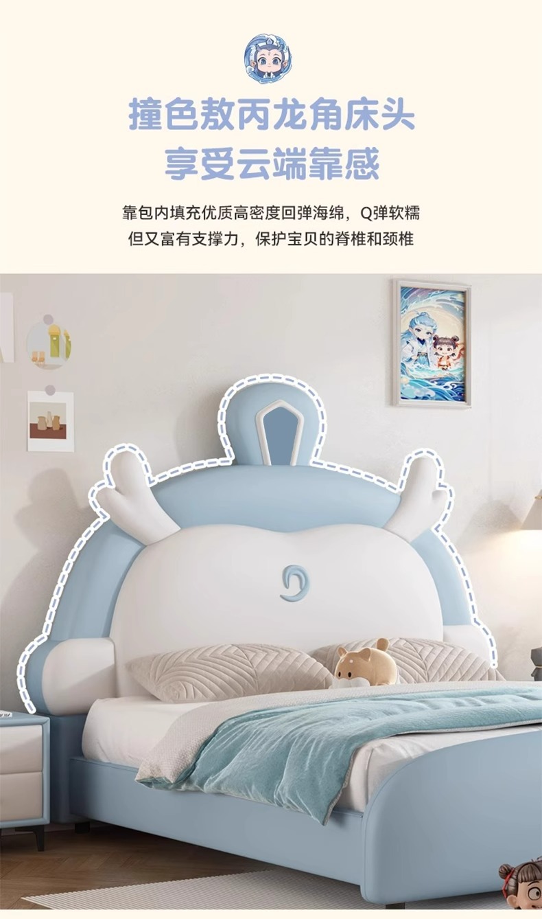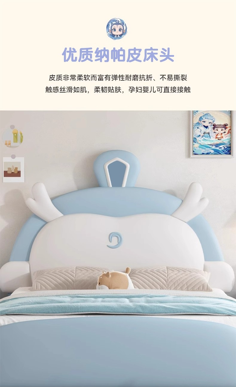 소년과 소녀를위한 정품 가죽 어린이 침대 Nezha Ao Bing 부드러운 가죽 침대 현대 간단한 1.5m 싱글 침대 수납 침대스토어 가기