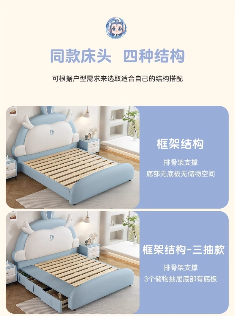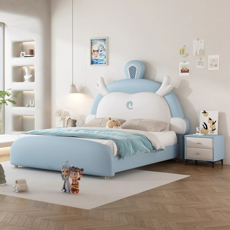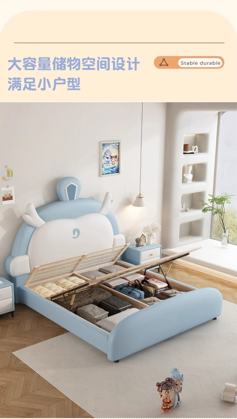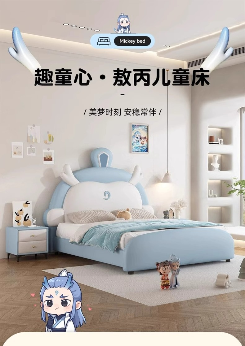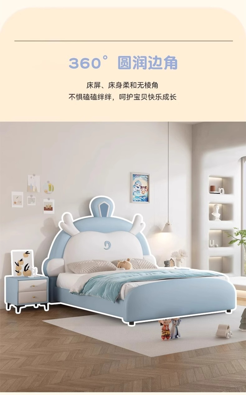 소년과 소녀를위한 정품 가죽 어린이 침대 Nezha Ao Bing 부드러운 가죽 침대 현대 간단한 1.5m 싱글 침대 수납 침대스토어 가기