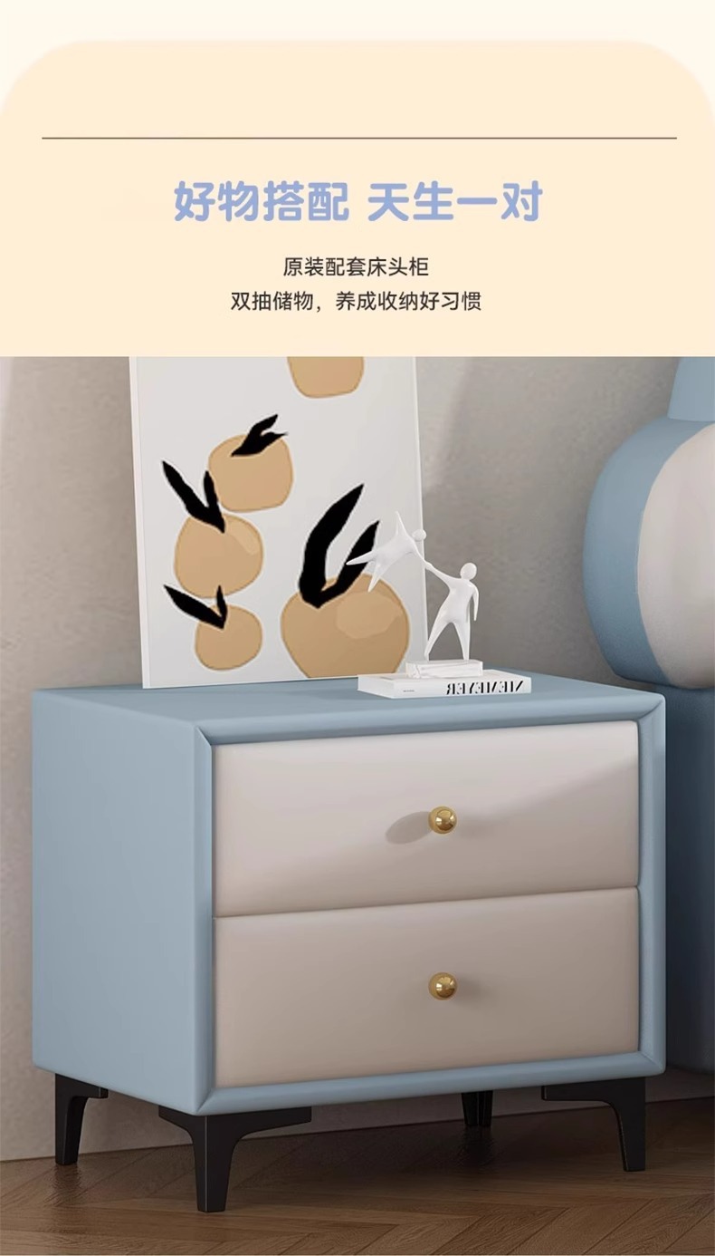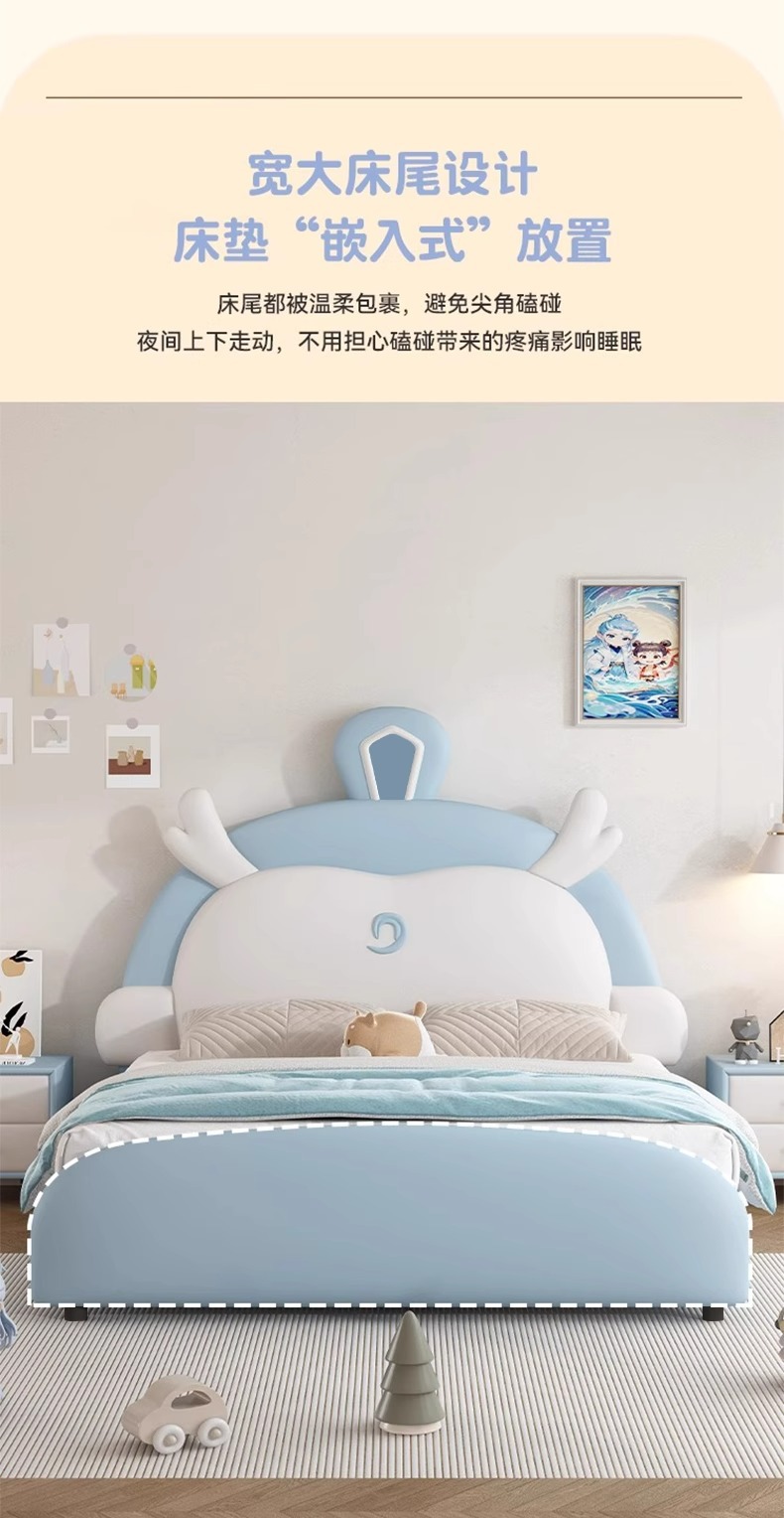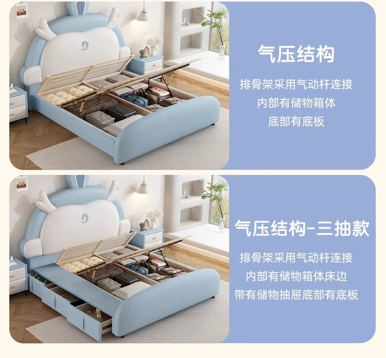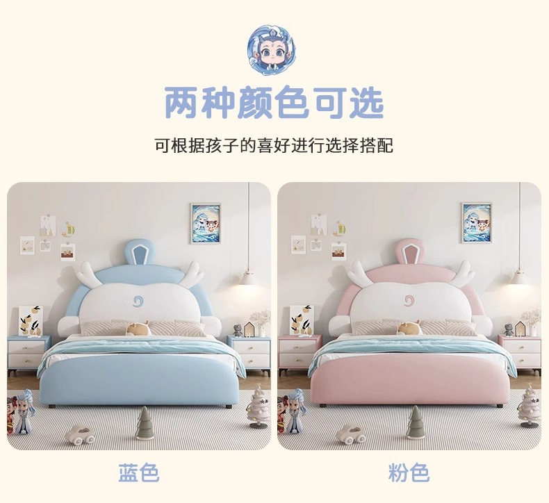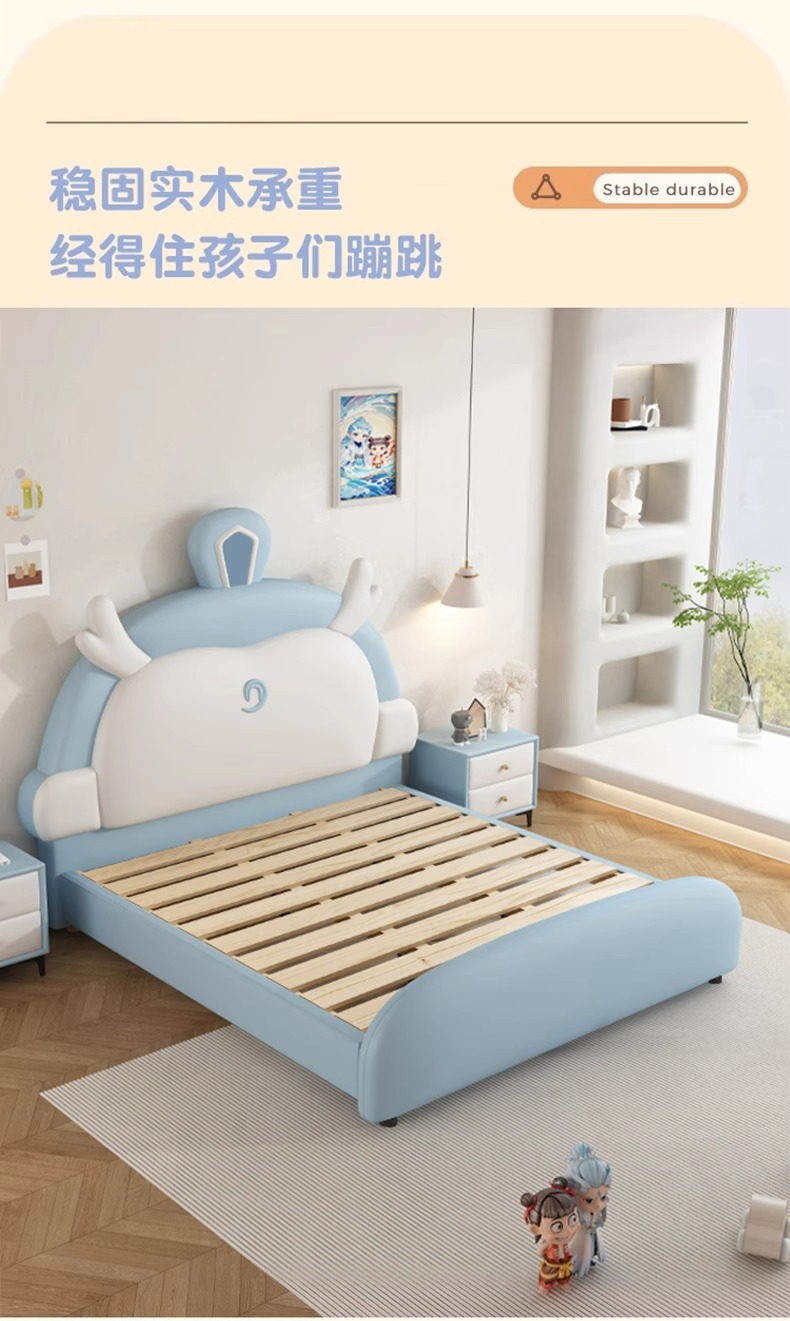 소년과 소녀를위한 정품 가죽 어린이 침대 Nezha Ao Bing 부드러운 가죽 침대 현대 간단한 1.5m 싱글 침대 수납 침대스토어 가기
