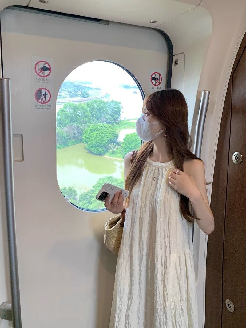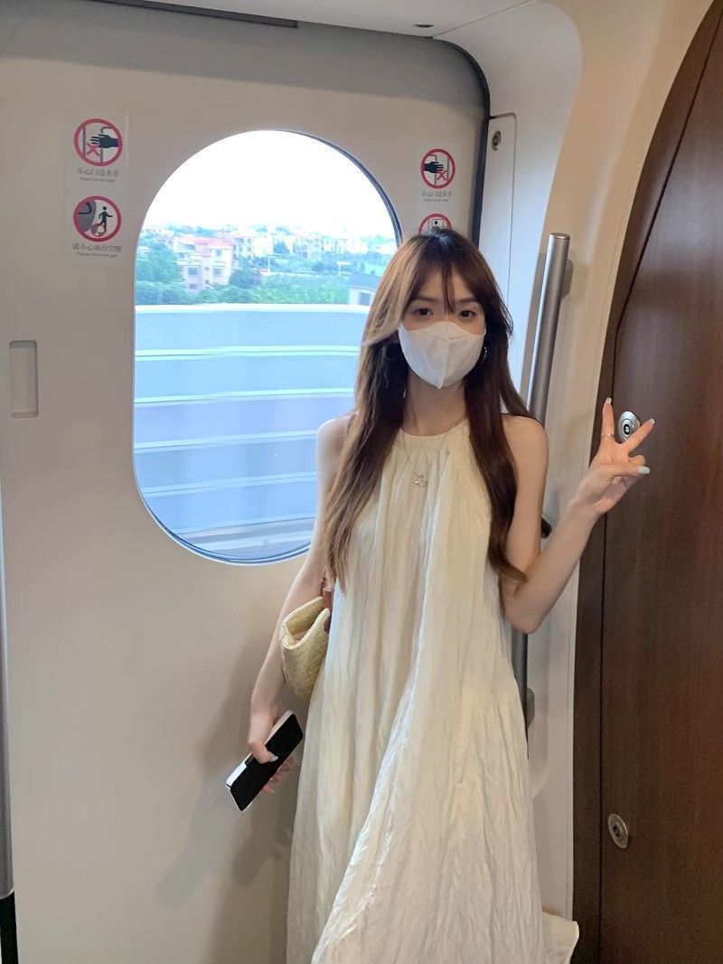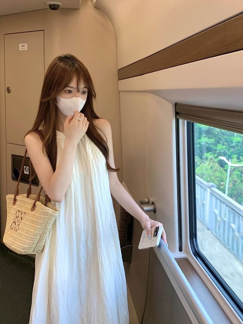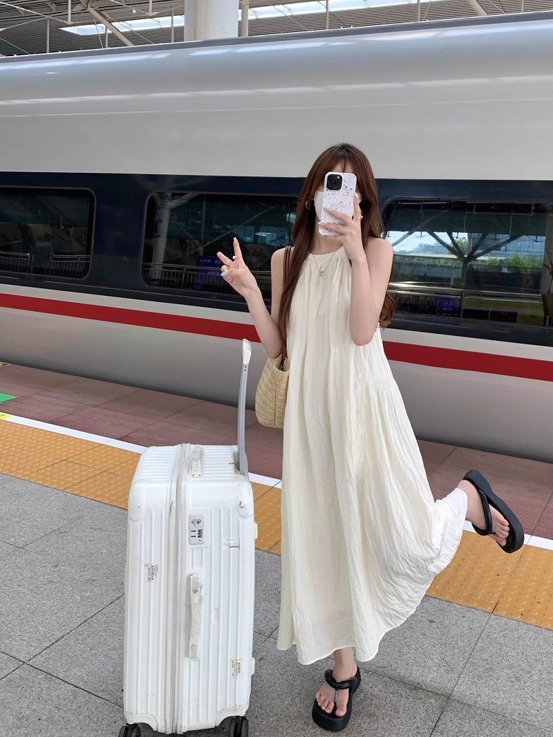 프렌치 홀터넥 드레스, 요정 여름 루즈하고 슬림한 새로운 스타일의 민소매 달콤한 기질 해변 휴가 롱 스커트스토어 가기