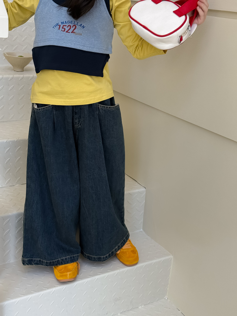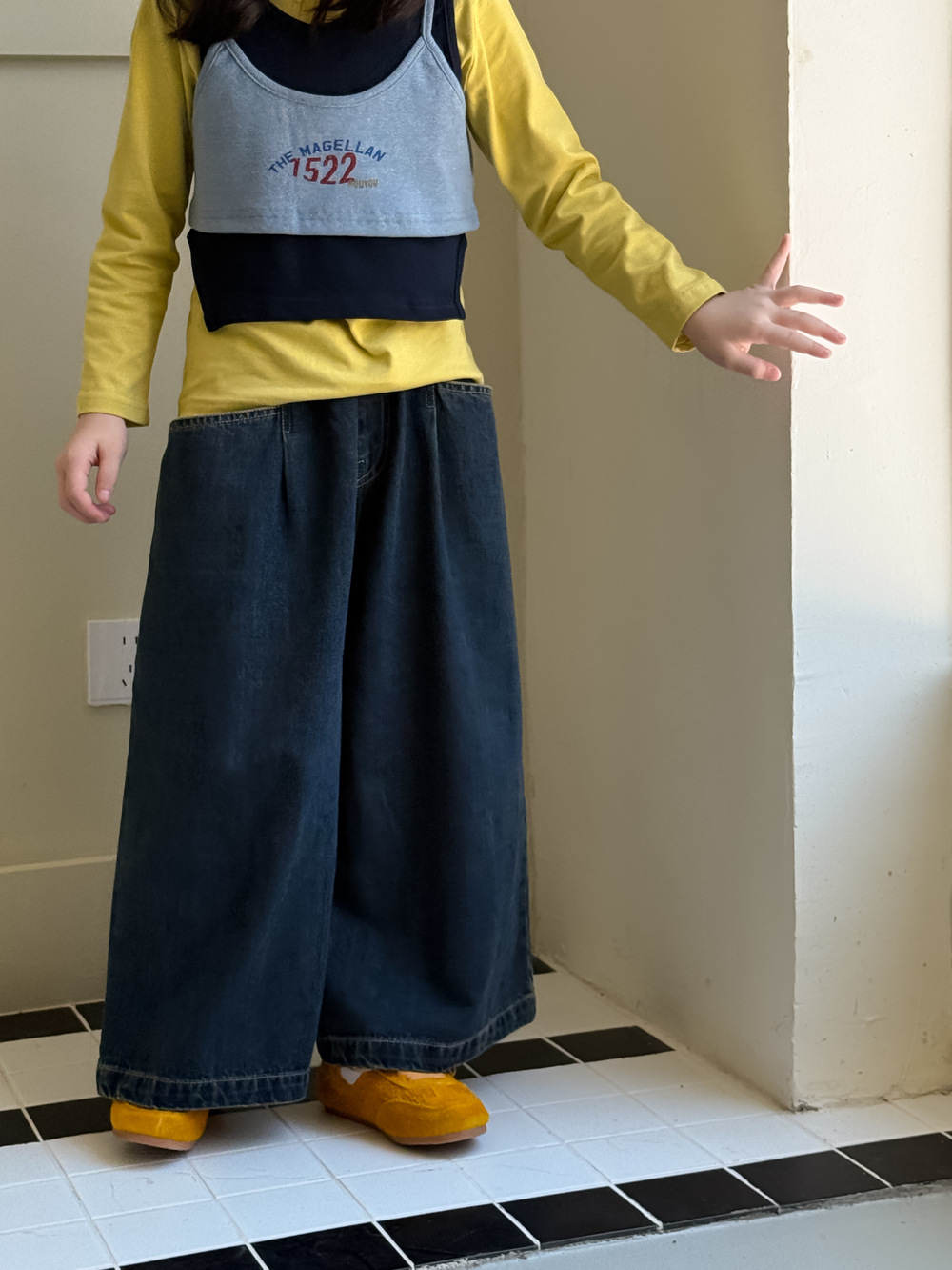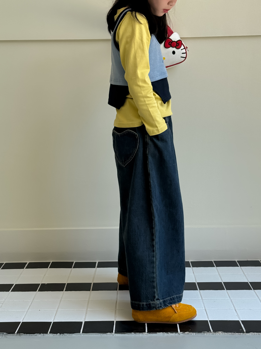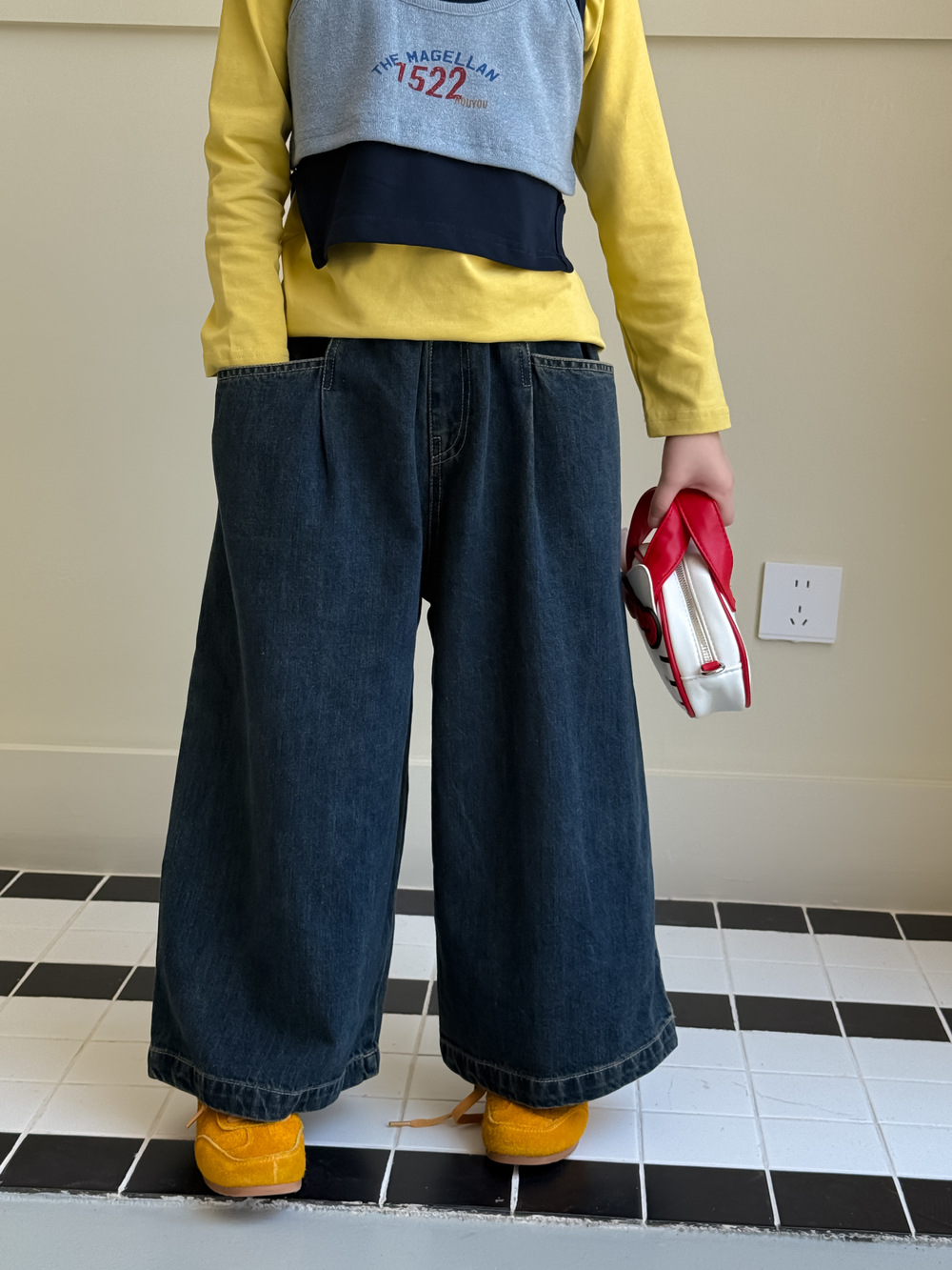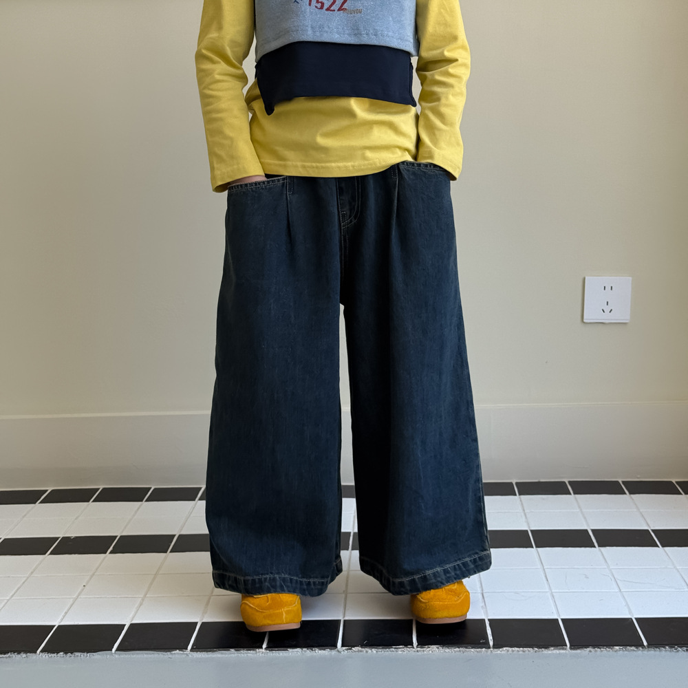 아동 바지 2026 가을 여아 한국 스타일 단색 캐주얼 데님 스트레이트 팬츠 아동 캐주얼 만능 와이드 레그 롱 팬츠