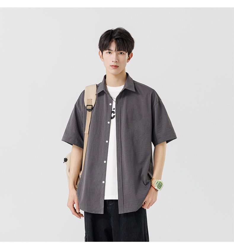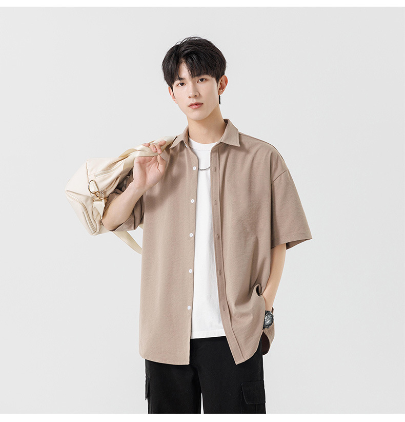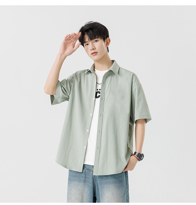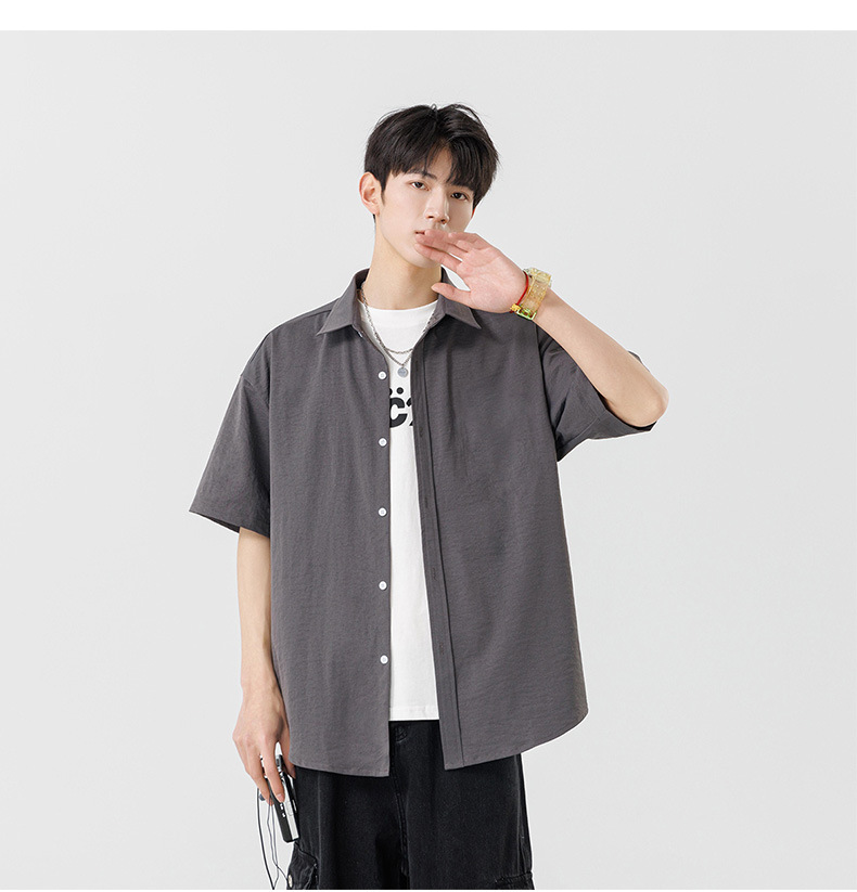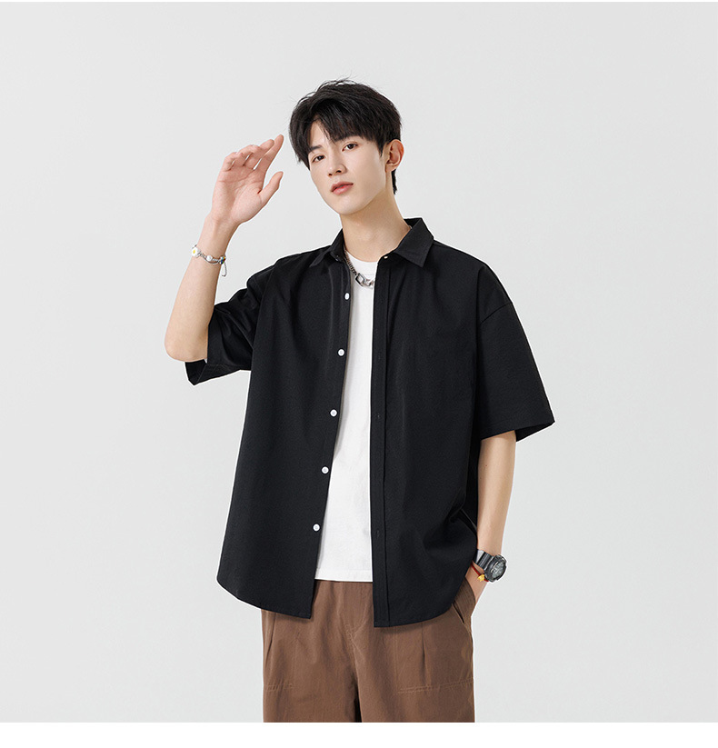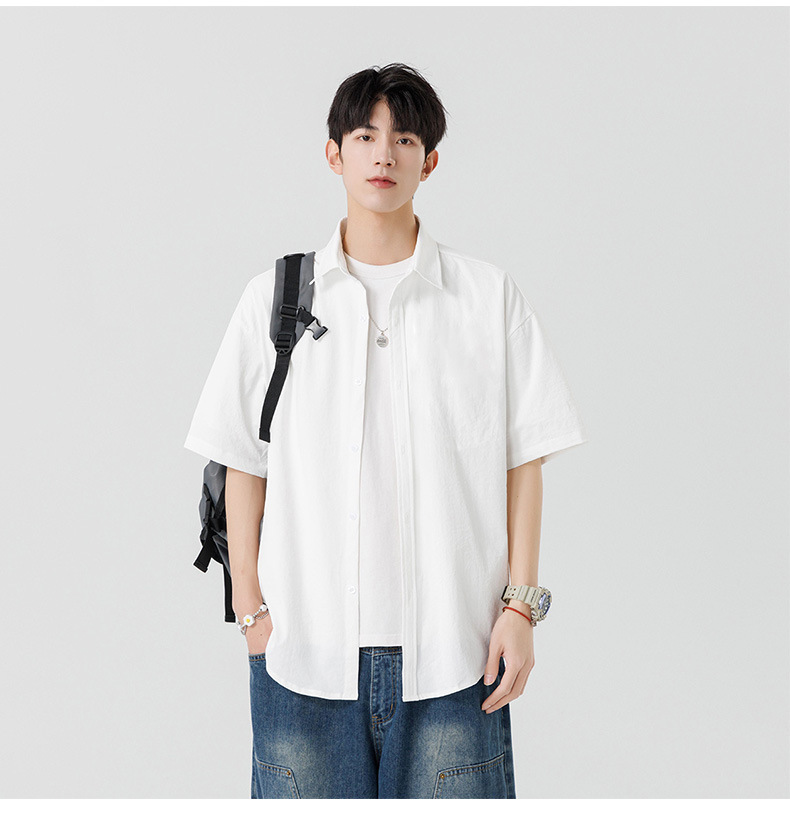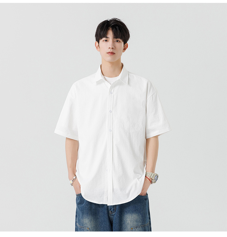 여름용 남성용 셔츠, 반팔, 얇은, 단색, 일본 스타일 트렌디 브랜드, 멋스러운 화이트 셔츠, 고급스러운 디자인스토어 가기