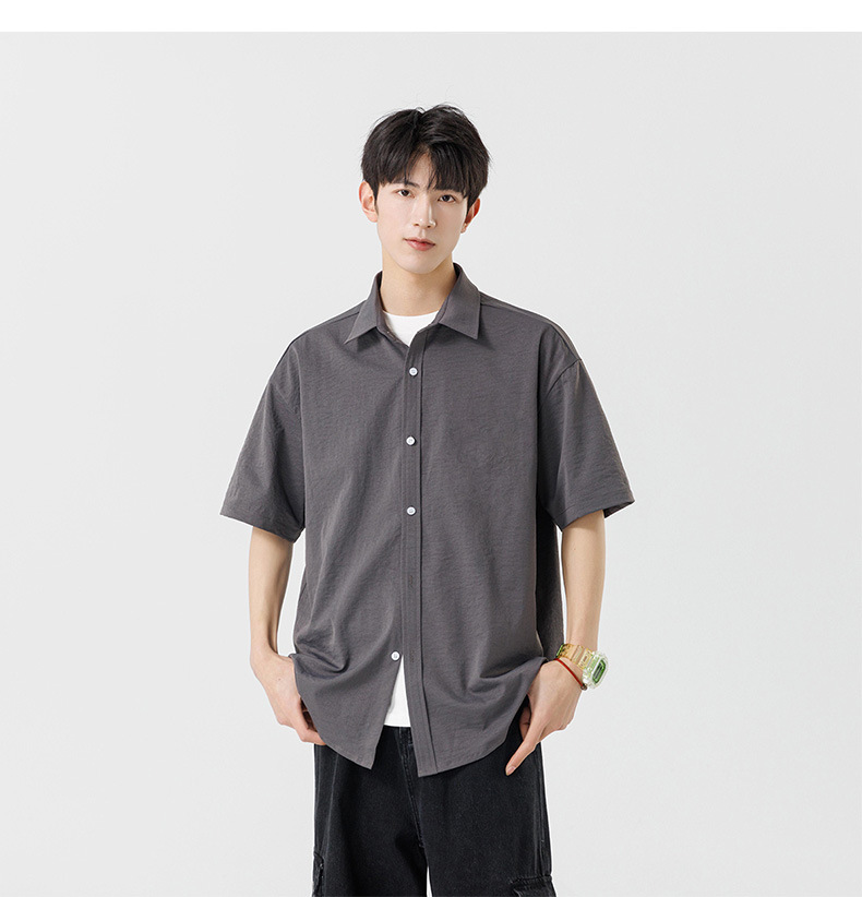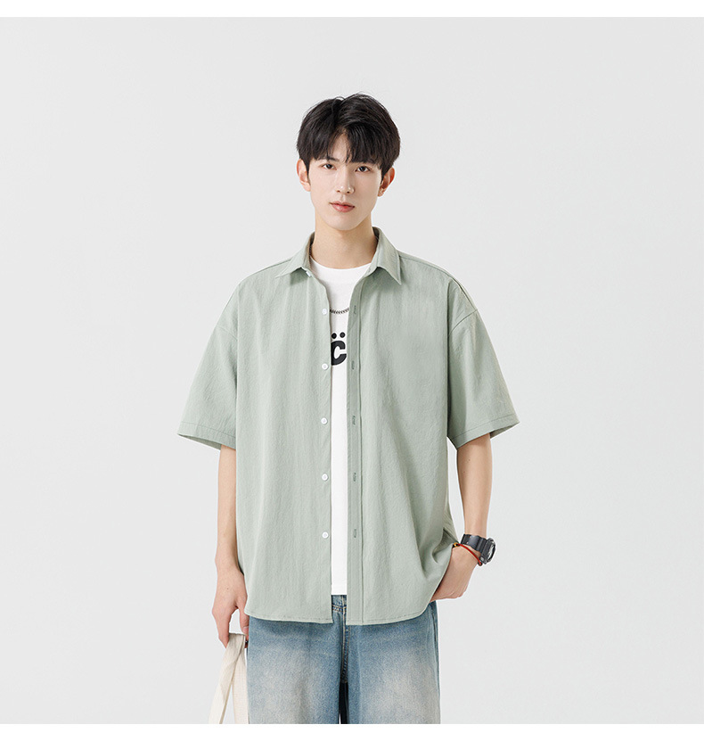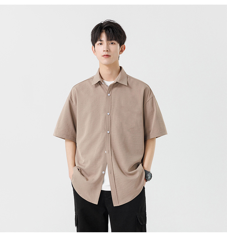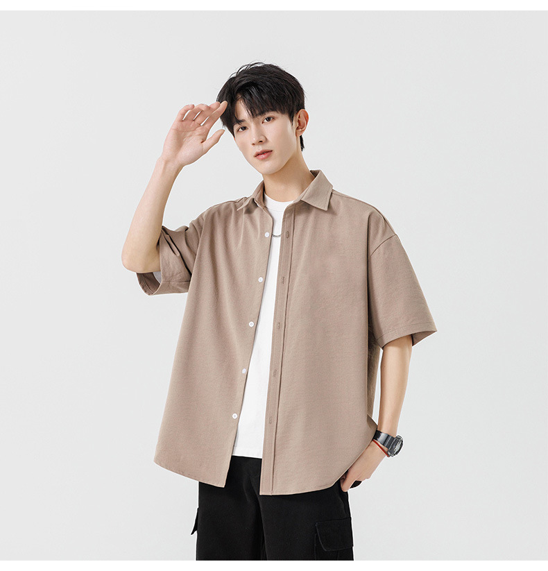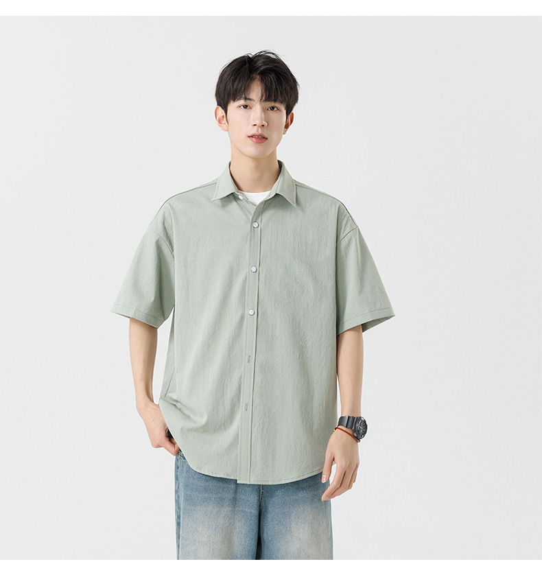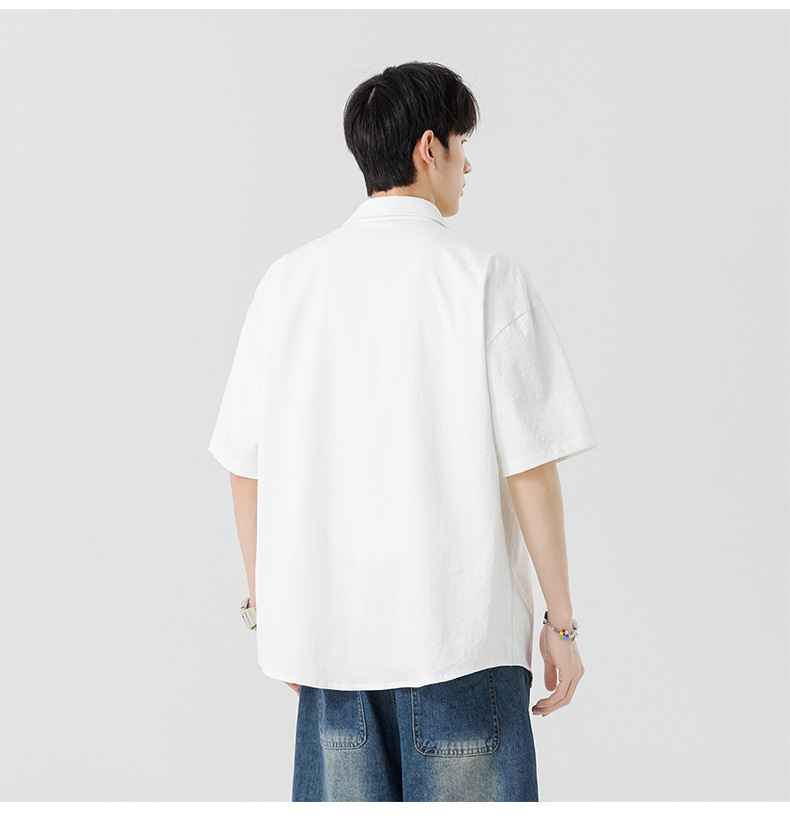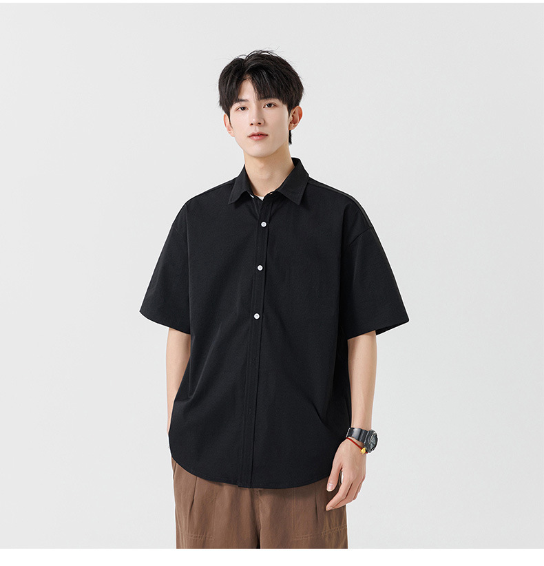 여름용 남성용 셔츠, 반팔, 얇은, 단색, 일본 스타일 트렌디 브랜드, 멋스러운 화이트 셔츠, 고급스러운 디자인스토어 가기