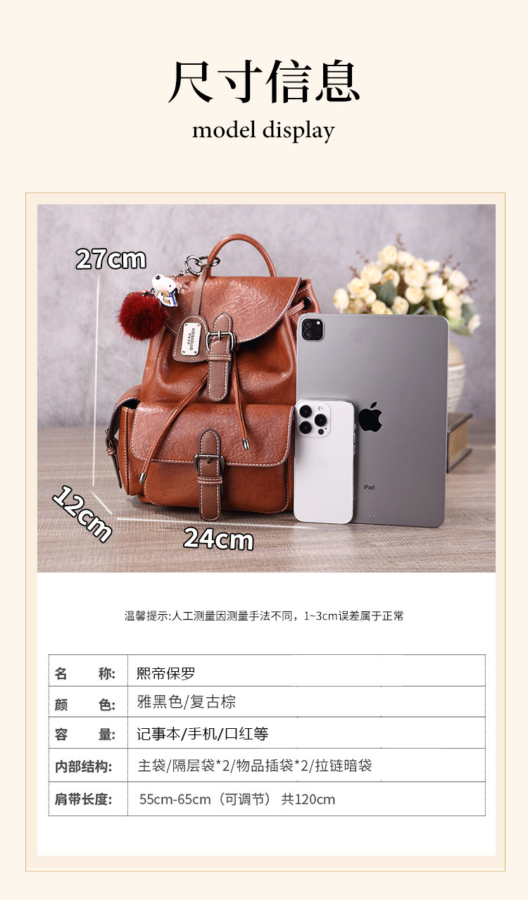 2025 새로운 유럽과 미국의 복고풍 여성 가방 입체 가방 도난 방지 대용량 배낭 일일 레저스토어 가기