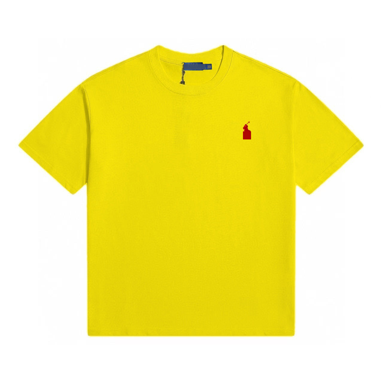 • 티셔츠 노란색 빨간색 라벨