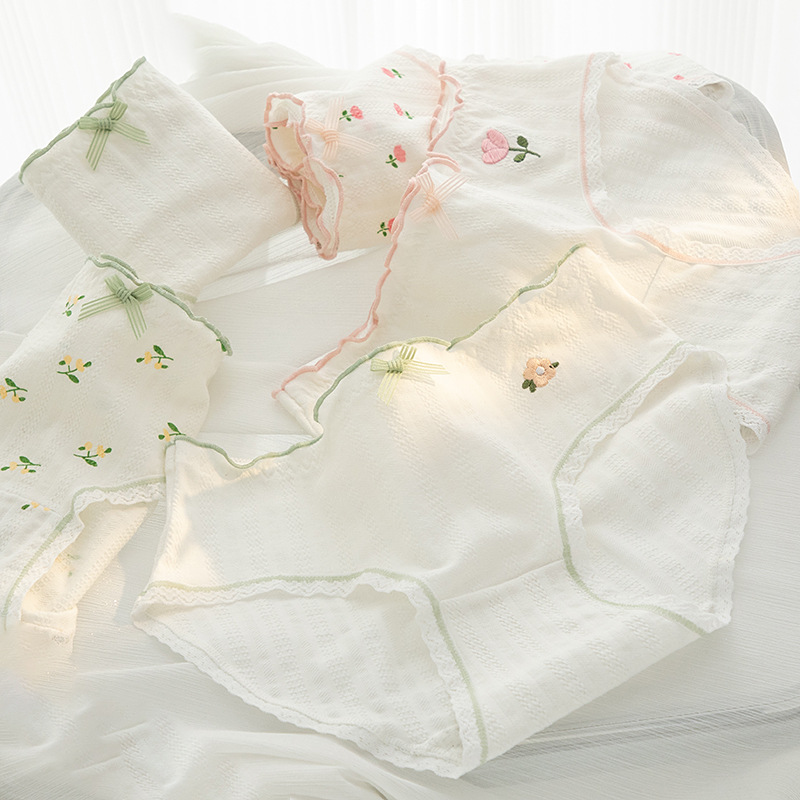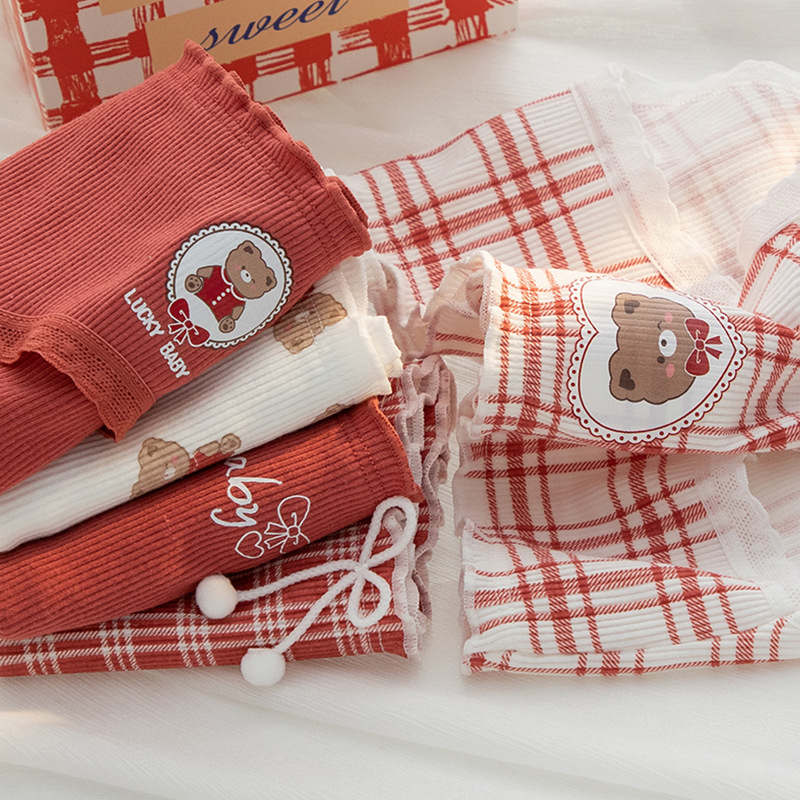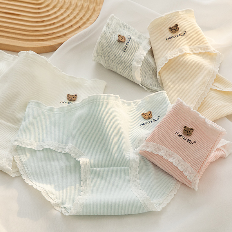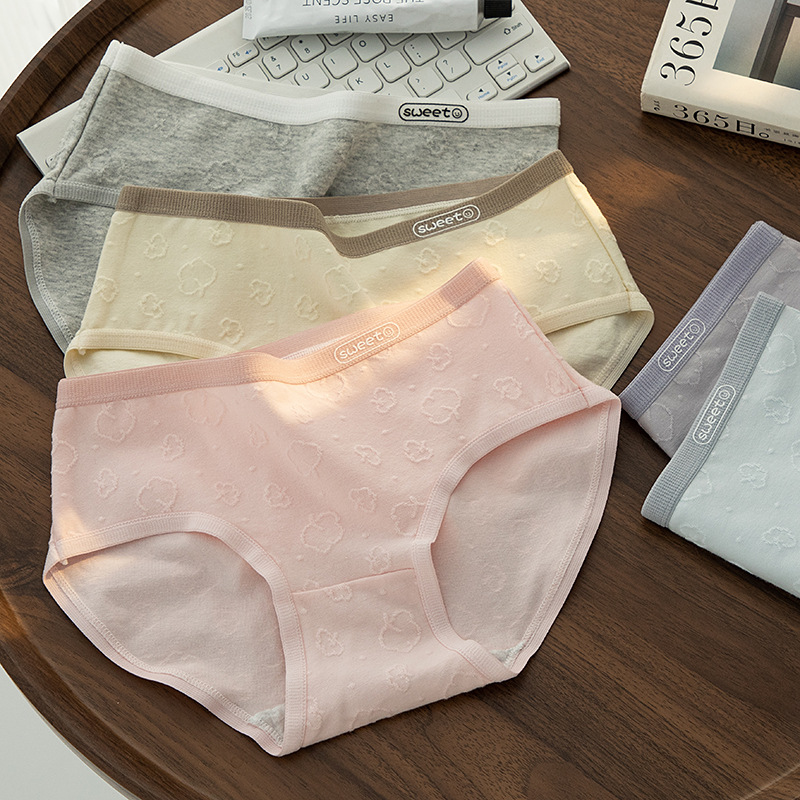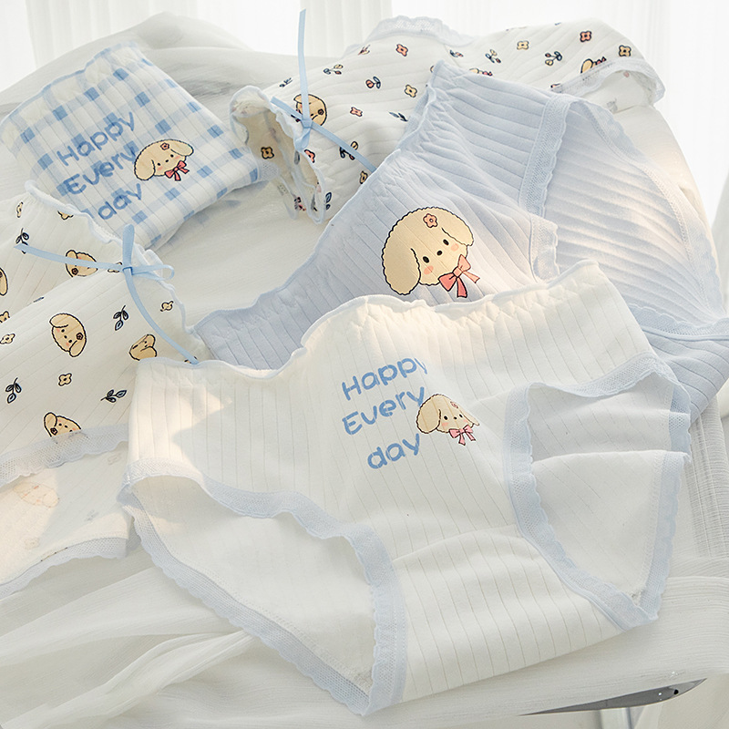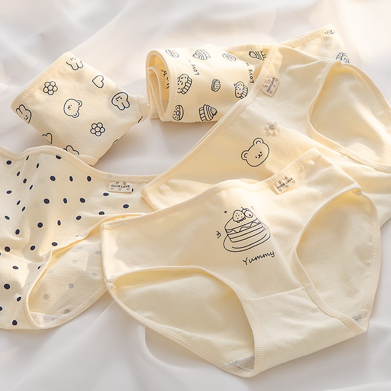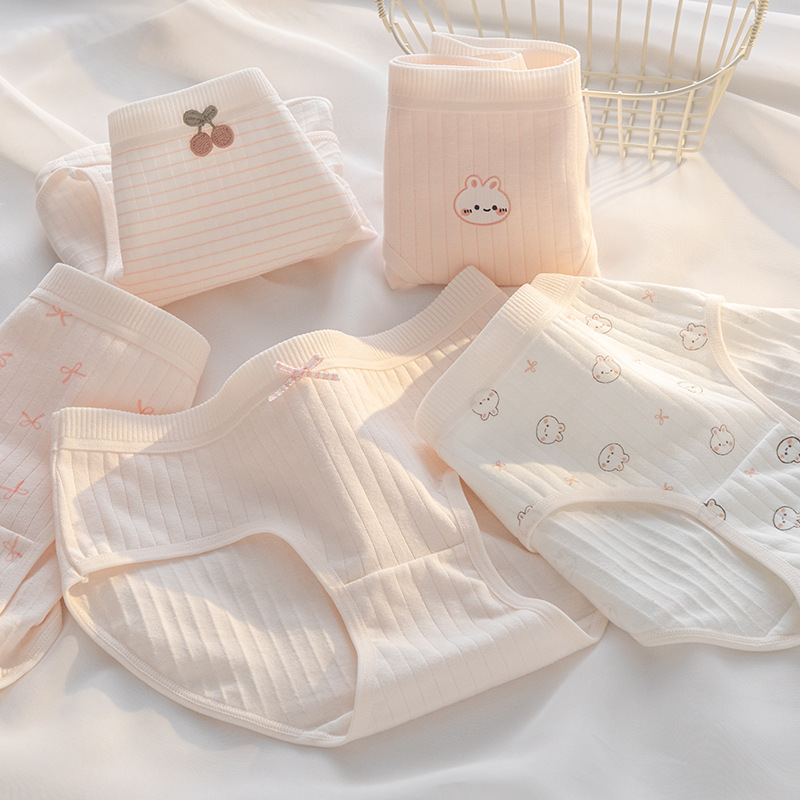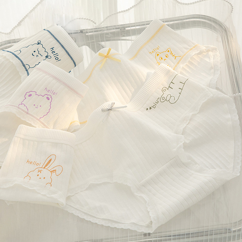 여성용 일본식 달콤하고 귀여운 속옷, 중간 허리 통기성 순면 가랑이 커버 엉덩이 얇은 학생 팬티