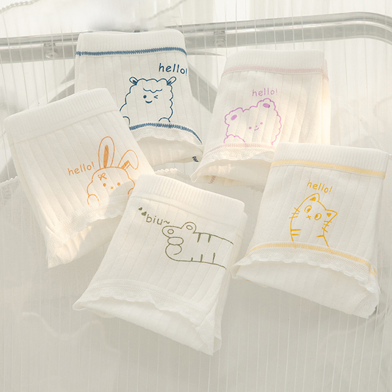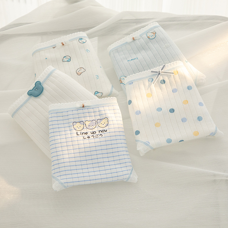 여성용 일본식 달콤하고 귀여운 속옷, 중간 허리 통기성 순면 가랑이 커버 엉덩이 얇은 학생 팬티스토어 가기
