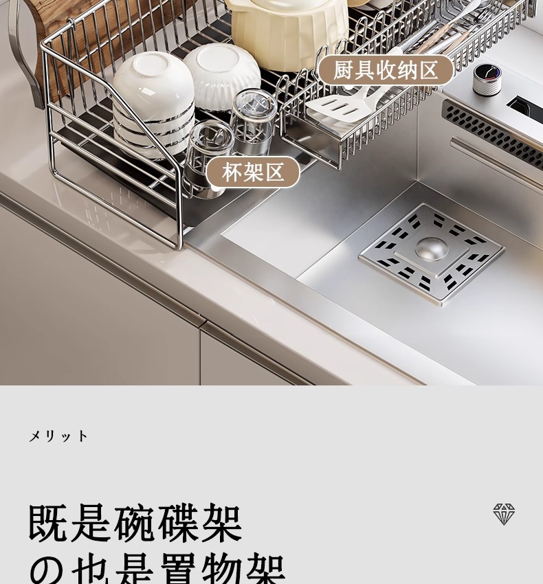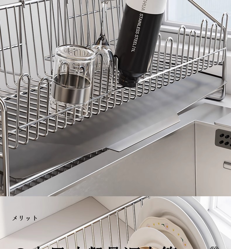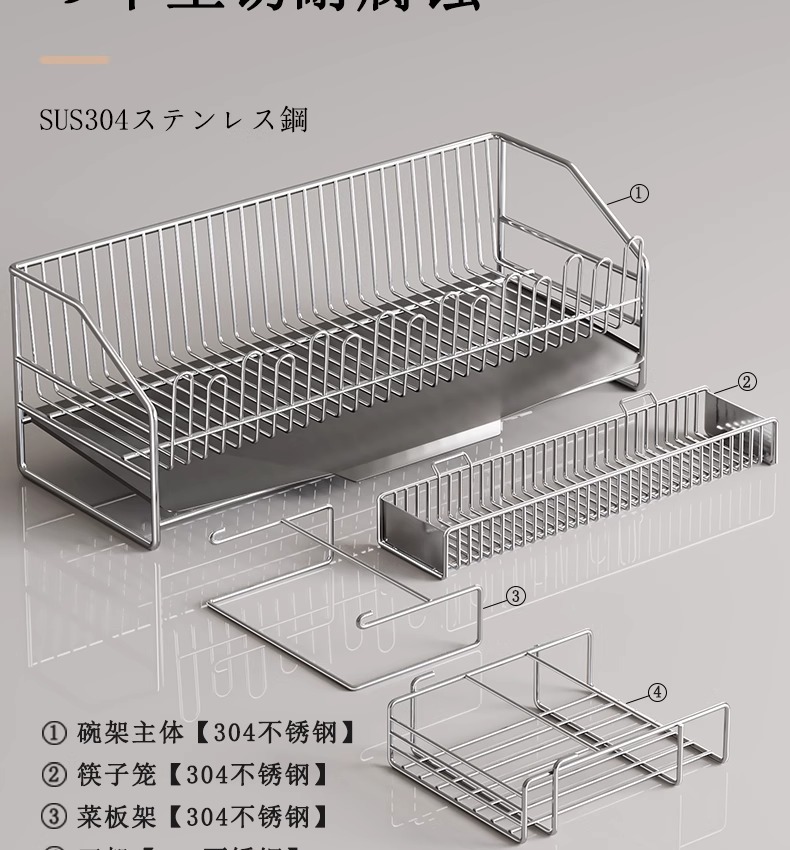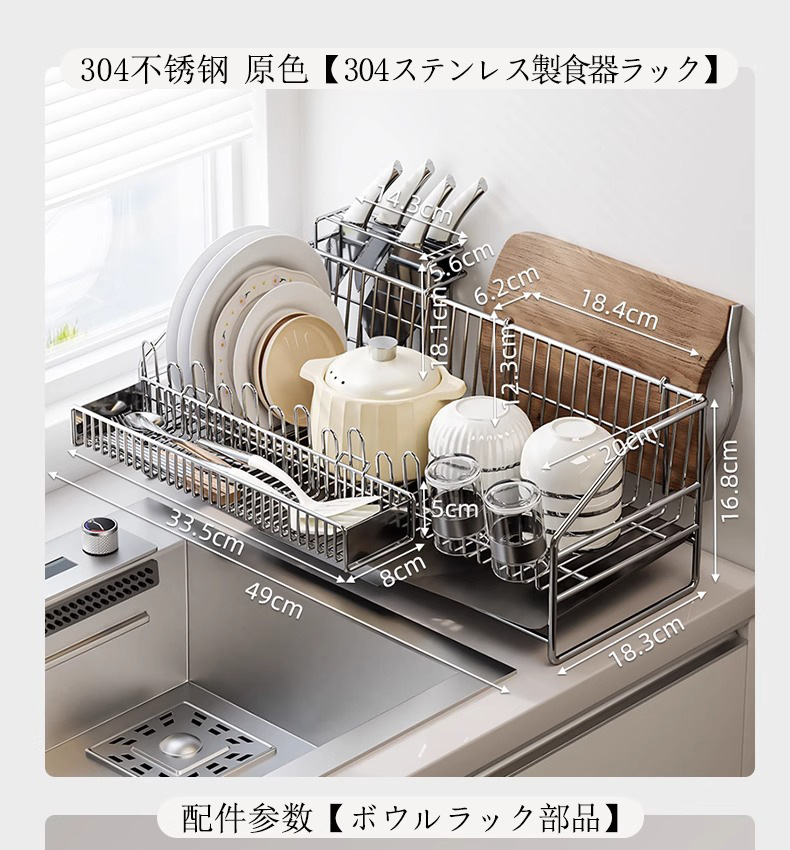 • 304 스테인리스 접시걸이 [메인랙+컵홀더+젓가락바구니]