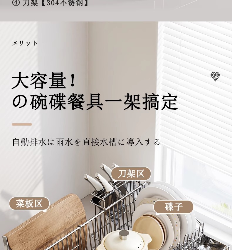 • 304 스테인리스 접시걸이 [메인랙+컵홀더+칼홀더+젓가락바구니]