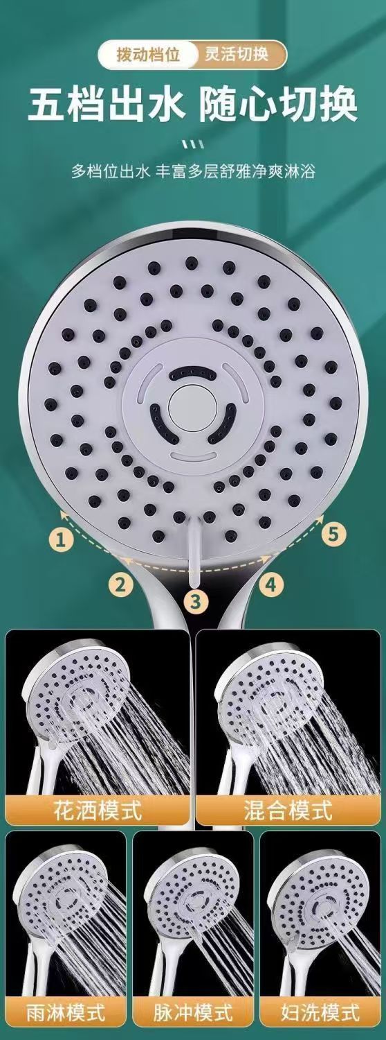 5단 가압 레인 샤워 헤드 세트 가정용 가압 목욕 온수기 호스 샤워 헤드